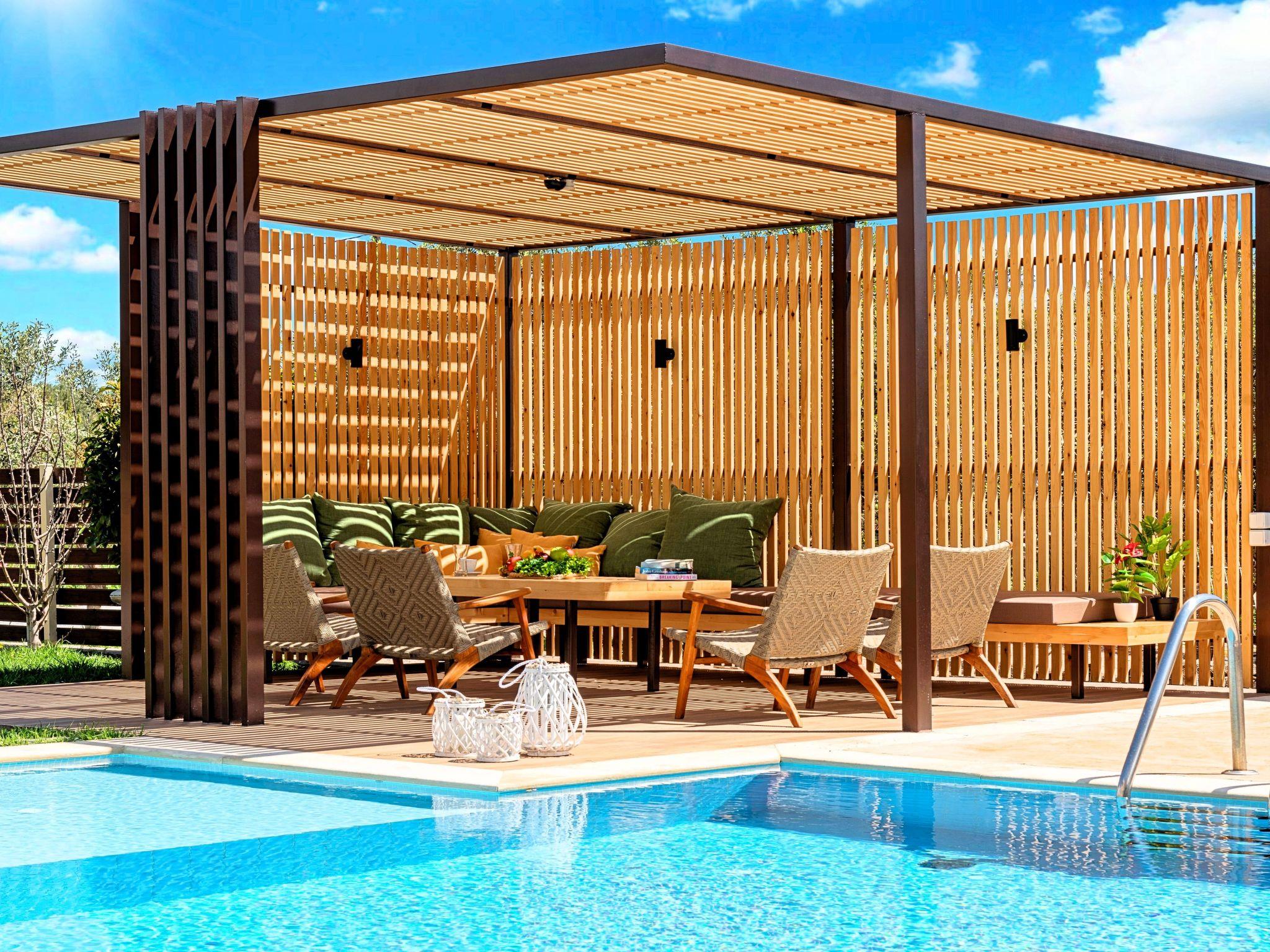 Der Außenpool ist beheizt und kann 6 bis 8 Grad mehr als die durchschnittliche 24-Stunden-Lufttemperatur erreichen, mit einem Höchstwert von 29°C.