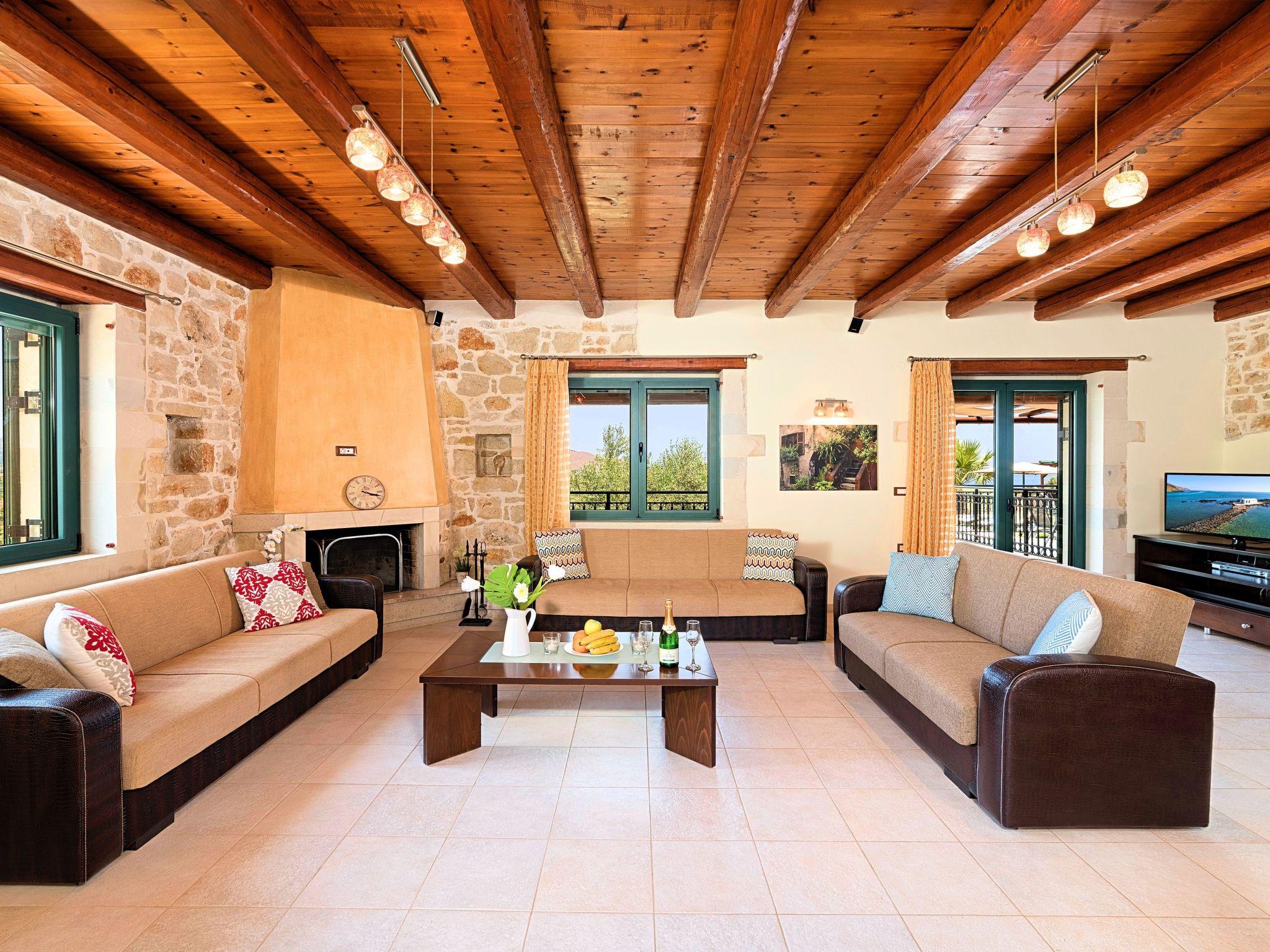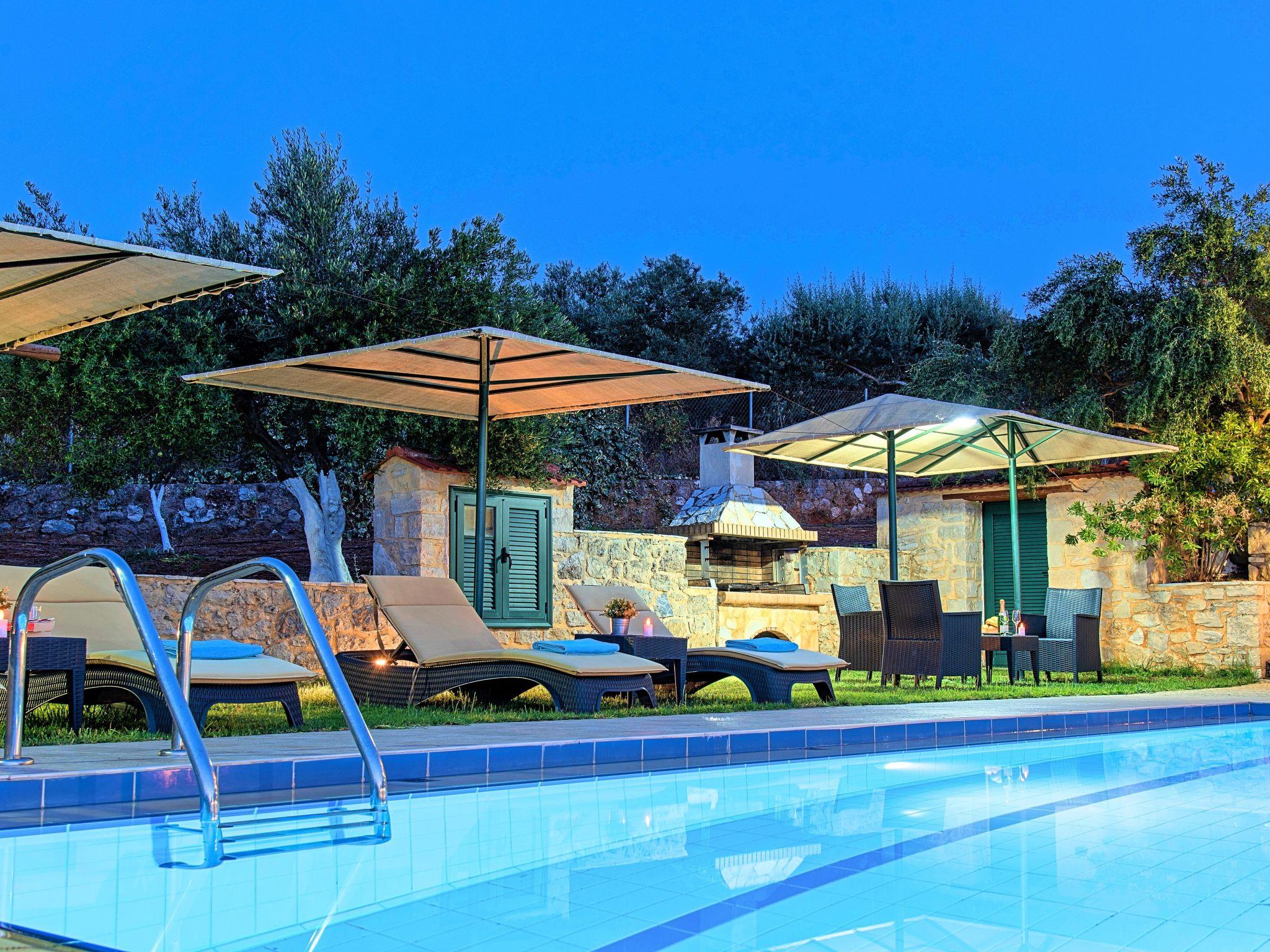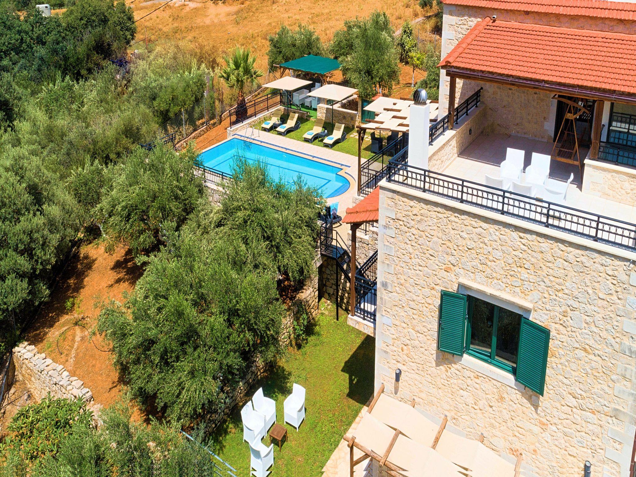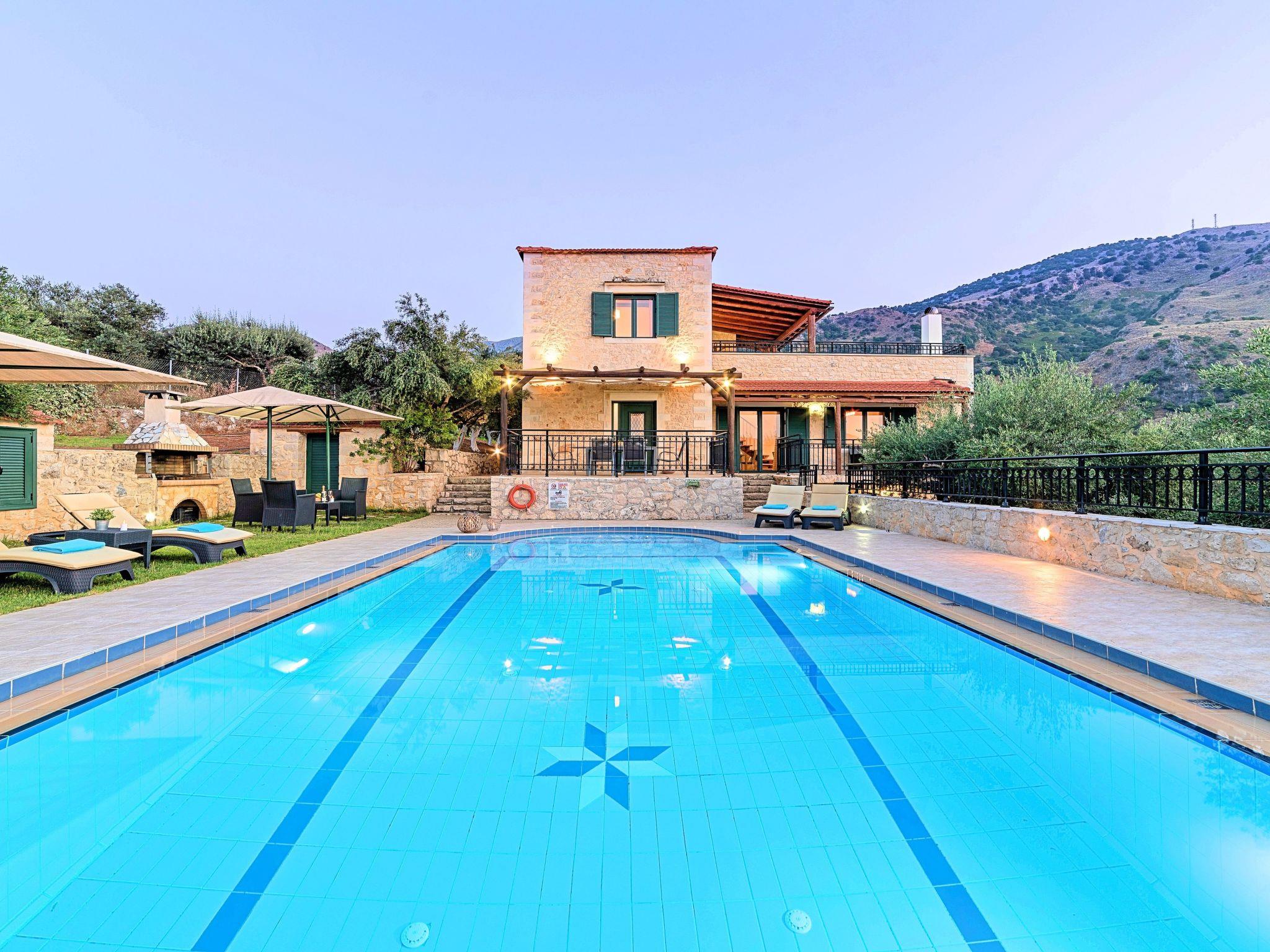 Die Villa Stelios ist ein exquisites und außergewöhnlich gut gebautes, maßgeschneidertes Haus, das sich für jede Lebensphase eignet, das ganze Jahr über. Das Anwesen liegt auf einem Hügel vor dem Dorf Mathes mit Blick auf Georgioupolis und den berühmten Sandstrand (nur 2 km entfernt) und bietet sowohl innen als auch außen einen spektakulären Unterhaltungsort mit einem ausgedehnten Gelände, das die kretische Landschaftsgestaltung mit blühenden Sträuchern, Olivenhainen und Schlingpflanzen zeigt. Die Villa Stelios kann bis zu 12 Gäste beherbergen (10 in den Schlafzimmern) und 2 weitere auf den Sofas im Wohnzimmer. 5 Schlafzimmer, 3 Badezimmer, 220qm Wohnfläche, 6.000qm Grundstücksfläche, privater Pool 60qm