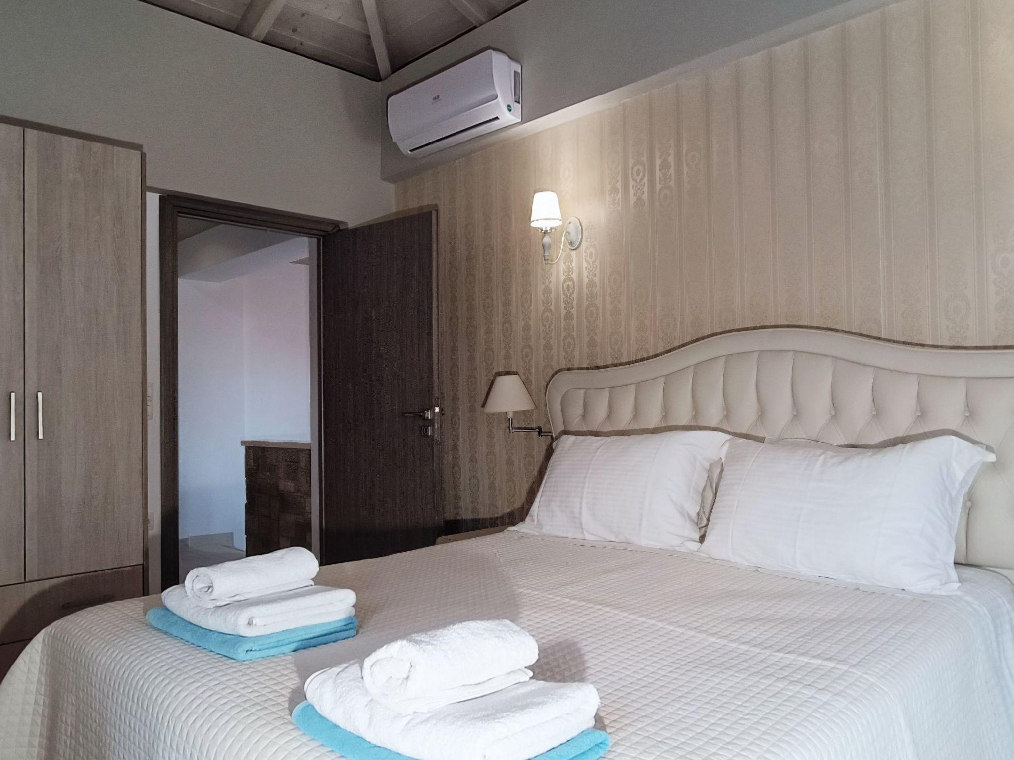 Das wunderbare Ferienhaus steht auf einem 450 m² großen, komplett eingefriedeten Gartengrundstück und bietet auf einer Wohnfläche von 130 m² auf zwei Etagen reichlich Platz für sieben Personen. Die modern designte Inneneinrichtung wird perfekt durch den Außenbereich, der ideal zum Entspannen ist, ergänzt. Auf der unteren Ebene befindet sich ein modern eingerichtetes Wohnzimmer mit einem Esstisch und einer Sofaecke mit Schlafcouch neben dem Kamin mit Pool- und Gartenblick. Ein großer 43 Zoll LED Fernseher mit DVD- und CD/Radio-Player sorgen für Unterhaltung. In der modernen Küche hinter dem Essbereich, die mit Kühl-/Gefrierschrank, Backofen, Mikrowelle, Geschirrspüler, Toaster, Wasserkocher, Kaffeemaschinen und allen notwendigen Küchenutensilien ausgestattet ist, können Sie nach Herzenslust schnippeln und brutzeln. Ebenfalls auf der unteren Wohnebene befindet sich ein Schlafzimmer mit zwei Einzelbetten mit antiallergischen Anti-Stress-Matratzen und einem eigenen Badezimmer mit Jacuzzi-Dusche. Auf der ersten Etage liegt das Hauptschlafzimmer. Ausgestattet ist es mit einem Kingsize-Bett mit hypoallergener Antistress-Matratze, einem eigenen Badezimmer mit Jacuzzi-Dusche, einem 32 Zoll LED Fernseher, einem Safe und einem überdachten Balkon mit Pool-, Garten- und Meerblick. Des Weiteren gibt es eine separate Suite mit einem Kingsize-Bett mit einer hypoallergenen Antistress-Matratze, einem eigenen Bad mit Jacuzzi-Dusche und einem 32 Zoll LED Fernseher. Damit Sie Ihre Wäsche machen können, stehen Ihnen eine Waschmaschine, ein Trockner und ein Bügeleisen kostenlos zur Verfügung. In allen Zimmern gibt es eine Klimaanlage, die gebührenfrei genutzt werden kann, ebenso kostenfreies High Speed WLAN in allen Bereichen des Hauses.