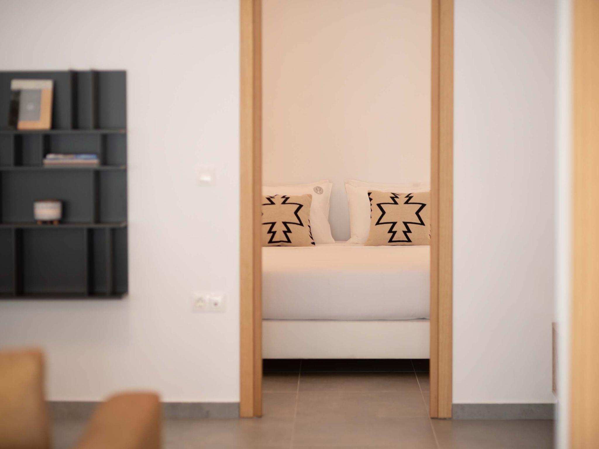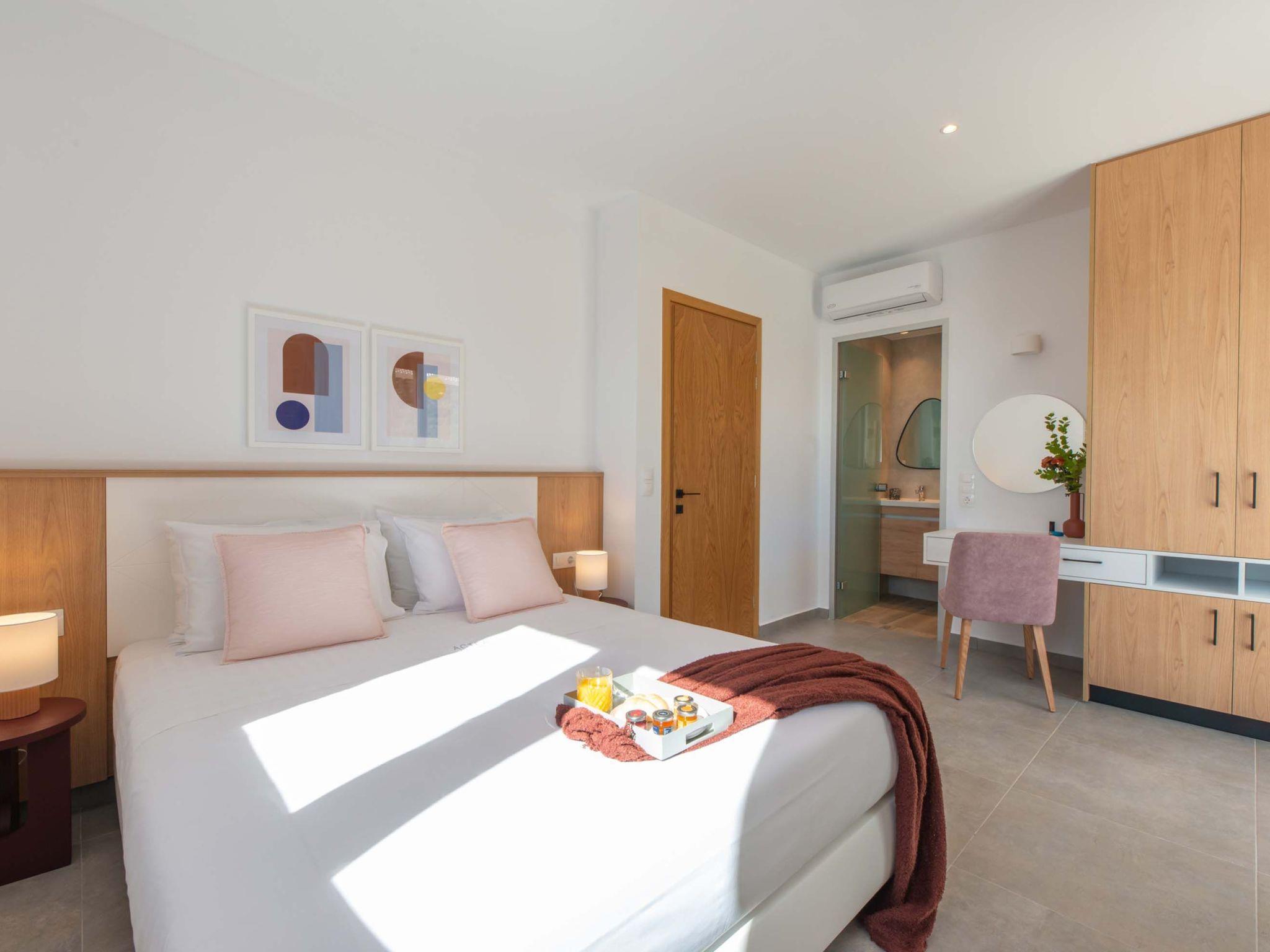 Schlafzimmer 1: Queen-Size-Bett (1,60x2,00), Klimaanlage, 32'' Smart Satellite TV, eigenes Bad mit Dusche, Haartrockner, Zugang zum Pool, Meerblick
