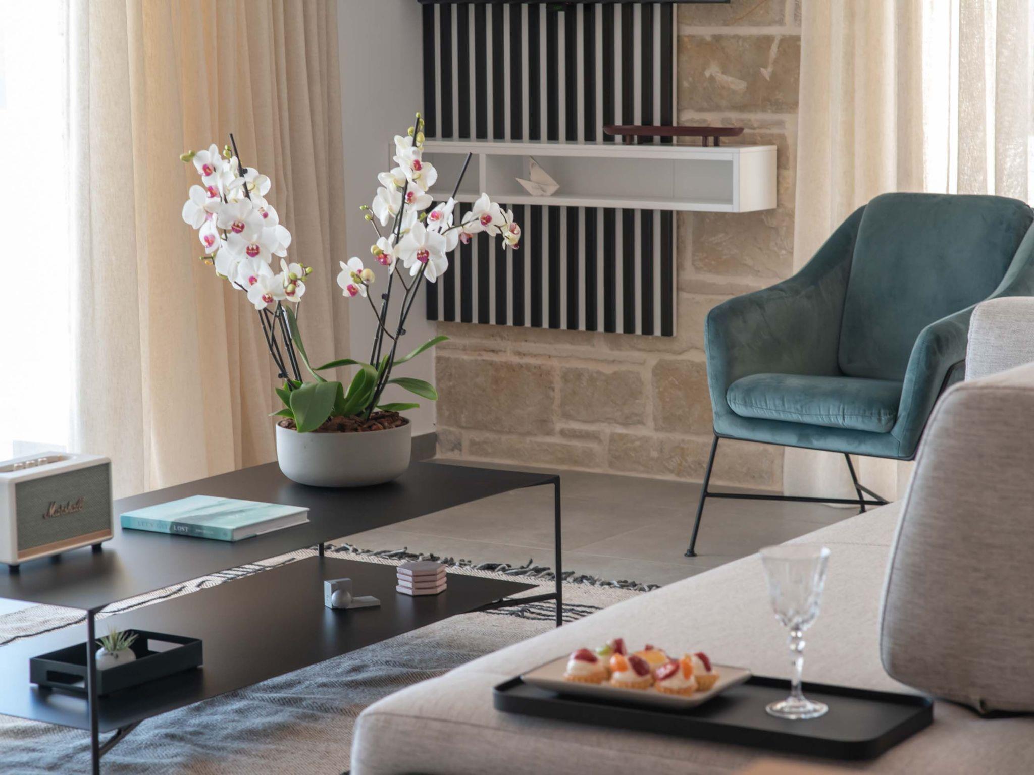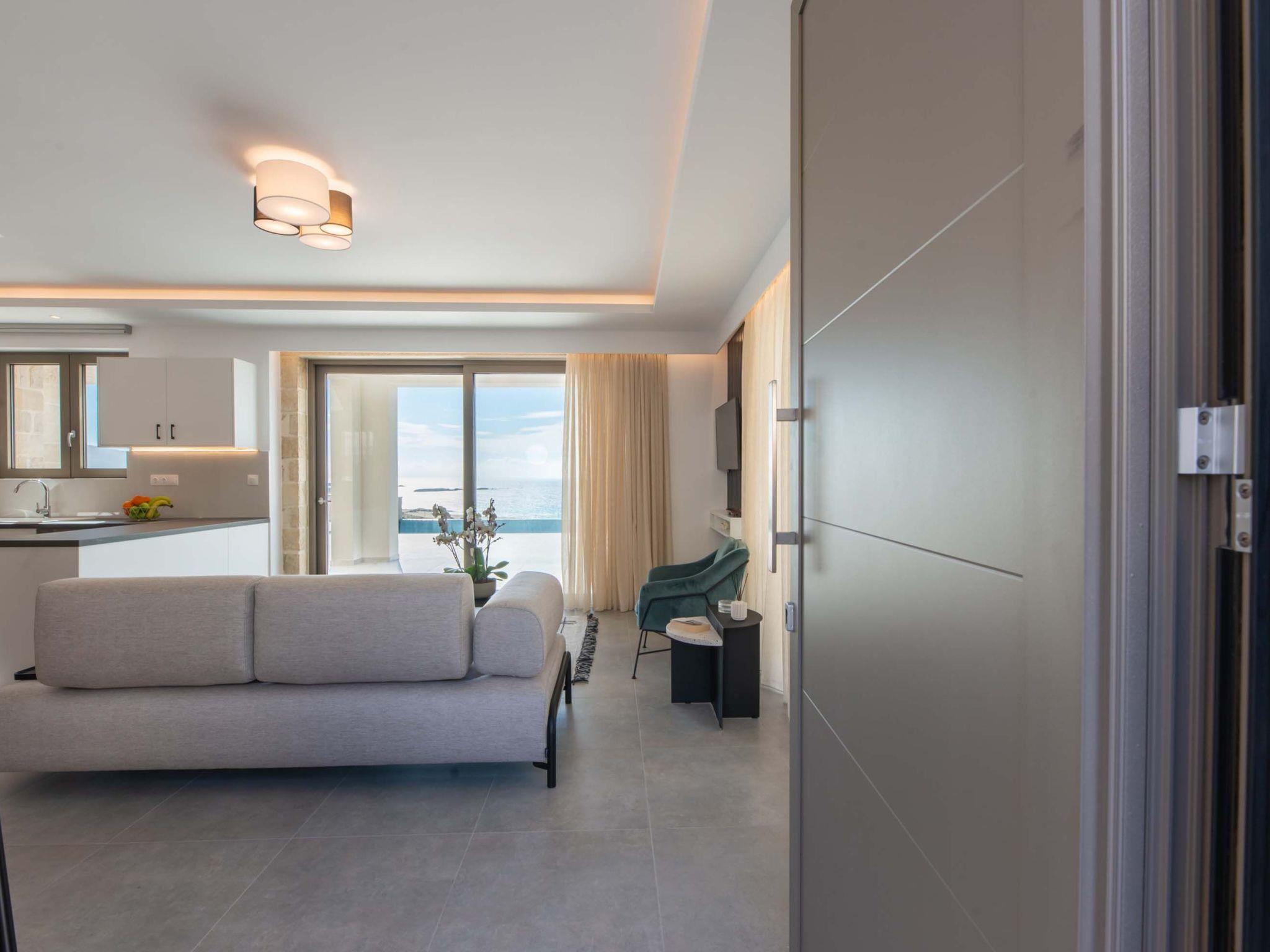 Wohnbereich mit Sofa, 43'' Smart Satellite TV, Zugang zur Poolterrasse, Meerblick