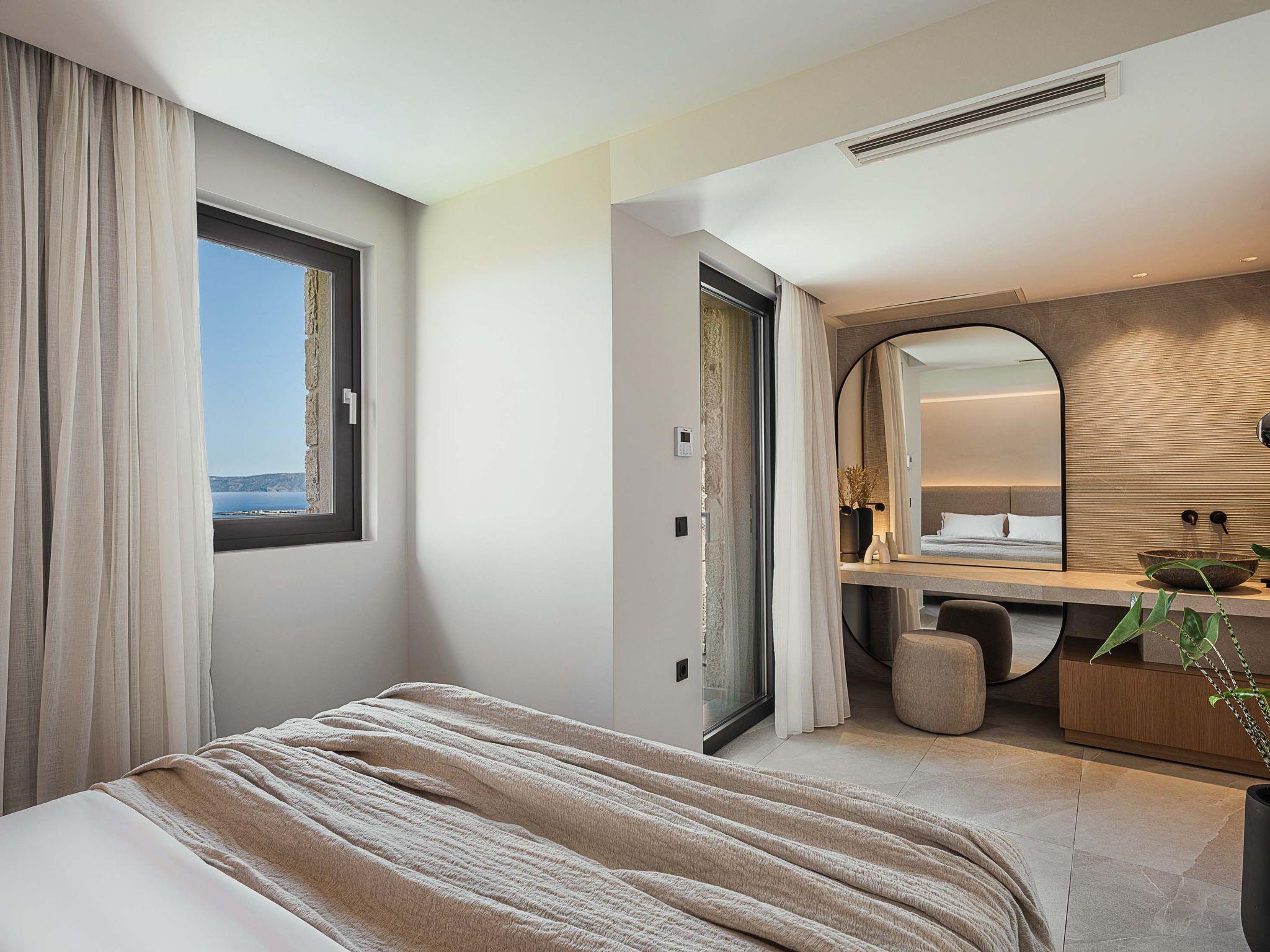 Schlafzimmer 2: Kingsize-Bett (2.00x2.00), Schlafsofa, eigenes Bad mit Dusche, Haartrockner, Klimaanlage, Minikühlschrank, Balkon mit Meerblick