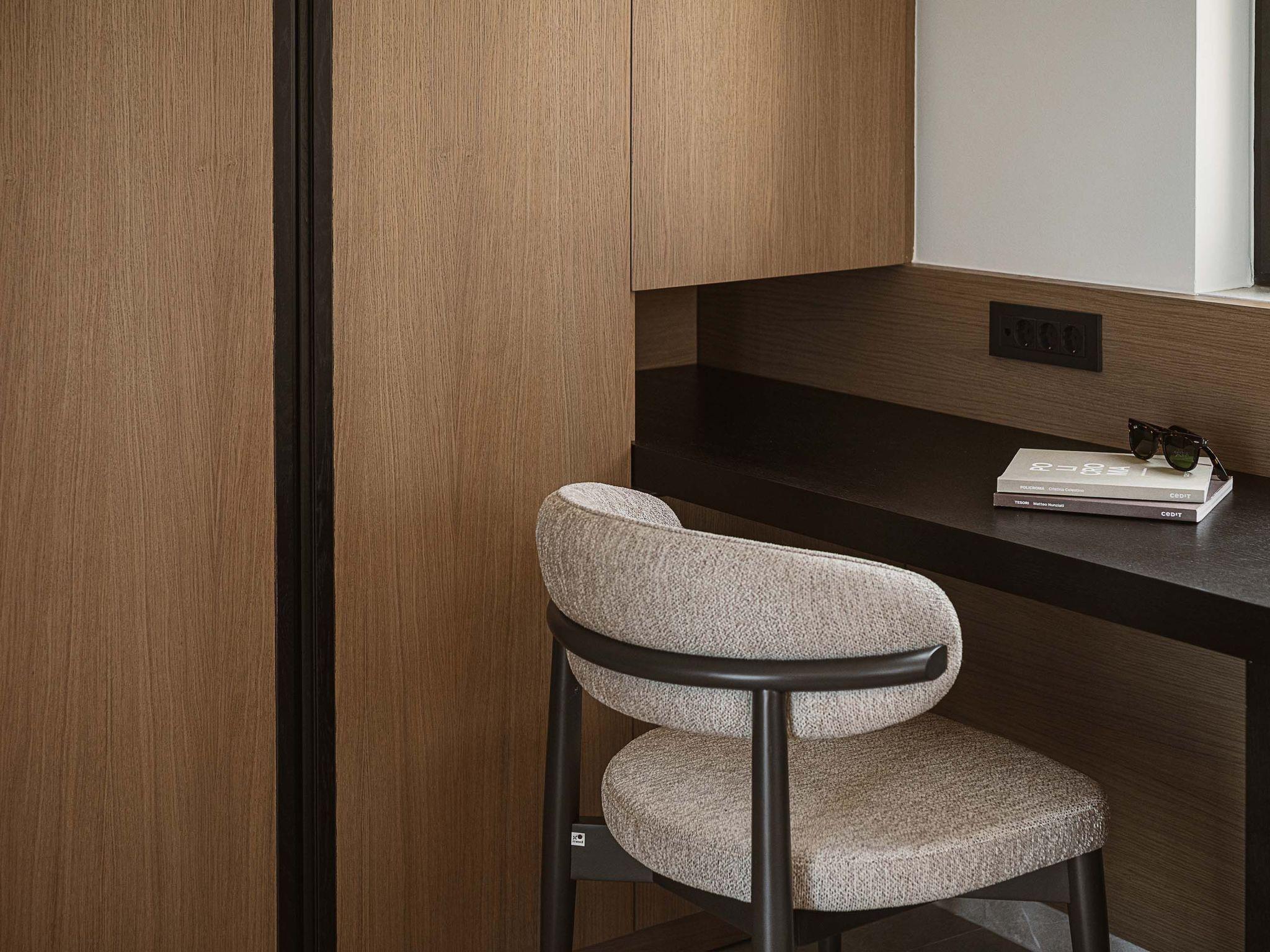 Luxus und modernes Design vervollständigen die Szenerie der zeitgenössischen Architektur und der hochwertigen Produkte. Wenn Sie die Villa im Erdgeschoss betreten, finden Sie einen geräumigen, offenen Bereich mit einer voll ausgestatteten, modernen Küche, die mit Markengeräten und -einrichtungen ausgestattet ist, die das Kochen im Urlaub zu einem angenehmen Erlebnis machen. Der Bereich wird durch ein Esszimmer und ein Wohnzimmer mit einem 55'' Smart-Satellitenfernseher und einem Kamin vervollständigt. Die großen Fenster schaffen die Illusion von Transparenz und sorgen für einen nahtlosen Übergang zwischen dem Innen- und Außenbereich.