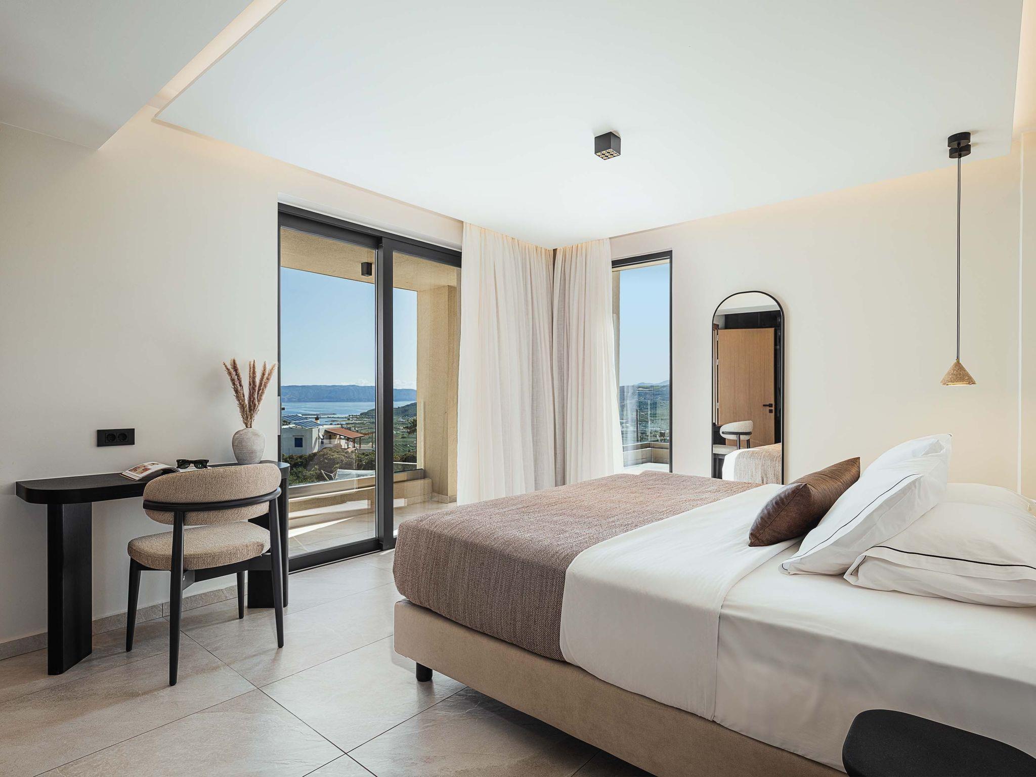 Die Villa befindet sich an einem sehr idyllischen Punkt und nichts kann die magische Aussicht auf das kretische Meer und die Berge stören.