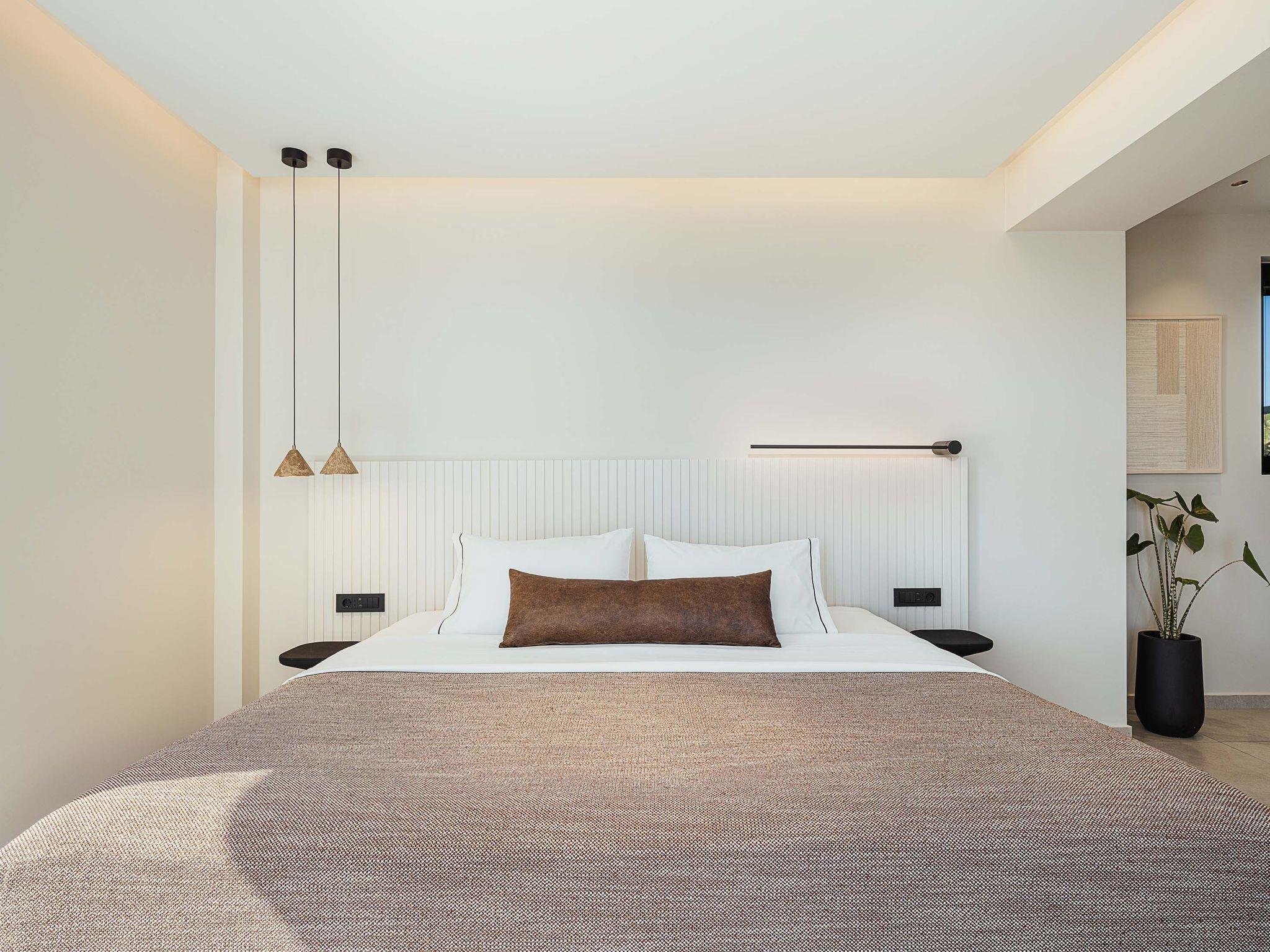 Rastoni Villa ist eine zweistöckige Villa mit vier Schlafzimmern, drei davon im ersten Stock, alle mit Kingsize-Betten und eigenem Bad. Das vierte Schlafzimmer im Erdgeschoss hat zwei Einzelbetten (die auf Anfrage in ein Kingsize-Bett umgewandelt werden können) und ein eigenes Bad. Das Schlafzimmer und das Badezimmer im Erdgeschoss sind für Gäste mit Mobilitätsproblemen geeignet. Im Erdgeschoss gibt es ein gemeinsames WC, das für alle Gäste geeignet ist.