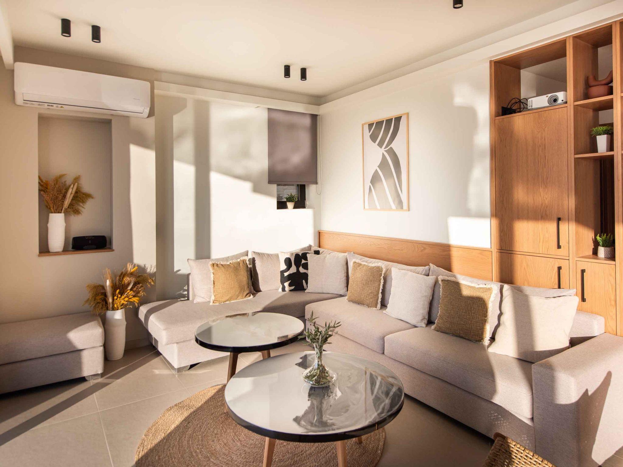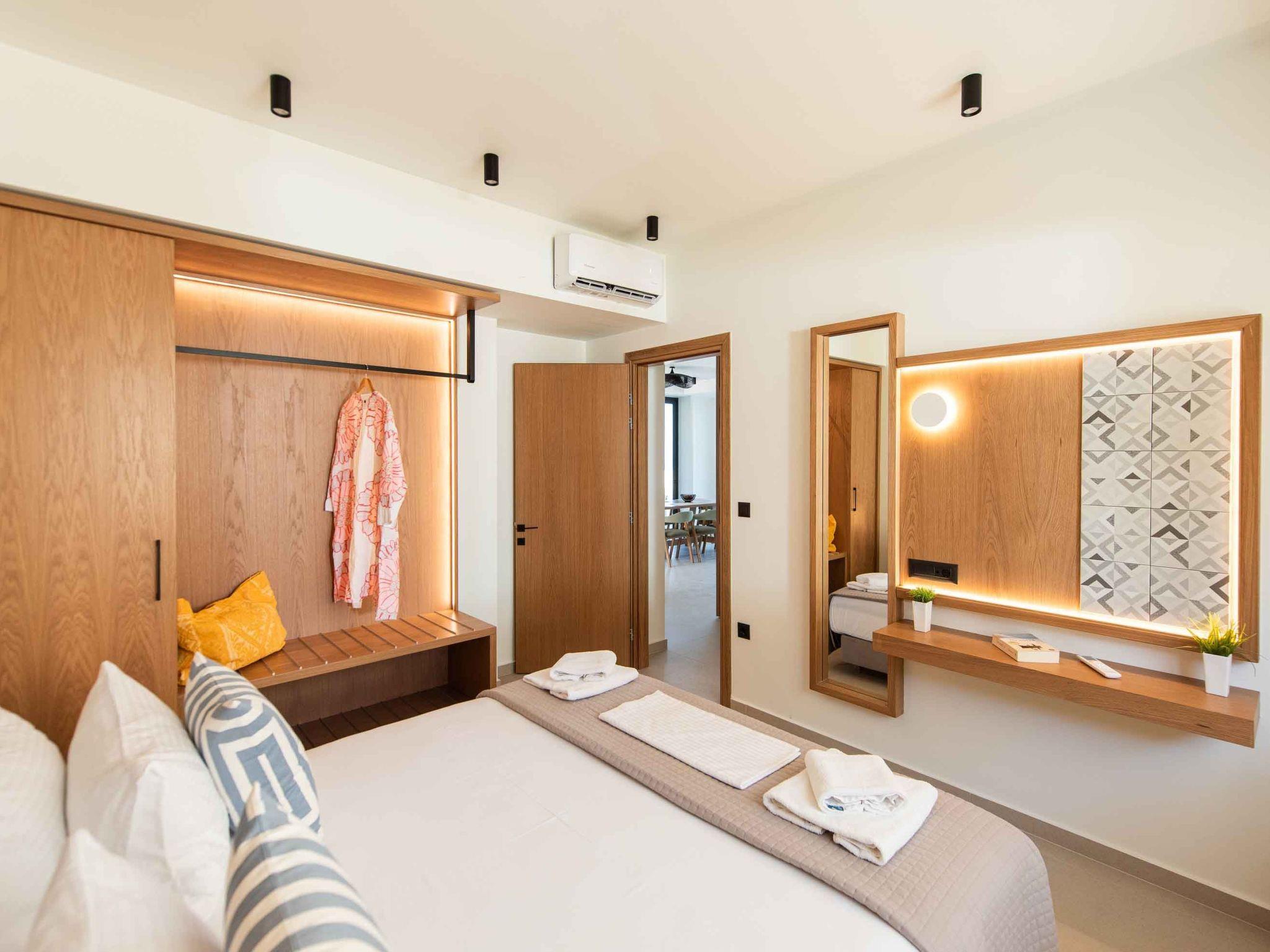Gibt es für Sie im Sommerurlaub einen besseren Ort als am Pool zu liegen und sich zu bräunen? Die private Rasenfläche im Garten eignet sich für Drinks bei Sonnenuntergang, und der Swimmingpool mit einem Lounge-Bereich mit Sofas ist der ideale Ort zum Entspannen. Ganz in der Nähe des Pools befindet sich ein Esstisch für 16 Gäste, an dem Sie und Ihre Familie entspannen können. Werfen Sie den Grill an und versammeln Sie sich zu einer Mahlzeit im Freien unter der Pergola, während die Sterne nach und nach zum Vorschein kommen. Liegestühle, um die kretische Sonne und die kleinen Dinge zu genießen, die Sie beeindrucken werden. Diese stilvolle Ferienimmobilie ist cool und modern und bietet wunderbar ausgestattete Außenbereiche und eine schlichte und stilvolle Inneneinrichtung.