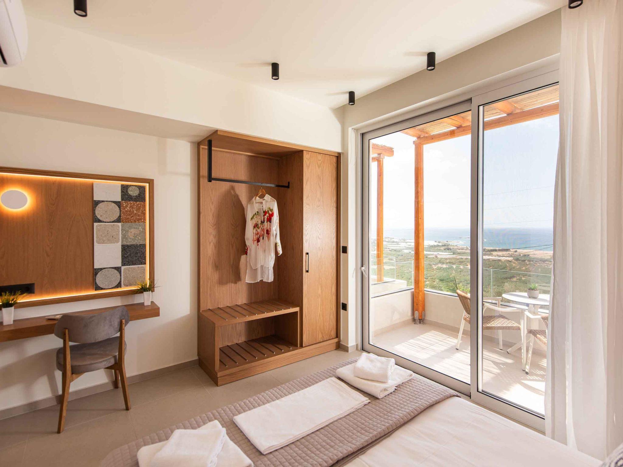 Schlafzimmer 1: King-Size-Bett (1,80×2,00), Klimaanlage, Zugang zum Außenbereich, Meerblick