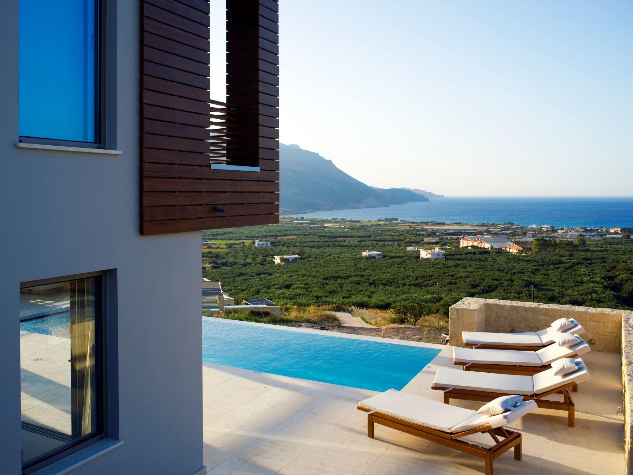 Im Außenbereich entfaltet die Villa ihren wahren Charme mit einer großzügigen Natursteinterrasse und einem atemberaubenden privaten Infinity-Pool, der zum Eintauchen und Entspannen einlädt, während Sie die malerische Aussicht auf die Halbinseln Gramvousa und Spatha genießen. Der Außenbereich ist mit einer schattigen Pergola-Lounge mit stilvollen Möbeln ausgestattet, die zum Essen im Freien oder einfach zum Genießen der friedlichen Atmosphäre einlädt. Traditionelle Steinmauern und eine Auswahl an einheimischen Pflanzen fügen die Villa wunderschön in die malerische Umgebung ein und bieten eine Mischung aus Luxus und Natur.