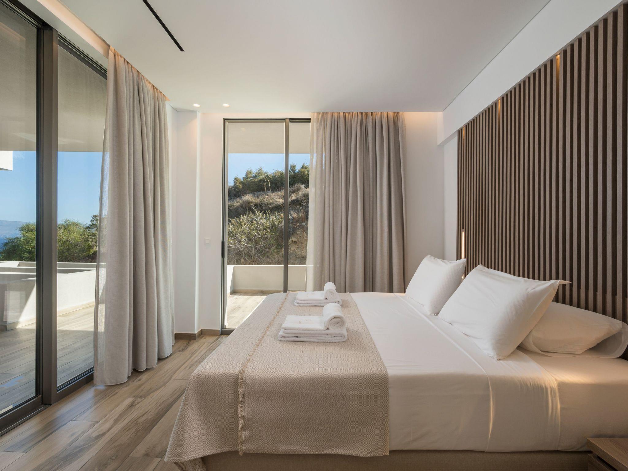Das Innere von Majestic ist für Könige gemacht und verfügt über eine raffinierte, offene Küche mit modernen Geräten, großen Arbeitsflächen und einer Frühstücksbar. Daran schließen sich nahtlos ein Essbereich und eine Lounge mit bequemen Sitzgelegenheiten rund um einen umweltfreundlichen Kamin an. Ein Schlafzimmer im Erdgeschoss ist barrierefrei und für Rollstuhlfahrer geeignet. Die Schlafzimmer im Obergeschoss sind von natürlichem Sonnenlicht durchflutet und bieten einen herrlichen Blick auf die Olivenhaine, die sich in Richtung der verführerischen Bucht von Kissamos erstrecken. Jedes Zimmer verfügt über ein eigenes Bad und einen Zugang zur Veranda, perfekt für private Momente der Entspannung.