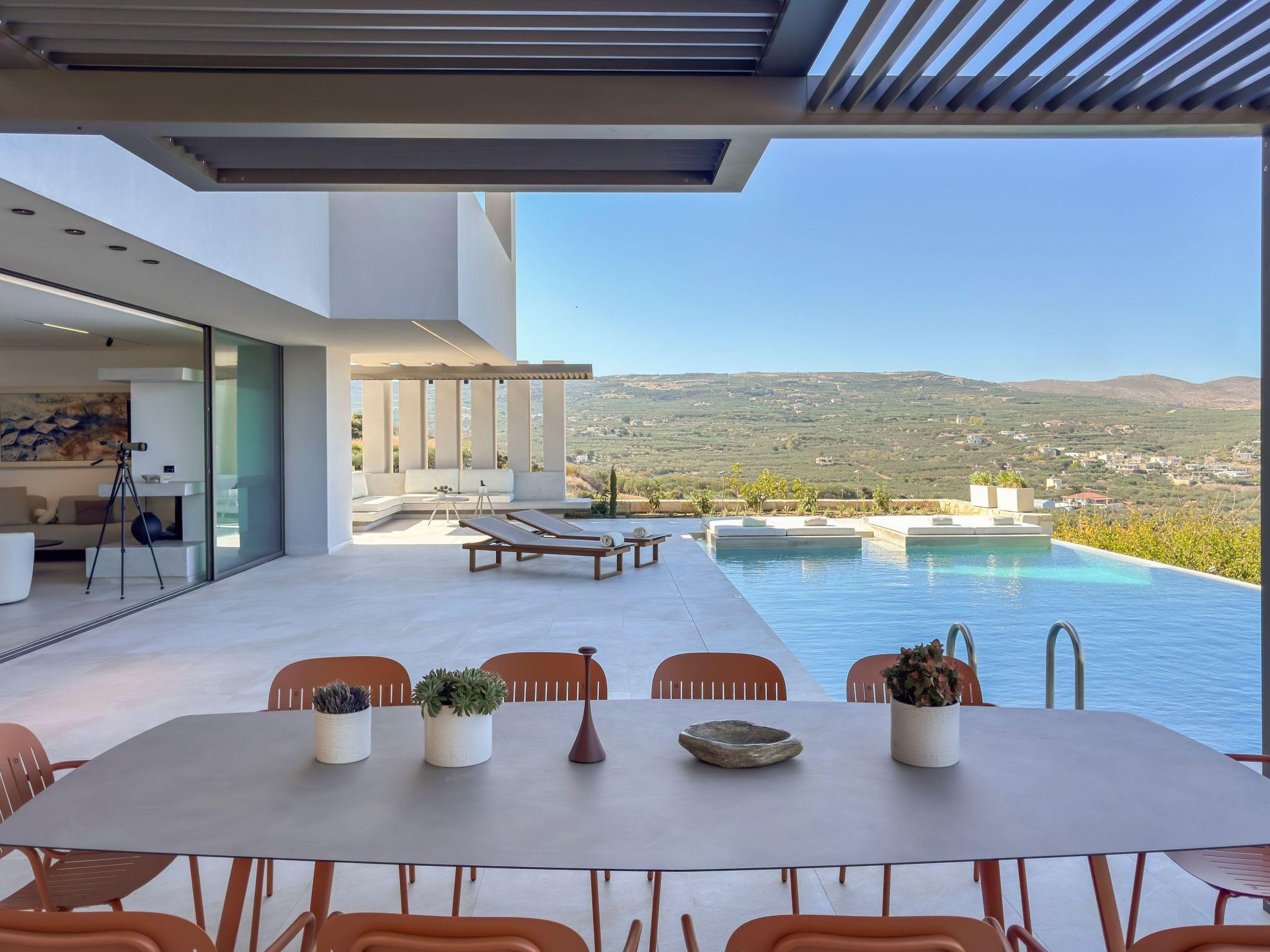 Willkommen in unserer erstklassigen Villa Majestic - eine Oase des Luxus, die auf dem Gipfel des Hügels thront und einen unvergleichlichen Blick auf die bezaubernde kretische Landschaft bietet. Diese Villa ist ein Meisterwerk des Designs, das Opulenz und Komfort verkörpert und somit der perfekte Rückzugsort für alle ist, die einen ruhigen Rückzugsort suchen. Majestic zeichnet sich durch seine großzügige Wohnfläche von 280 Quadratmetern aus, bietet Platz für bis zu 10 Gäste in fünf prächtigen Schlafzimmern und verfügt über einen herrlichen Außenpool, der die Erhabenheit der Ägäis widerspiegelt.
