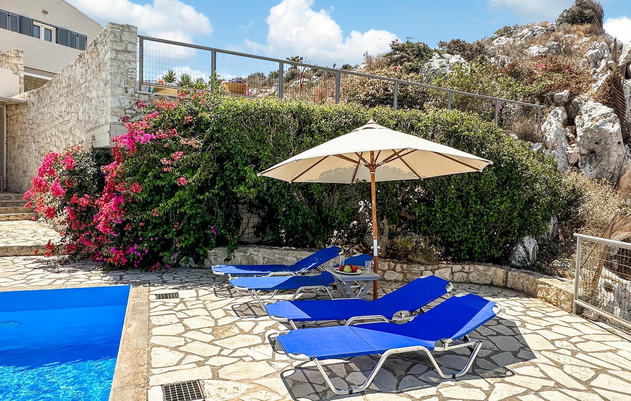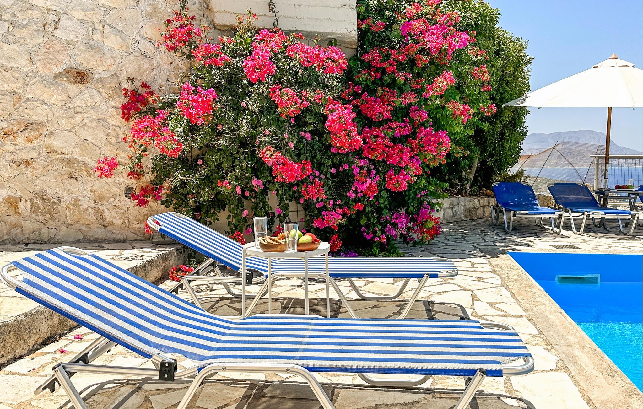 Genießen Sie wunderbare Stunden im Außenbereich des Hauses. Nehmen Sie ein Sonnenbad, lassen Sie sich von der Aussicht verzaubern und schwimmen Sie nach Herzenslust im Pool.
