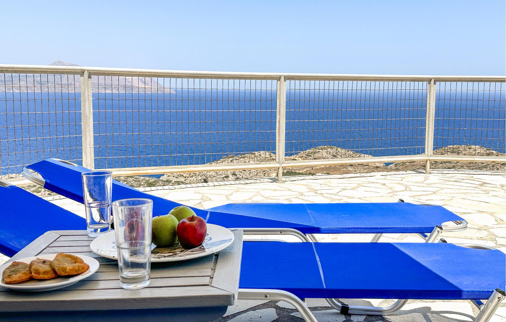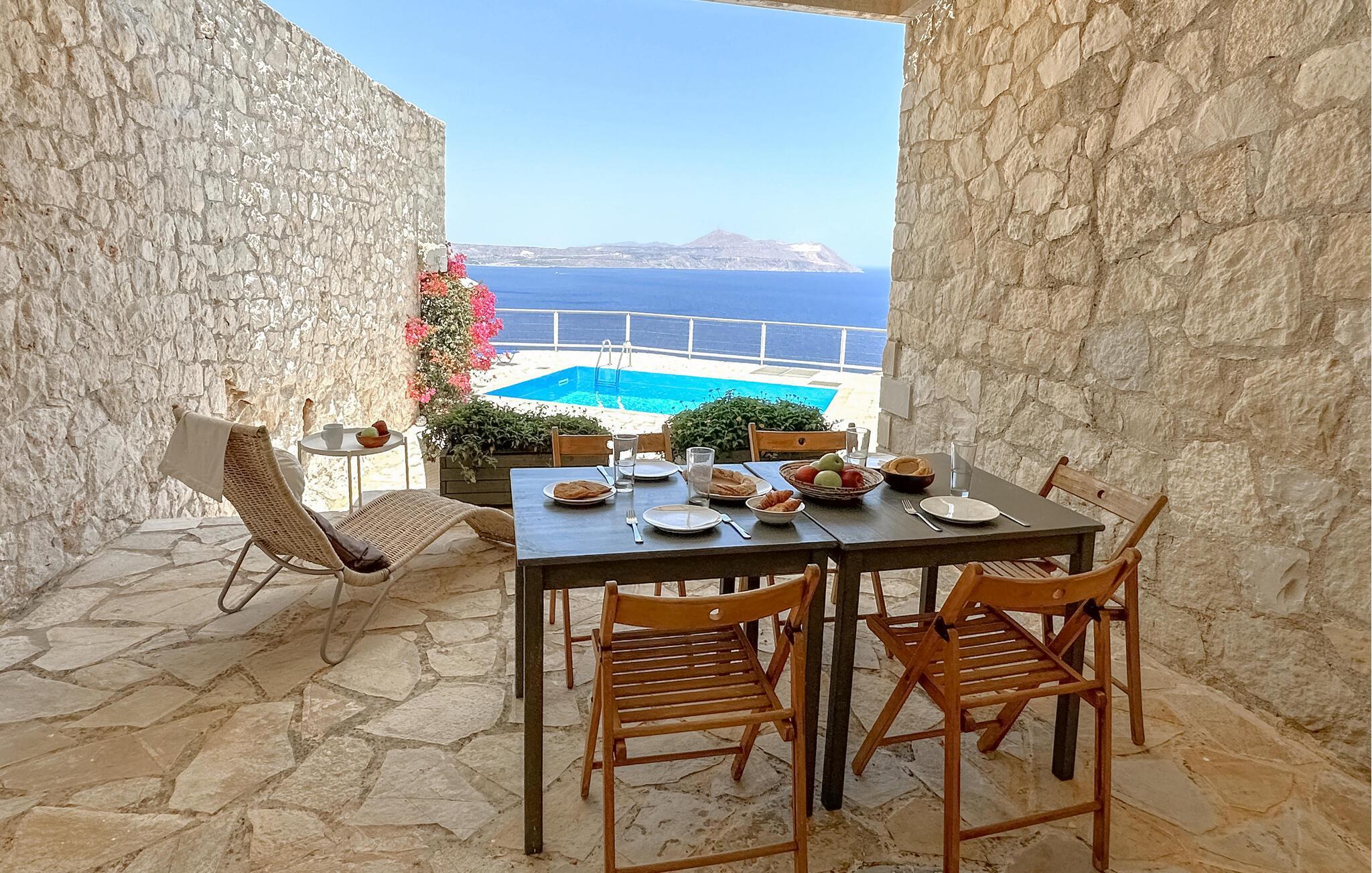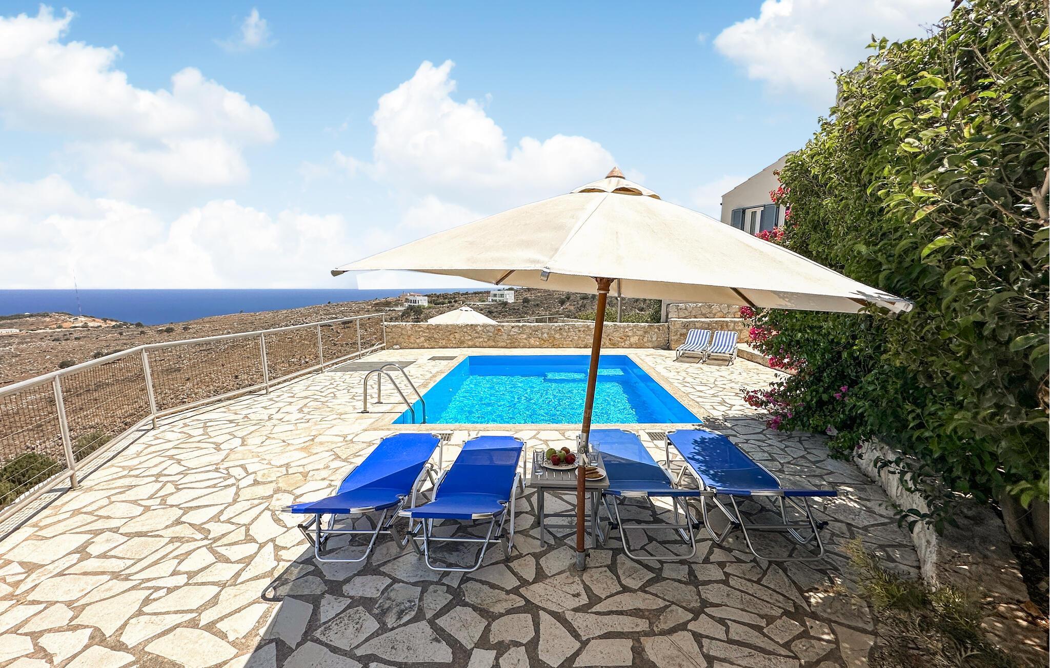 Genießen Sie einen herrlichen Blick auf das Meer in diesem komfortablen Ferienhaus mit Pool.