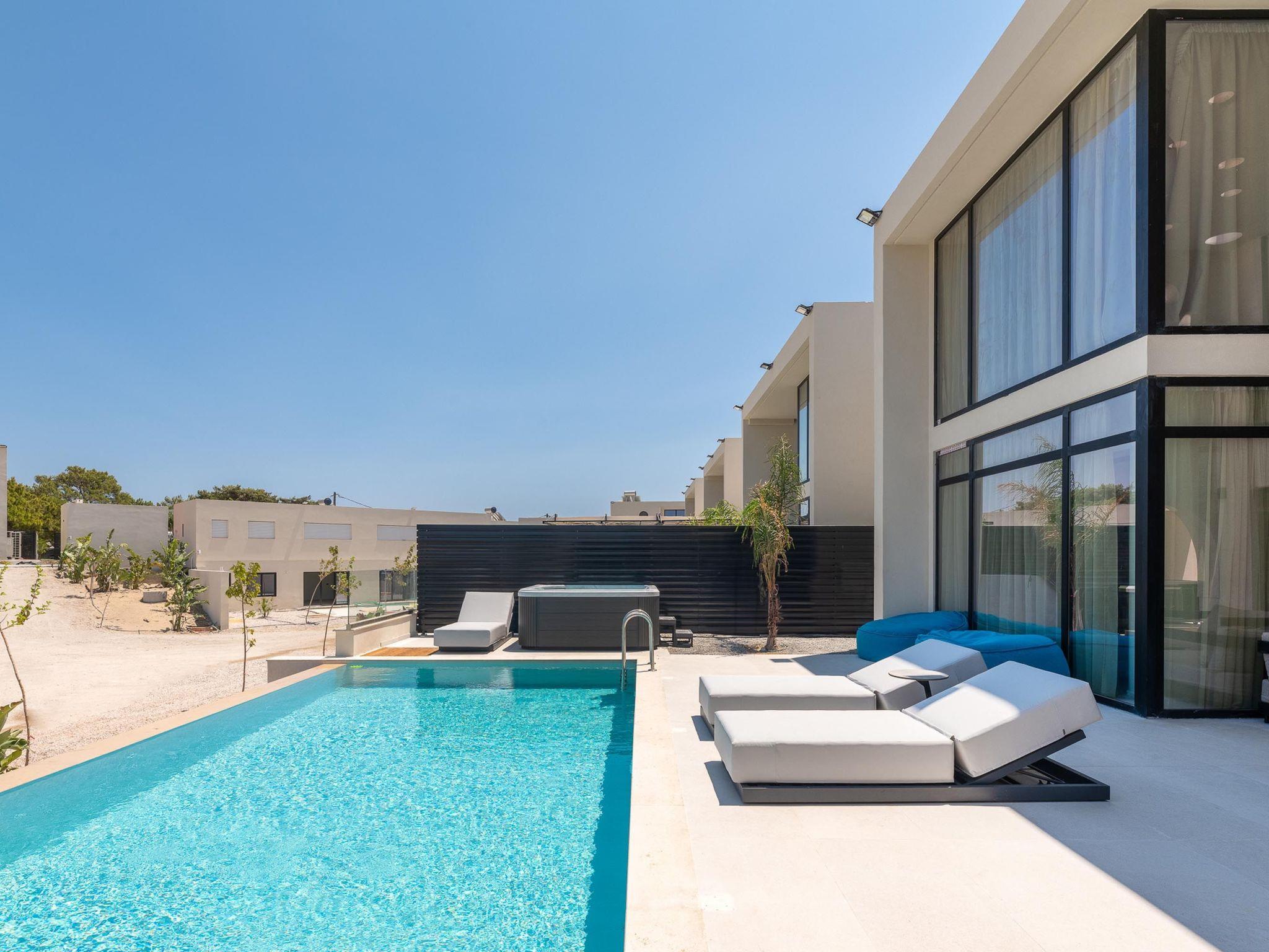 Willkommen im magischen Luxusleben von Trapezia Villas. Trapezia Luxury Living besticht durch ein atemberaubendes Design, das moderne Ästhetik mit zeitloser Eleganz verbindet. Jedes Detail wurde sorgfältig ausgearbeitet, um eine anspruchsvolle und luxuriöse Atmosphäre zu schaffen. Sie bieten weitläufige Wohnbereiche, darunter große Wohnzimmer, Essbereiche und drei voll ausgestattete Schlafzimmer mit eigenem Bad. Die hohen Decken und der offene Grundriss verstärken das Gefühl von Erhabenheit und bieten viel Platz für Entspannung und Unterhaltung. Alle Villen von Trapezia sind mit erstklassigen Annehmlichkeiten ausgestattet, um ein unvergleichliches Luxus-Erlebnis zu gewährleisten. Von einer voll ausgestatteten Gourmetküche im Freien bis hin zu einem privaten Swimmingpool und einem Spa ist für jeden Aspekt des Komforts und des Genusses gesorgt. Trapezia Luxury Living ist der Inbegriff von Opulenz und Raffinesse und bietet ein wahrhaft außergewöhnliches Wohnerlebnis für diejenigen, die eine Unterkunft vom Feinsten suchen. Die Villen vom Typ A sind zweistöckige, freistehende Luxusvillen, die bis zu 6 Gäste beherbergen können und über 3 vollklimatisierte Schlafzimmer mit einzigartiger Dekoration verfügen. Alle Schlafzimmer verfügen über ein eigenes Bad mit Dusche. Es gibt eine voll ausgestattete Küche in warmen Farben, geeignet für jede Mahlzeit Vorbereitung begleitet von der Sitzecke und das Wohnzimmer. Es gibt einen Smart-TV und kostenlosen WIFI-Zugang im gesamten Haus. Im Außenbereich befinden sich ein privater Swimmingpool und ein Whirlpool mit Sonnenliegen und einer Sitzecke, wo Sie sich unter den Strahlen der ägäischen Sonne entspannen können. Die fantastische Außenküche mit dem Essbereich verspricht unvergessliche Abendessen unter dem griechischen Himmel. Sie können Ihre Zeit an Ihrem privaten Swimmingpool verbringen oder eine frisch zubereitete Mahlzeit auf der Grillanlage genießen. Dieses erstaunliche Anwesen und die schöne Lage sind die perfekte Kombination für einen unvergesslichen Aufenthalt und unvergessliche Ferien auf Rhodos!
