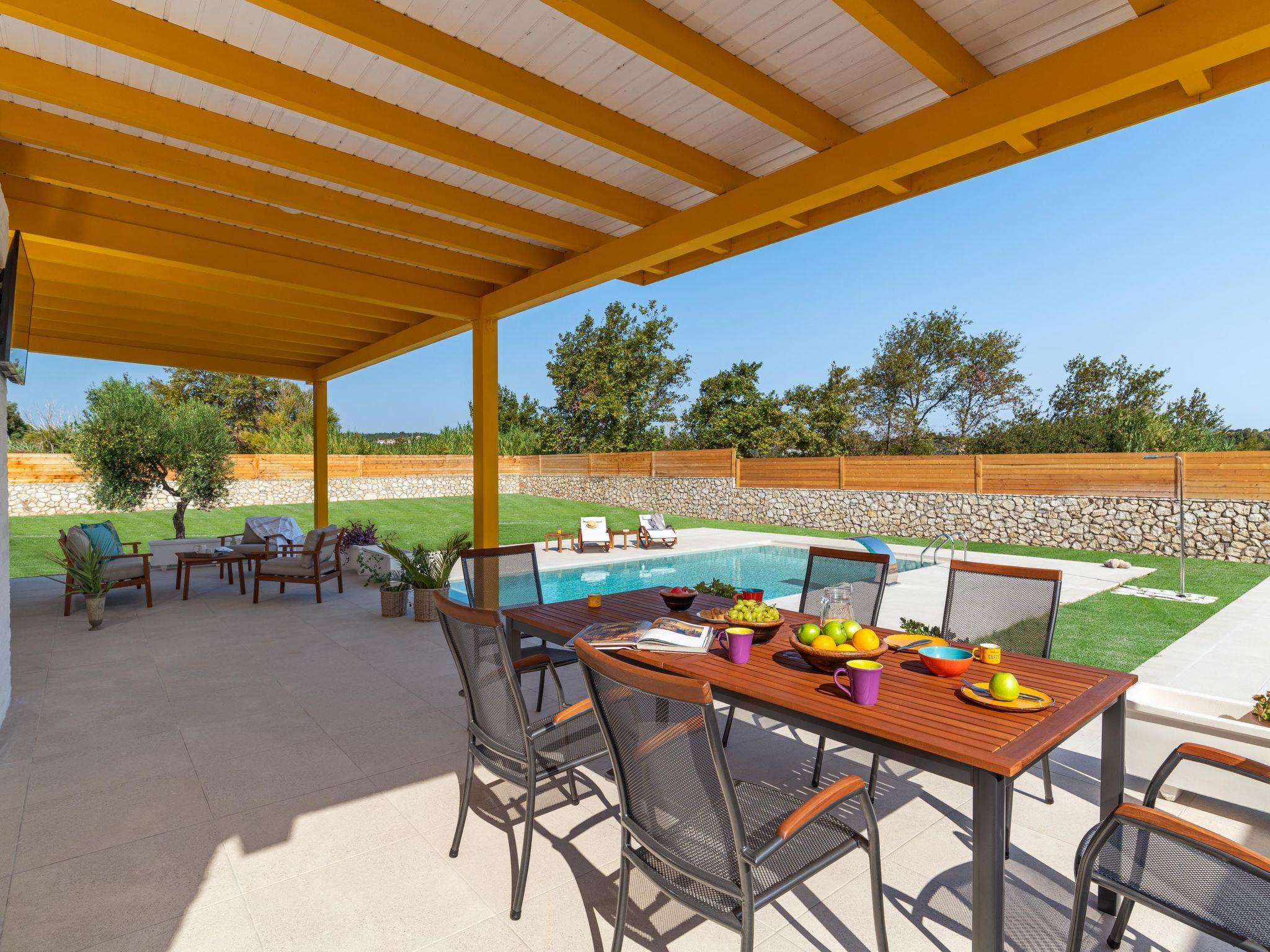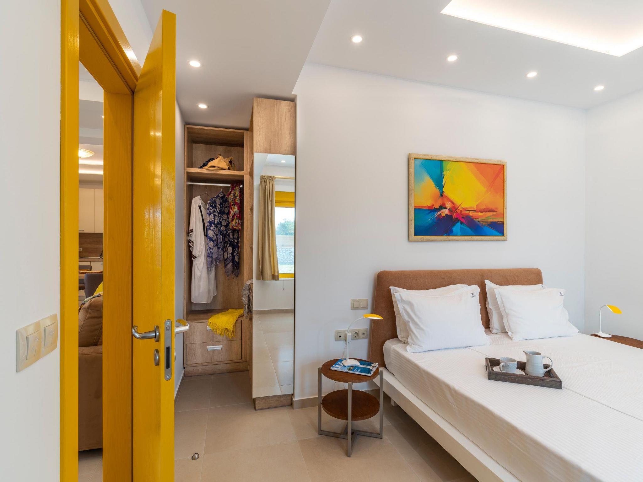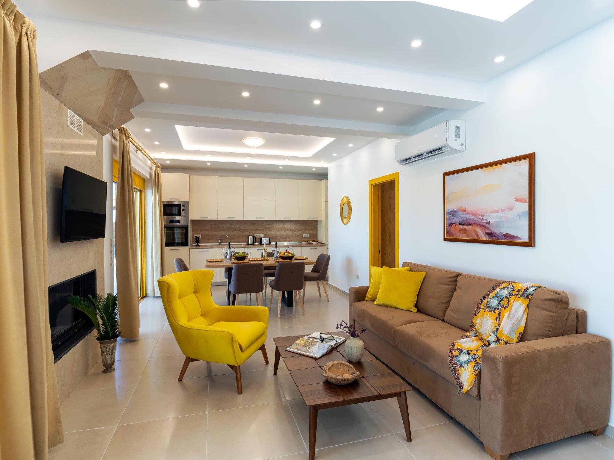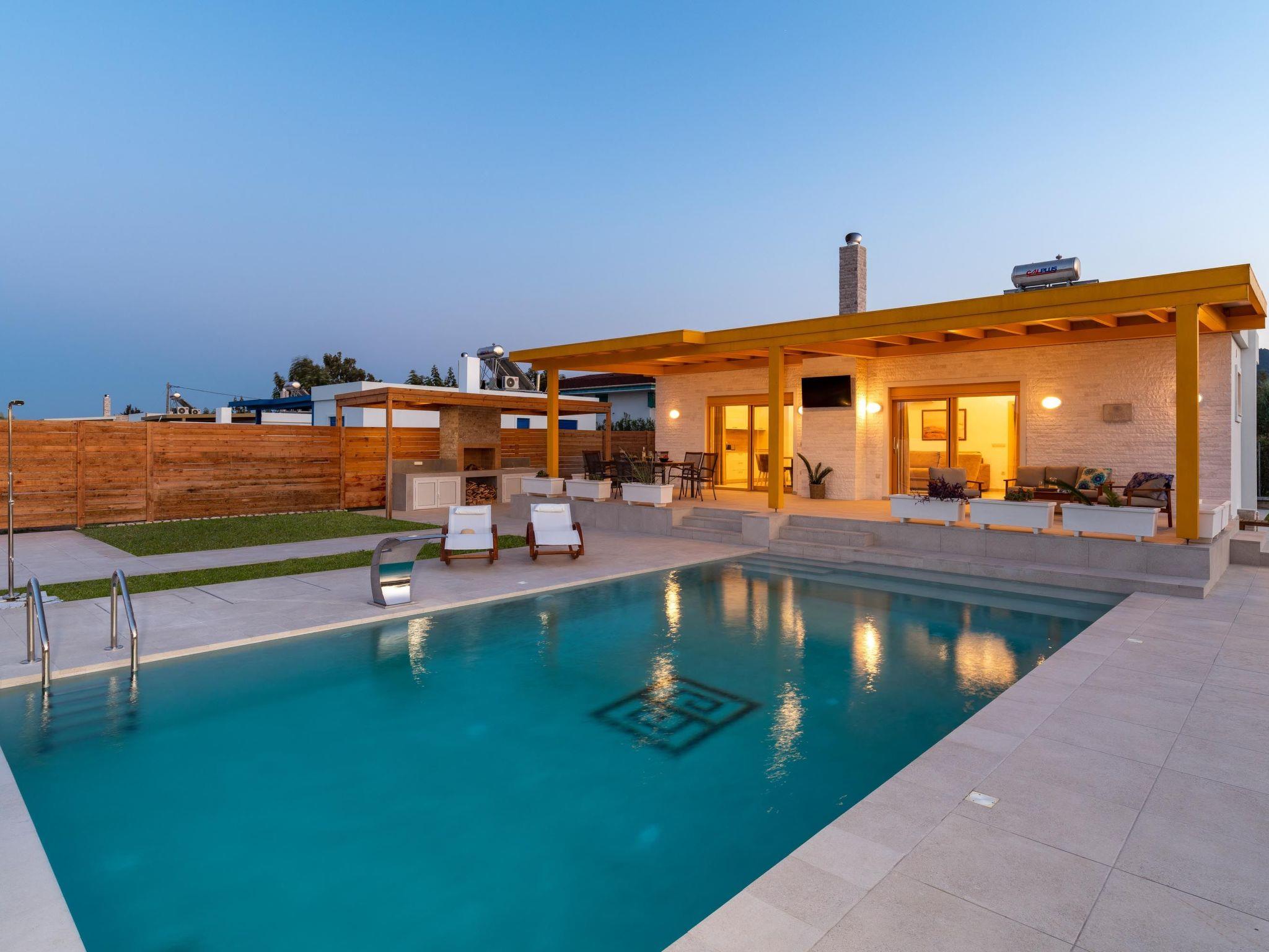 Die Villa Ilios verfügt über zwei vollklimatisierte Schlafzimmer mit eigenem Bad mit Dusche und ein bequemes Doppelschlafsofa im Wohnzimmer. Es gibt auch ein Badezimmer mit Dusche neben dem Wohnzimmer. Die Küche ist voll ausgestattet und eignet sich für die Zubereitung von Mahlzeiten, begleitet von einer Sitzecke. Das Innendesign ist absolut unglaublich mit einer geschmackvollen Dekoration. Die Gäste finden Flachbildfernseher und kostenlosen Wi-Fi-Zugang im gesamten Haus. Im Außenbereich gibt es einen herrlichen privaten Swimmingpool und Sitzgelegenheiten zum Entspannen unter der Sonne der Ägäis. Die Grillanlage und -geräte bieten Ihnen die Möglichkeit, im Freien am Pool zu speisen.