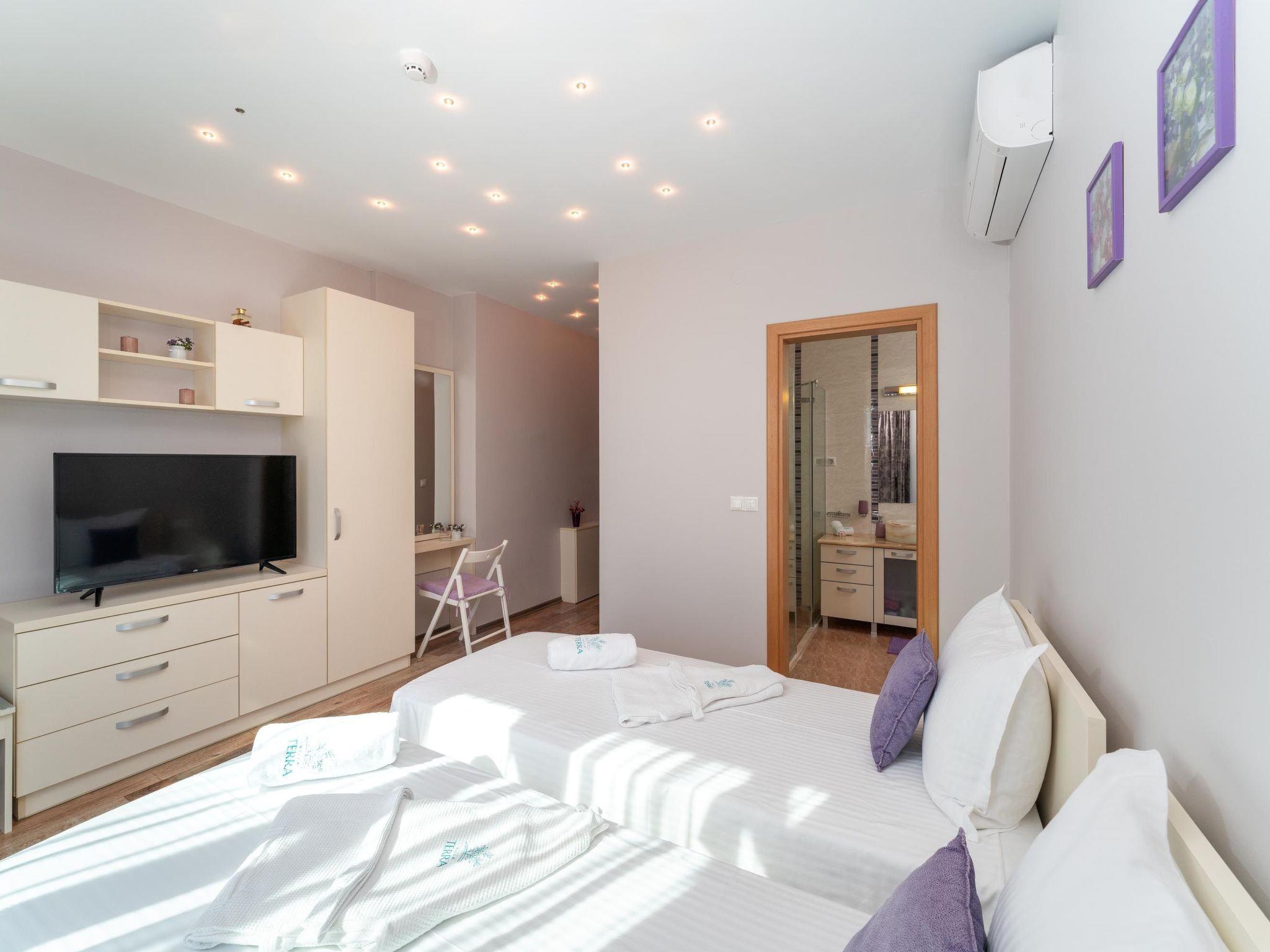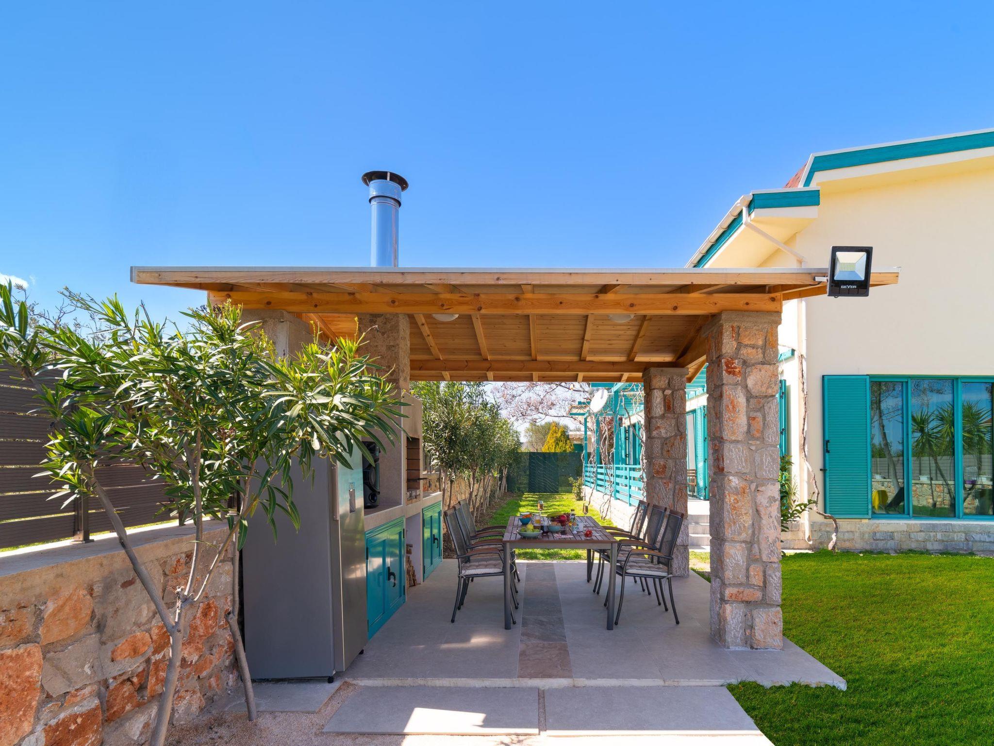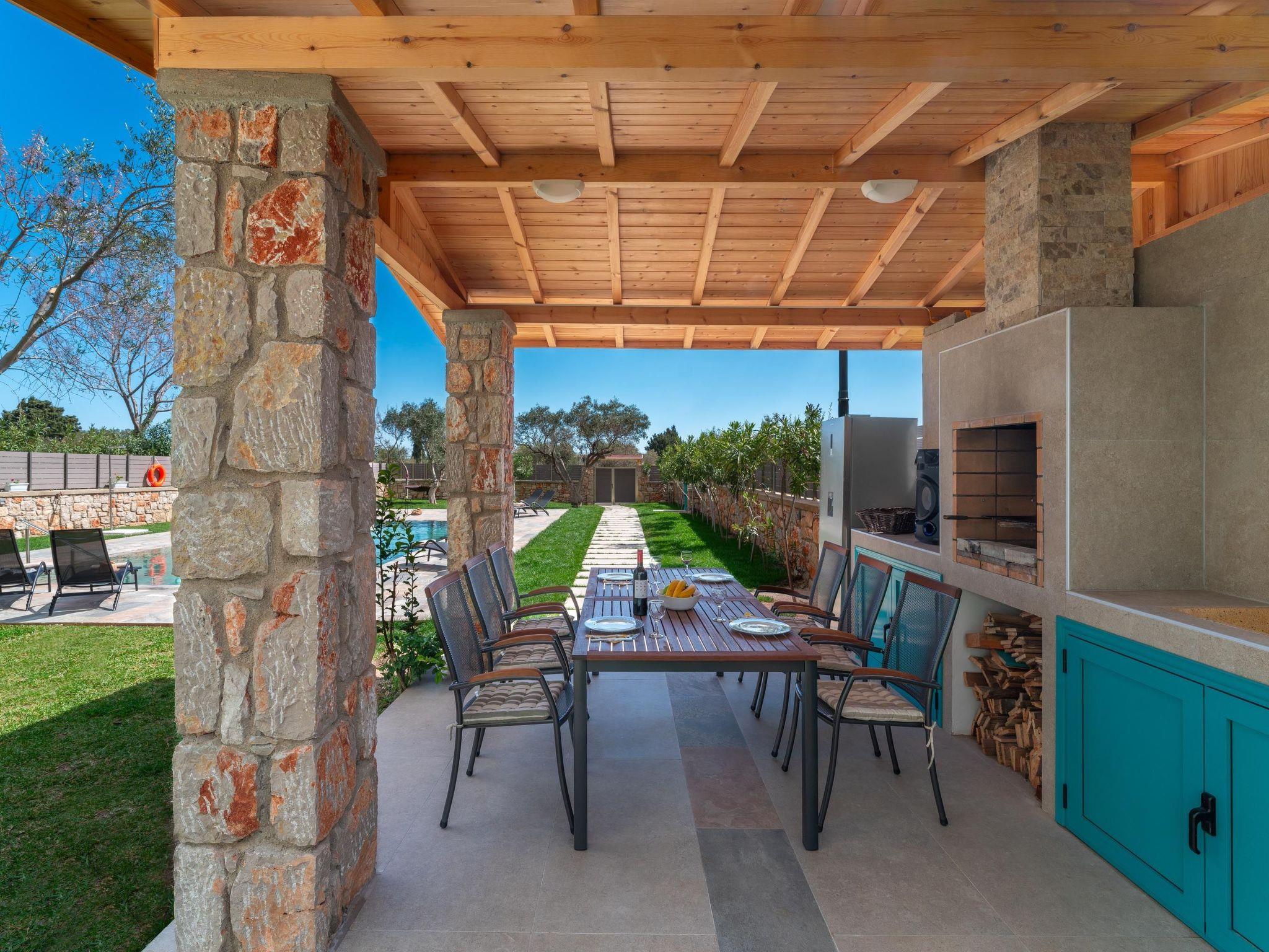Im Laufe der Jahrhunderte haben die Menschen auf Rhodos verschiedene Arten von Stein verwendet, um ihre Städte und Tempel zu bauen. Die Villa Terra ist ein Zeugnis der Handwerkskunst und der Kunstfertigkeit von Steinmetzmeistern (?????t?st??), die jeden Stein der Umzäunung sorgfältig von Hand bearbeiteten, um die charakteristischen Nuancen des örtlichen Bodens zu erhalten. Die türkisfarbene Essenz der ägäischen Brise ist in die Fenster und Fensterläden eingewoben. Eine geräumige Terrasse, eine üppige grüne Umgebung und ein Grillplatz mit TV und allem, was dazugehört, laden die Gäste zu gemütlichen Treffen ein. Tauchen Sie ein in die erfrischende Umarmung des großzügigen Swimmingpools, der mit einer Gegenstromanlage und einem Whirlpool ausgestattet ist und sowohl der Entspannung als auch der Erholung dient. Das Innere der Villa Terra strahlt ein Gefühl von Ausgeglichenheit und Harmonie aus. Natürliches Holzparkett, ein Marmorkamin, Onyx-Akzente und eine anmutige Eichentreppe schmücken die Böden, die zu drei elegant eingerichteten Schlafzimmern mit eigenem Bad führen. Kingsize-Betten in der oberen Etage und Einzelbetten in der unteren Etage bieten bequem Platz für bis zu sechs Gäste. Auf Wunsch können 2 zusätzliche Betten und 2 Babybetten aufgestellt werden, so dass auch größere Gruppen oder Familien bequem untergebracht werden können. Jedes Zimmer ist mit einer Klimaanlage ausgestattet, die einen optimalen Komfort während des gesamten Aufenthalts garantiert. Im Erdgeschoss gibt es eine eigene Toilette und eine voll ausgestattete Waschküche mit Bügelmöglichkeit für zusätzlichen Komfort. Ein luftiges, offenes Wohnzimmer geht nahtlos in eine elegante Scavolini-Küche über, die mit modernen Geräten und einer großzügigen Arbeitsfläche ausgestattet ist. Eine zentrale Kochinsel lädt zum legeren Essen oder zu einem Nachmittagsdrink auf den Barhockern ein, Ledersofas und Sessel laden zum Entspannen ein. Eine private Garage auf dem Villengelände bietet Platz für zwei Autos, weitere Parkplätze stehen im Freien zur Verfügung.