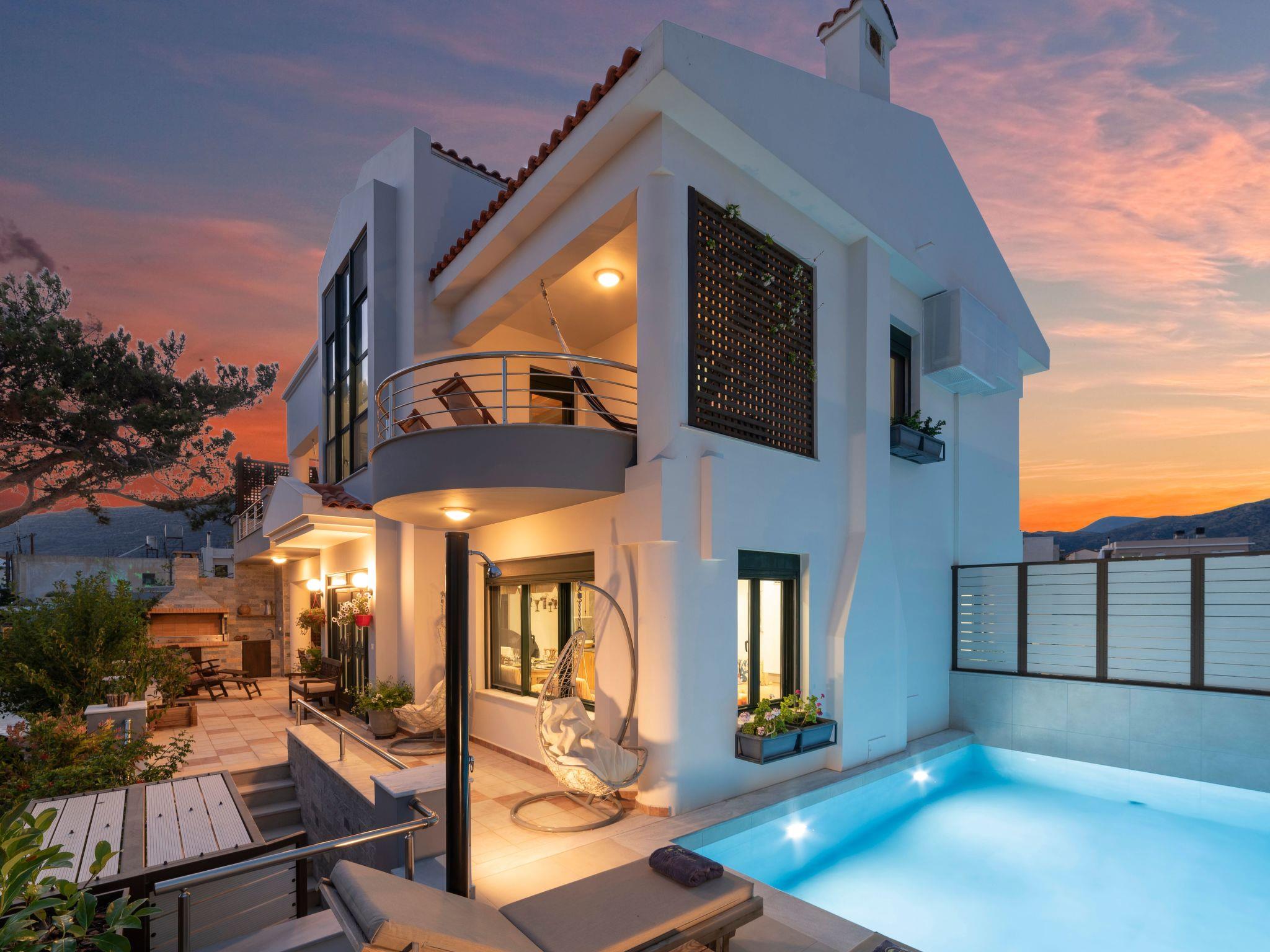 Eine kürzlich renovierte 200+ Quadratmeter mezonette mit Meerblick und privatem Pool, mit 4 Schlafzimmern plus Bonus Loft mit Einzelbetten und zwei Wohnzimmern mit Schlafsofas. Mimoza ist eine von 4 Paradisos Villen, eine gated Bereich der entspannten Gelassenheit neben dem Strand und Dorfzentrum. Die Paradisos-Villen befinden sich in Koutsourás, einem ruhigen, landwirtschaftlich geprägten Dorf im Südosten Kretas. Es liegt weniger als 2 km westlich von der Touristenstadt Makry Gialos, 23 km östlich von Ierapetra und 33 km von Sitia entfernt. Die Villen liegen nur wenige Gehminuten von einem örtlichen Kieselstrand, einer Bäckerei, Cafés, Konditoreien, Supermärkten, Bars, Restaurants und einer Apotheke entfernt und verbinden romantische Abgeschiedenheit mit der Nähe zu modernen Annehmlichkeiten.