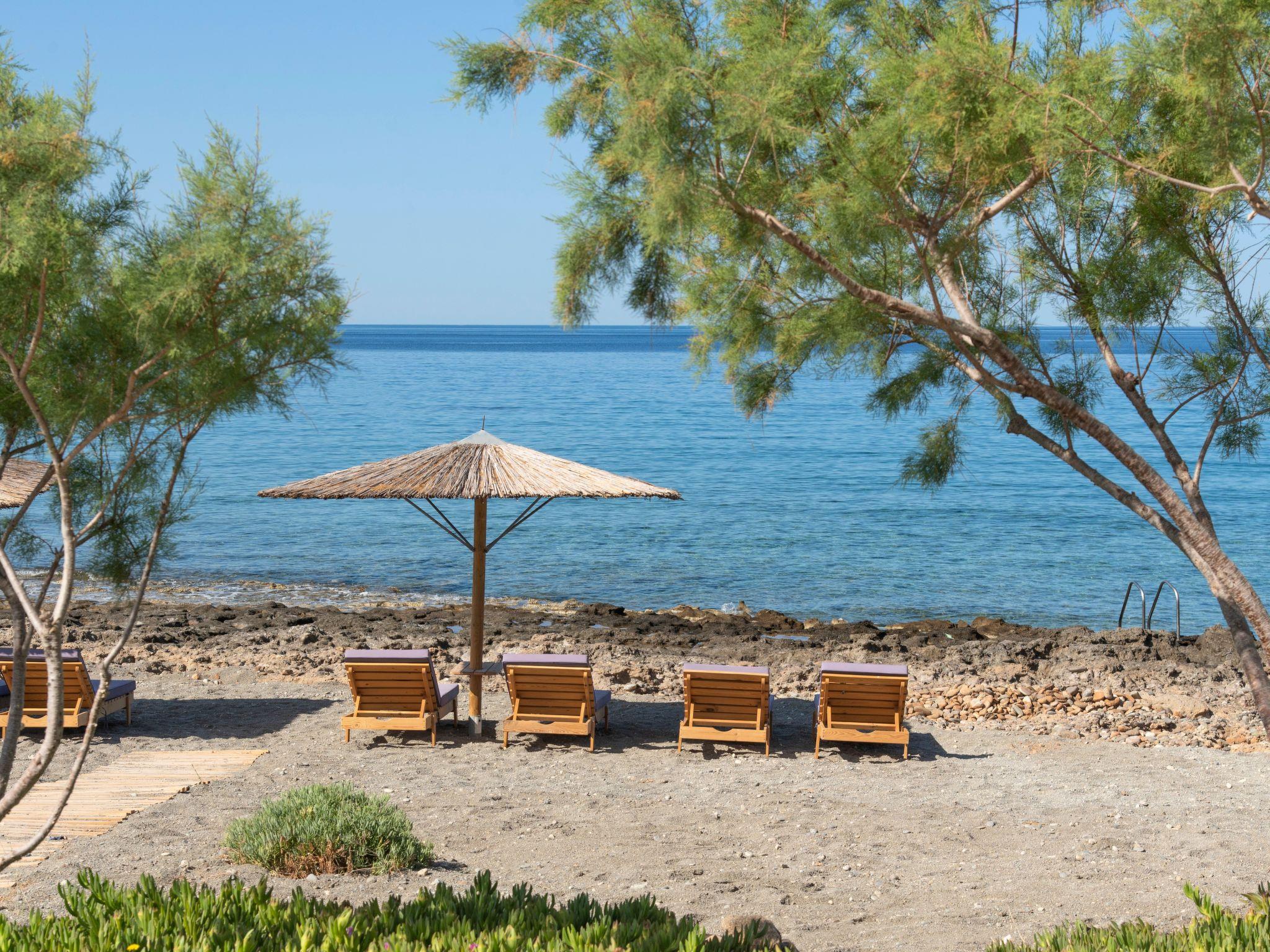Das Anwesen blickt auf das kristallklare, blaue Wasser des Mittelmeers - ein wunderschöner felsiger Horizont, ideal zum Schwimmen, Sonnenbaden, Surfen und anderen Wassersportarten. Es befindet sich in Koutsourás, einem ruhigen, landwirtschaftlichen Dorf im Südosten Kretas. Es liegt weniger als 2 km westlich von der Touristenstadt Makry Gialos, 23 km östlich von Ierapetra und 33 km von Sitia entfernt.