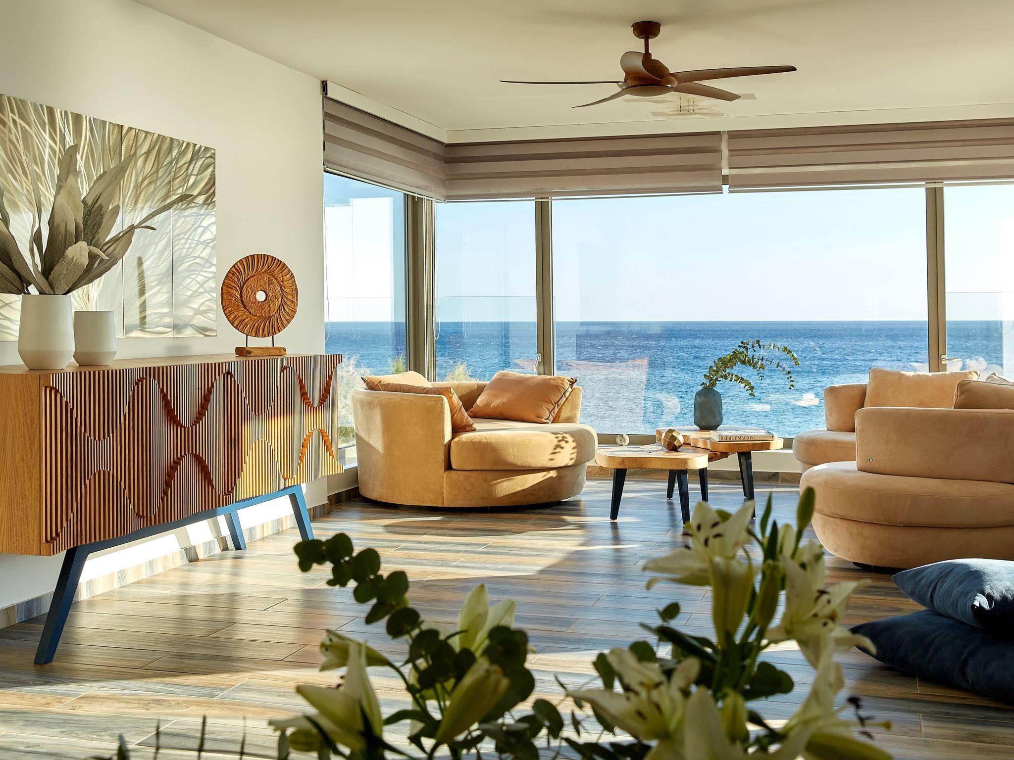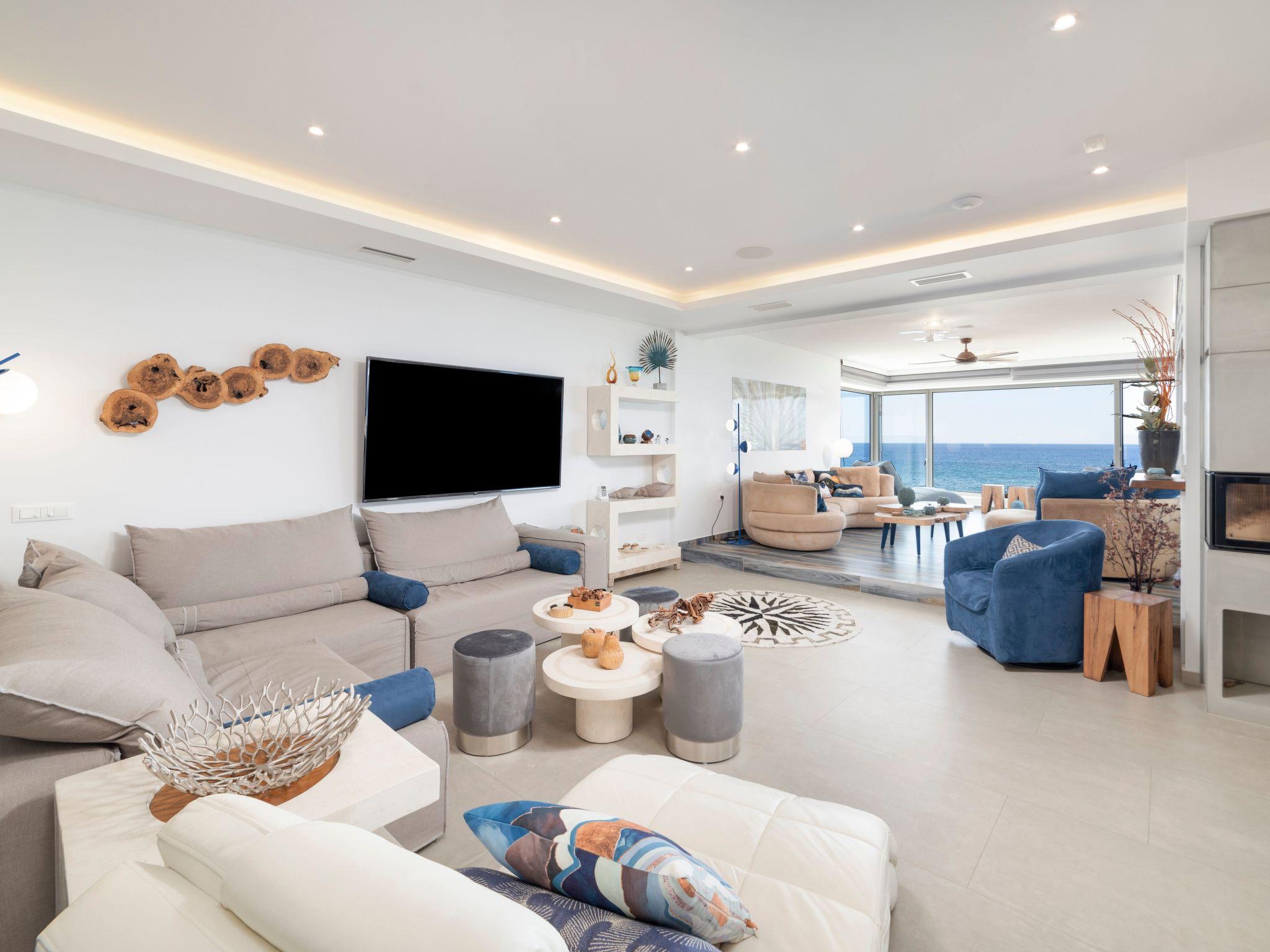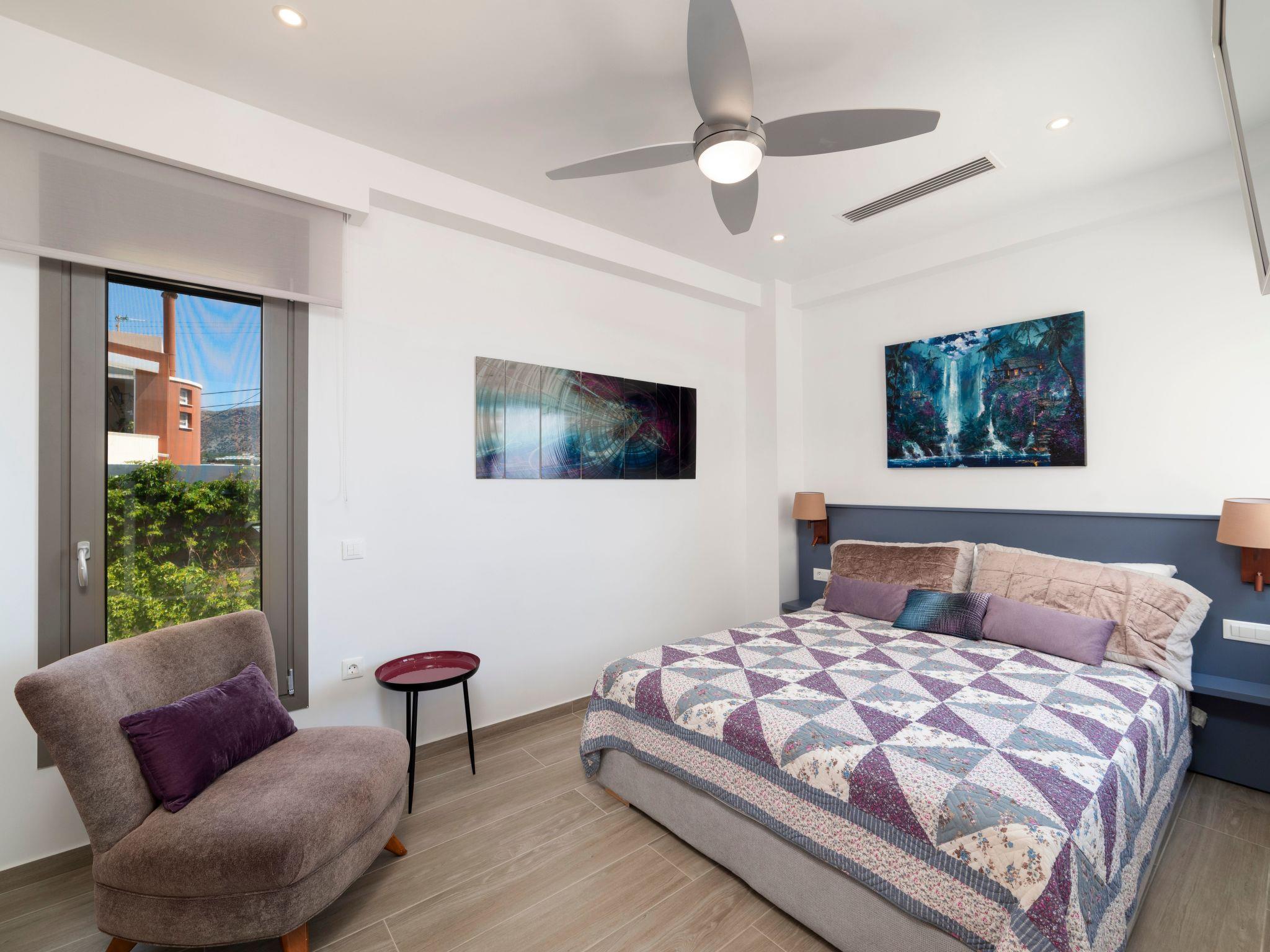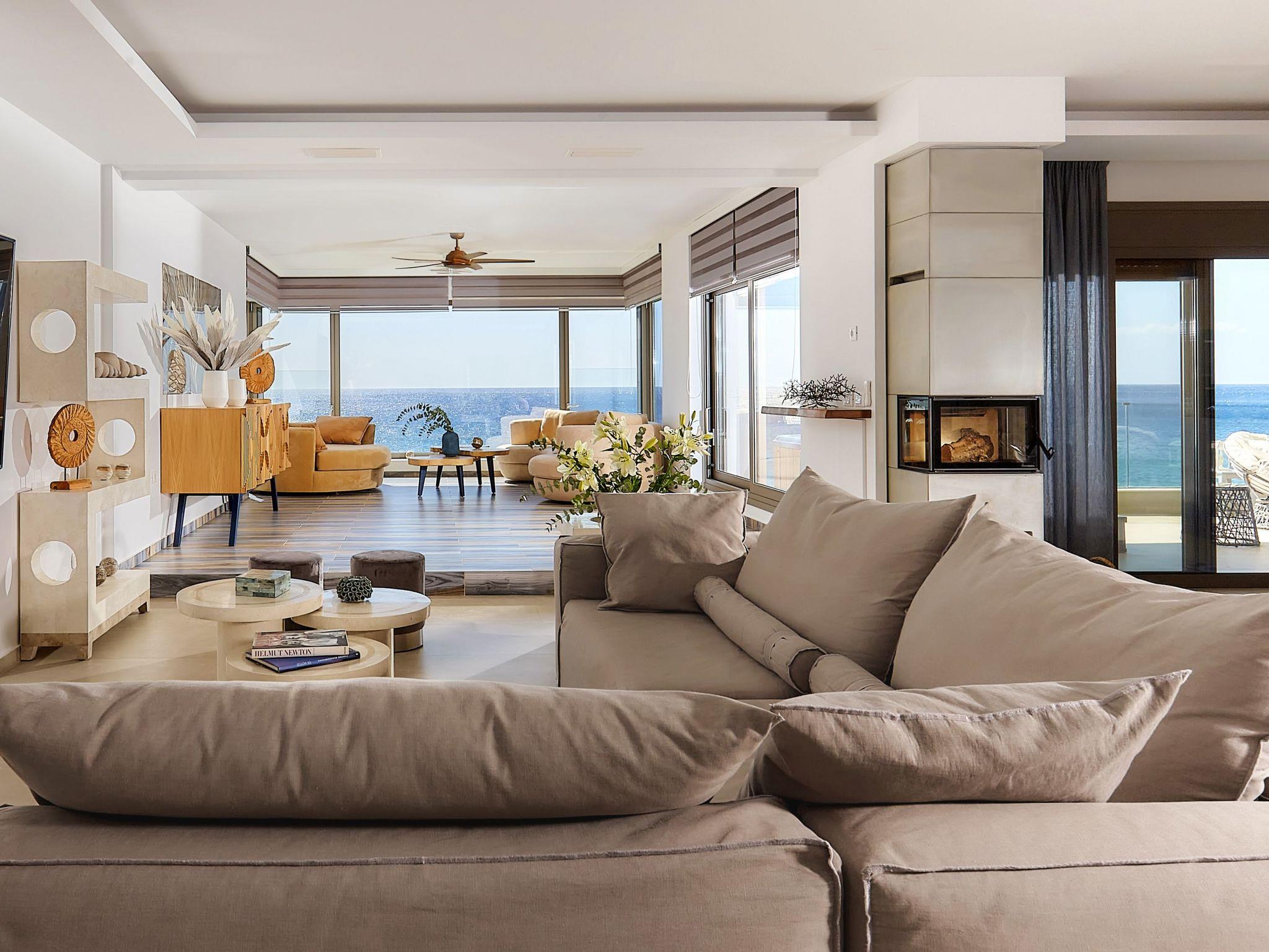 Das Penthouse in der obersten Etage der neu erbauten (2019) Designer-Villa Moonlight am Wasser – Eleganz und Abgeschiedenheit. In einem ruhigen, landwirtschaftlich geprägten Dorf im Südosten Kretas bietet dieses Penthouse mit 5 Schlafzimmern und 5 Bädern abgeschiedene Ruhe, als ob der Rest der Welt nicht mehr existierte. Atemberaubender Panoramablick auf das Meer, den Mond auf dem Wasser und den Sonnenuntergang. Genießen Sie ein privates Hot-Spa auf dem Balkon, einen Grill, Spiele, Fahrräder und einen Radweg. Weniger als 5 Gehminuten vom Kiesstrand mit Bars und Restaurants entfernt. Für den Zugriff auf die Umfrage wenden Sie sich bitte an den Eigentümer. Diese exklusive Designervilla überblickt das kristallklare, blaue Wasser des Mittelmeers – ein wunderschöner Felshorizont, ideal zum Schwimmen, Sonnenbaden, Surfen und für andere Wassersportarten. Es liegt in Koutsourás, einem ruhigen, landwirtschaftlich geprägten Dorf im Südosten Kretas. Es liegt weniger als 2 km westlich der Touristenstadt Makry Gialos, 23 km östlich von Ierapetra und 33 km von Sitia entfernt. Die luxuriöse Unterkunft bietet einen spektakulären Blick auf die Landschaft Südkretas, den Mond und den Sonnenuntergang. Die Villa liegt nur wenige Gehminuten von einem örtlichen Kiesstrand, Bäckereien und Cafés, Konditoreien, Supermärkten, Bars, Restaurants und einer Apotheke entfernt und verbindet romantische Abgeschiedenheit mit der Nähe zu modernem Komfort.