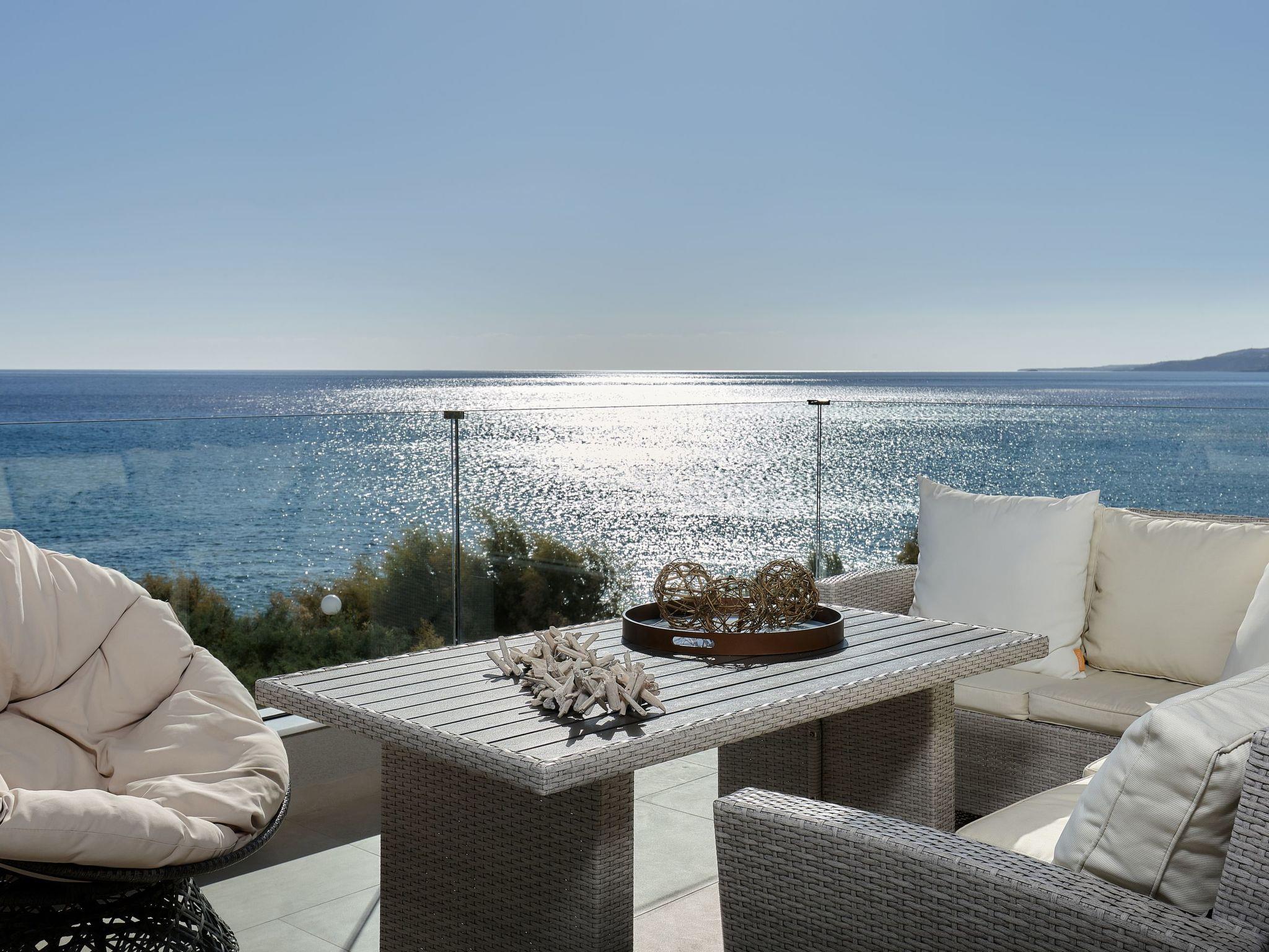 Der Außenbereich bietet einen Panoramablick auf das Meer, der sich in die lokale Landschaft einfügt, sowie viele einzigartige architektonische und umweltfreundliche Merkmale im gesamten Gebäude. Der Außenbereich bietet: - Privater Grill im Freien - Whirlpool - Sonnenliegen, Tische und Liegestühle - Kiesstrand (mit Bars und Restaurants) innerhalb von 5 Gehminuten von der Villa entfernt - Parkplatz auf dem nahegelegenen Grundstück - Gut gestaltete, entspannende Nachtbeleuchtung.