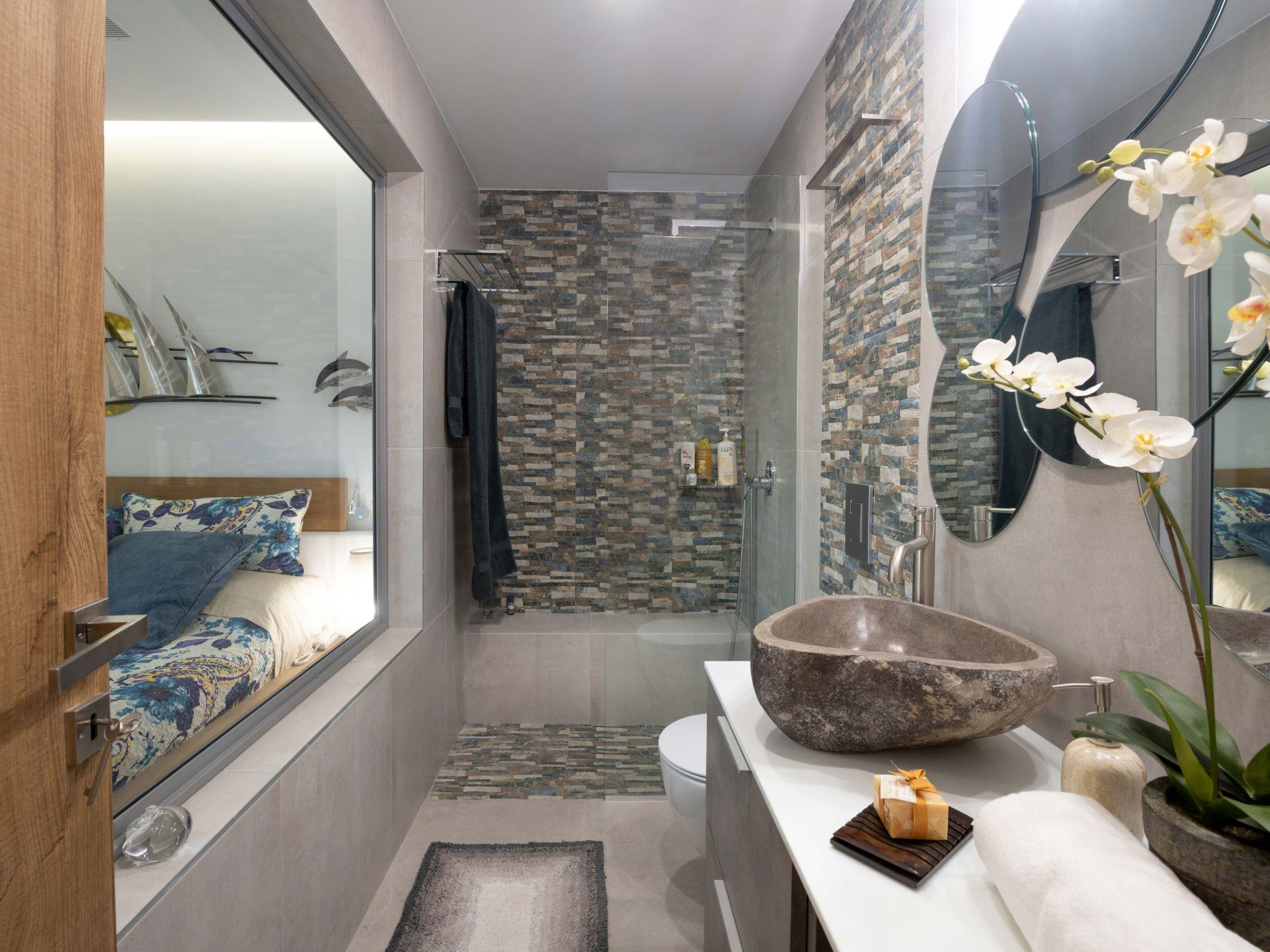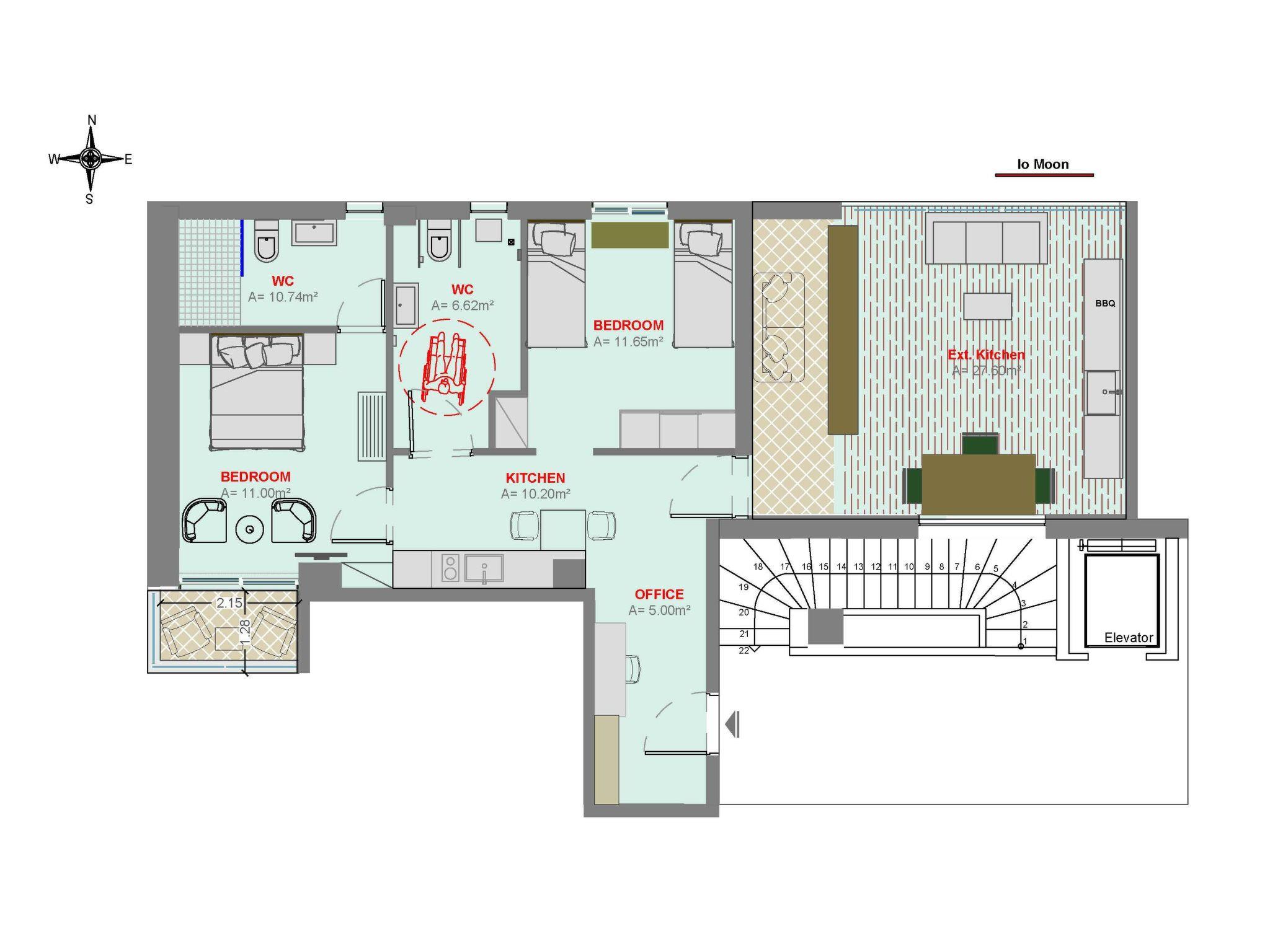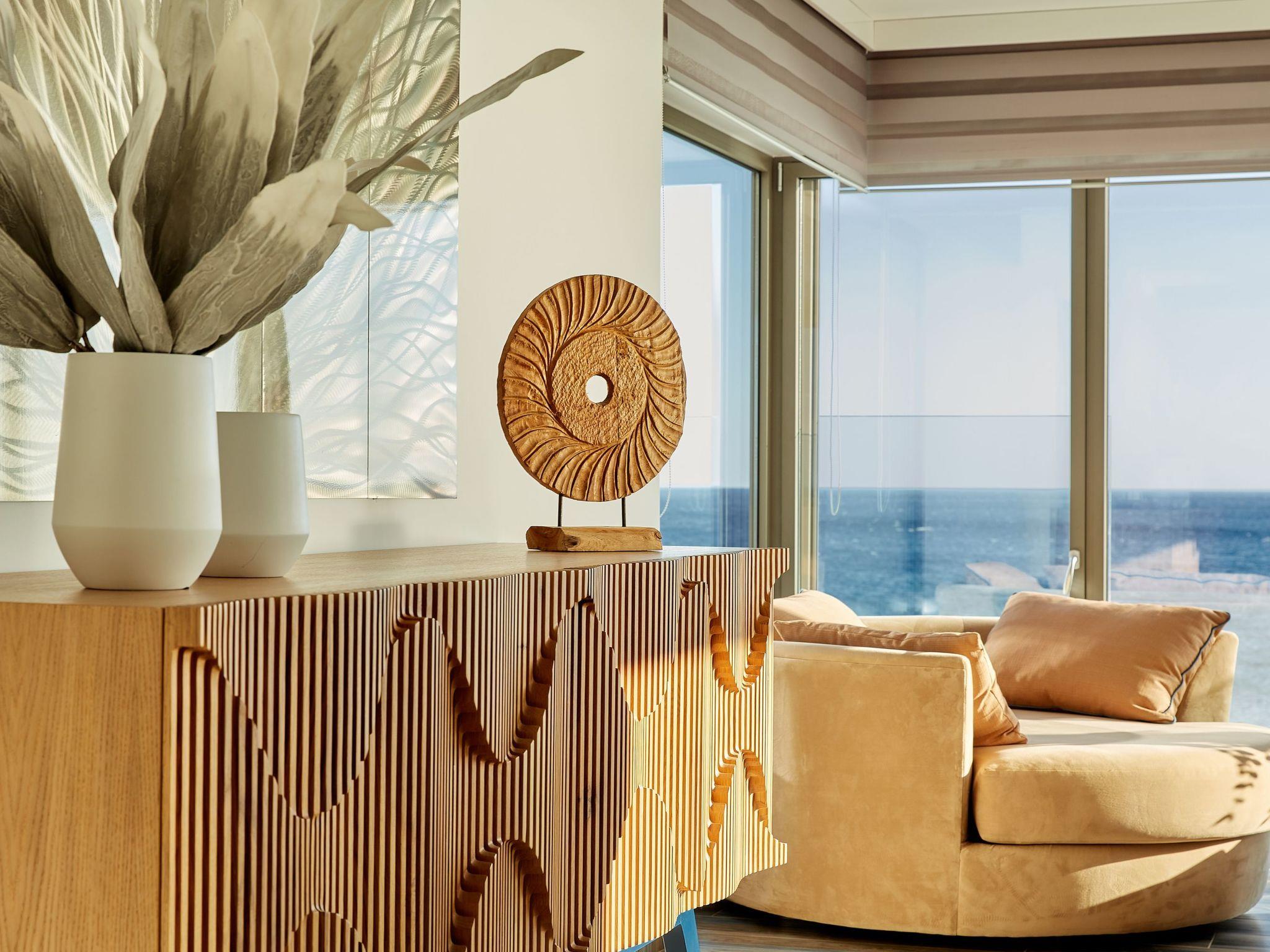 Dieses luxuriöse Penthouse mit 5 Schlafzimmern und 5 Badezimmern befindet sich in der obersten Etage der luxuriösen Moonlight Villa direkt am Meer und ist für den Elitereisenden mit dem Wunsch nach außergewöhnlichem Stil und Komfort konzipiert. Das Penthouse verfügt über einen eigenen Whirlpool, einen Grill und Liegestühle. Atemberaubende Panoramablicke können Sommer wie Winter genossen werden. Wenn das Meer ruhig ist, werden Sie von Gelassenheit und Ruhe überwältigt. Wenn das Meer rau ist, haben Sie das Gefühl, ein Boot zu steuern, selbstbewusst und einsatzbereit. Das Penthouse besteht aus 3 privaten Flügeln. Zwei der Flügel verfügen über 2 Schlafzimmer und 2 Badezimmer: ein Hauptschlafzimmer (1,80 m Bett) mit eigenem Bad und ein zweites Schlafzimmer für Kinder (ein Schlafzimmer hat zwei Einzelbetten, das andere Schlafzimmer hat 4 Etagenbetten). Der dritte Flügel besteht aus einem Schlafzimmer mit Kingsize-Bett und eigenem Bad. Somit ist das Penthouse ideal für 3 Familien oder 4 Paare.