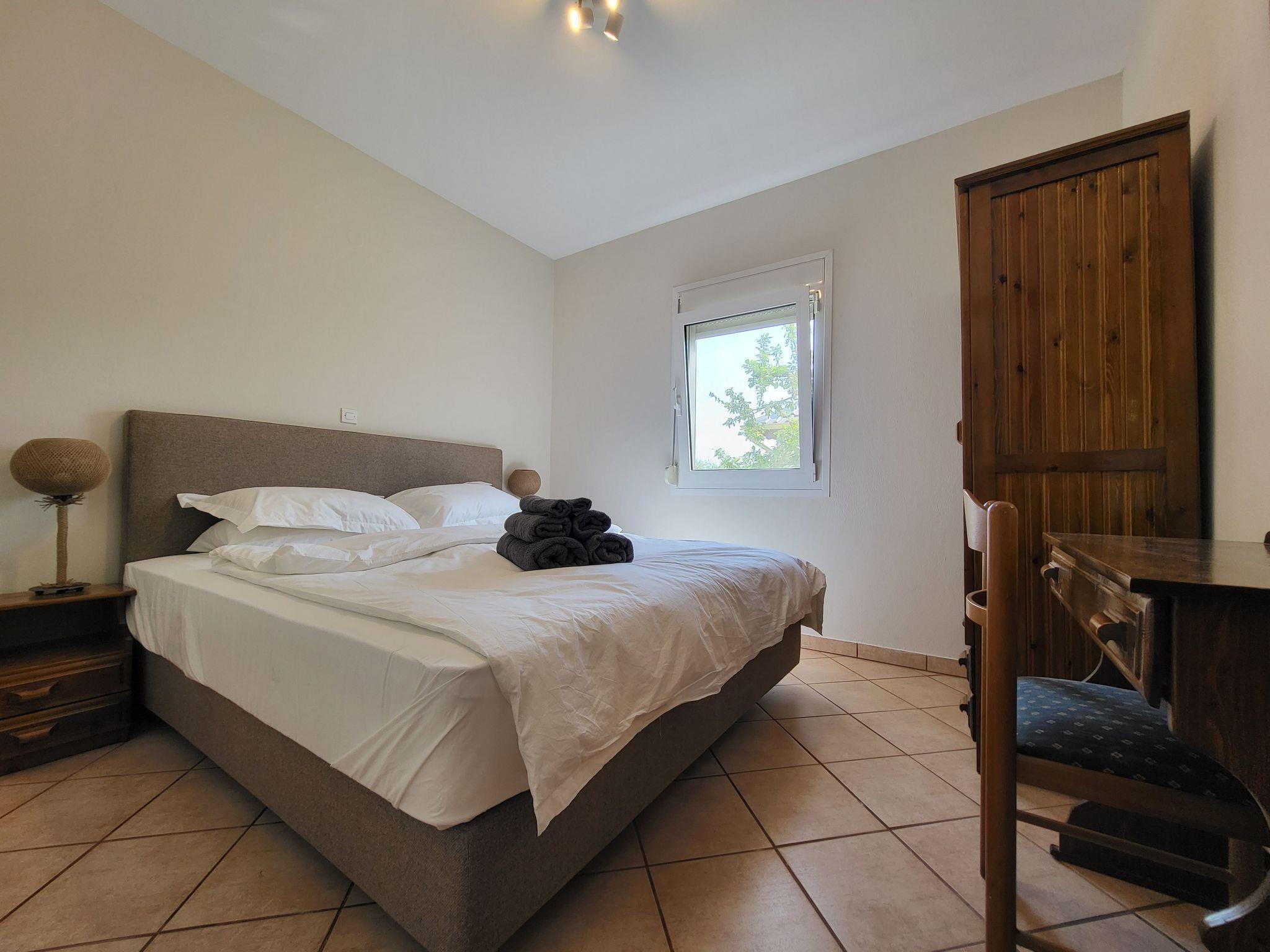 Ruhig und idyllisch gelegen, bietet Ihnen das Ferienhaus ein ideales Urlaubsdomizil. Neben zwei Schlafzimmern und einem Bad, erwartet Sie im Wohnzimmer eine voll ausgestattete Kitchenette, sowie eine Schlafcouch.Das Haus ist frisch gestrichen und verfügt über Klimaanlage, Sat.-Fernseher (u. a. eine Auswahl deutscher Programme) sowie WLAN. Die große Terrasse eignet sich wunderbar für erholsame Stunden auf Ihrer Sonnenliege oder für romantische Abende bei griechischem Wein.Ihr Ferienhaus auf Thassos erwartet Sie eingebettet in einen grünen Olivenhain, abseits vom Stress und Lärm des Alltags. Das imposante Bergpanorama strahlt eine intensive Ruhe aus, die Sie sofort entspannen lässt. Intensive Farben von grün und blau erstrahlen schon in der Morgensonne und am Himmel ist nur selten ein Wölkchen zu sehen. Auch außerhalb der Hochsaison hat die Insel ihren besonderen Reiz. Im Frühjahr laden grüne Blumenwiesen, im Herbst das goldene Licht des Oktobers zum Erholen ein. Im Sommer spenden die eigenen Weinreben Schatten auf der gemütlichen Terrasse.Sollten Sie mit dem eigenen PKW oder einem Mietwagen anreisen, können Sie direkt an Ihrem Ferienhaus auf Thassos parken. Unser 10 ha großes Grundstück bietet ausreichend Platz, so dass Sie Ihr Fahrzeug problemlos abstellen können. Falls Sie Hilfe bei der Anreiseplanung benötigen, helfen wir Ihnen gern weiter.Die beiden Häuser sind identisch ausgestattet und eignen sich jeweils für bis zu 4 Personen. Jedes Haus verfügt über 2 offenene Terrassen mit vorgelagertem Garten Es gibt zwei Schlafzimmer (1 Doppelbett, 2 Einzelbetten), ein Bad mit Dusche und ein Wohn- Esszimmer. Ihre Terrasse ist der ideale Ort, um einen entspannten Tag auf der Insel ausklingen zu lassen. Nutzen Sie frische Kräuter und Oregano, das Sie auf Spaziergängen in der Umgebung selbst gesammelt haben und bereiten Sie sich mit regionalen Zutaten ein köstliches Abendessen in Ihrer voll ausgestatteten Küchenzeile zu. Sollten Sie lieber auswärts essen wollen, erreichen Sie von Ihrem Ferienhaus auf Thassos auch viele urige Tavernen bequem zu Fuß. Ein Supermarkt befindet sich in unmittelbarer Umgebung. Es ist außerdem ein idealer Ausgangspunkt für Wanderungen in die Wälder und Berge sowie in benachbarte Bergdörfer. Der wunderschöne etwa drei Kilometer lange Sandstrand Golden Beach ist mit einem kleinen Fußweg schnell zu erreichen und eignet sich wunderbar auch für Kinder.Deutsch, Englisch und Griechisch sprechende Ansprechpartner stehen Ihnen vor Ort zur Verfügung.Kurzbeschreibung 1Anzahl Küchen : 1Wohnzimmer 1Sonstige Wohnzimmerausstattung : Fernseher, vollausgestattete Küche, KlimaanlageSchlafzimmer 1Sonstige Schlafzimmereinrichtung : Kinderbett auf AnfrageKüche 1Sonstige Kücheneinrichtung : Waschmaschine, zusätzliche elektrische HerdpalttenUmgebungLeihmöglichkeiten : Autovermietung, Bootsverleih, FahrradverleihSportmöglichkeiten in der Umgebung : Angeln, Bergsteigen, Kanu, Radtouren, WasserskiGarten und AussenanlagenFreizeiteinrichtungen am Objekt : Außenpool gemeinschaftliche Nutzung, SwimmingpoolGartenausstattung : Gartenmöbel vorhanden, GrillServiceleistungenServiceleistungen (ggfs. kostenpflichtig) : Transferservice (Flughafen etc.)