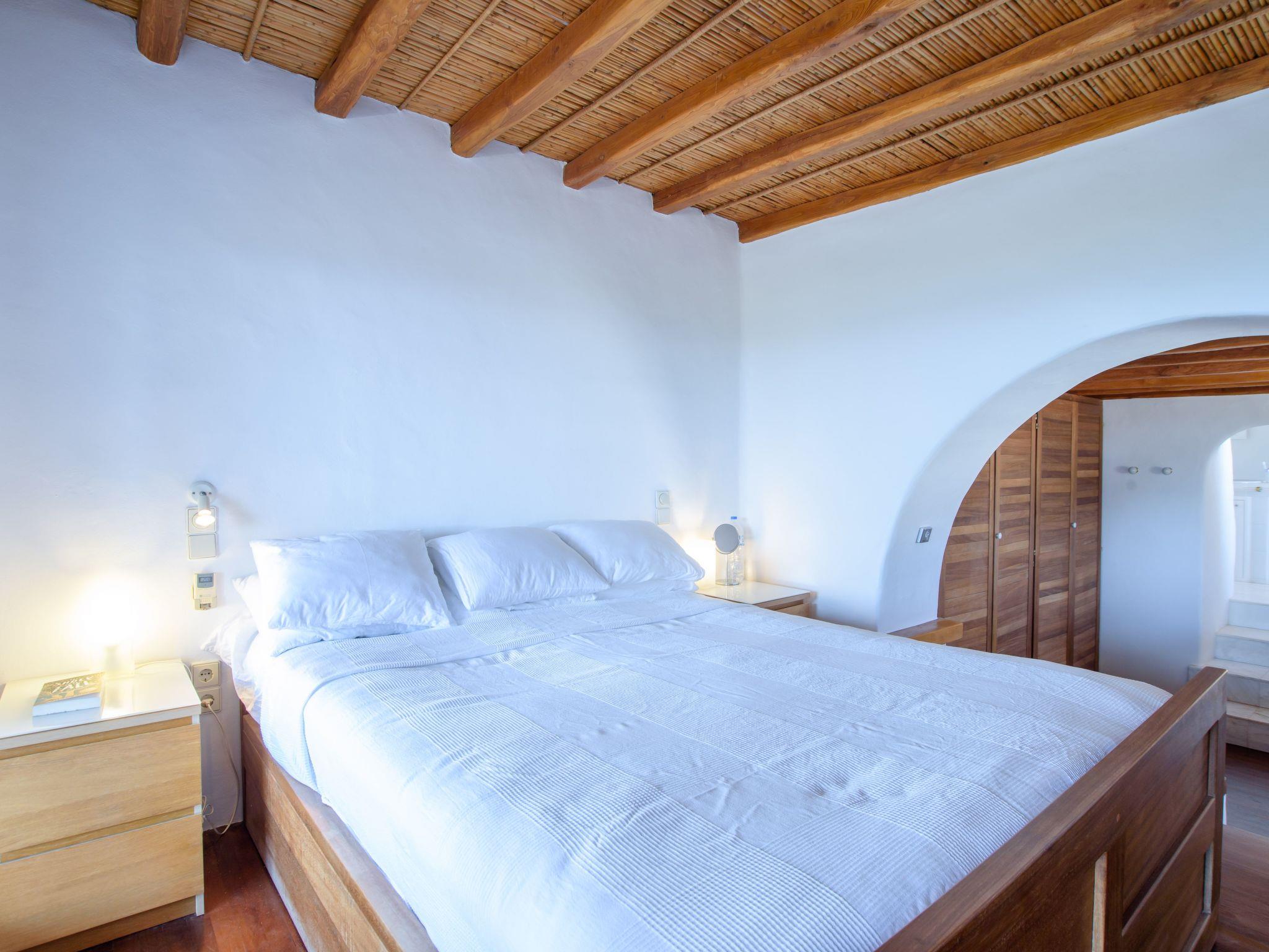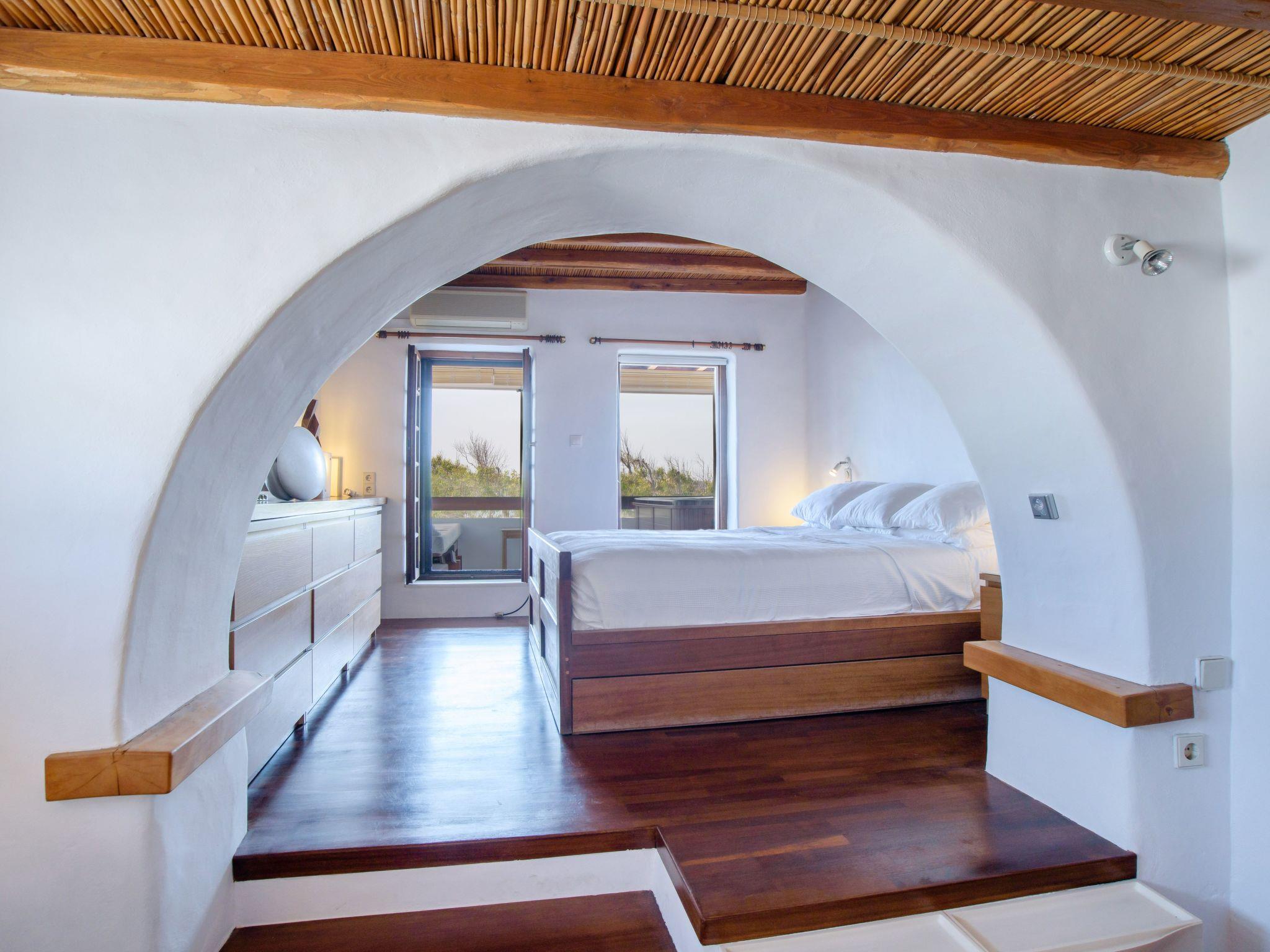 Die Hauptvilla verfügt über ein Hauptschlafzimmer im ersten Stock mit einer herrlichen Terrasse mit Blick auf das Meer und zwei weitere Schlafzimmer mit Blick auf das Meer und den Garten. Sie können auf Wunsch entweder mit zwei Einzelbetten oder einem Standard-Doppelbett ausgestattet werden.