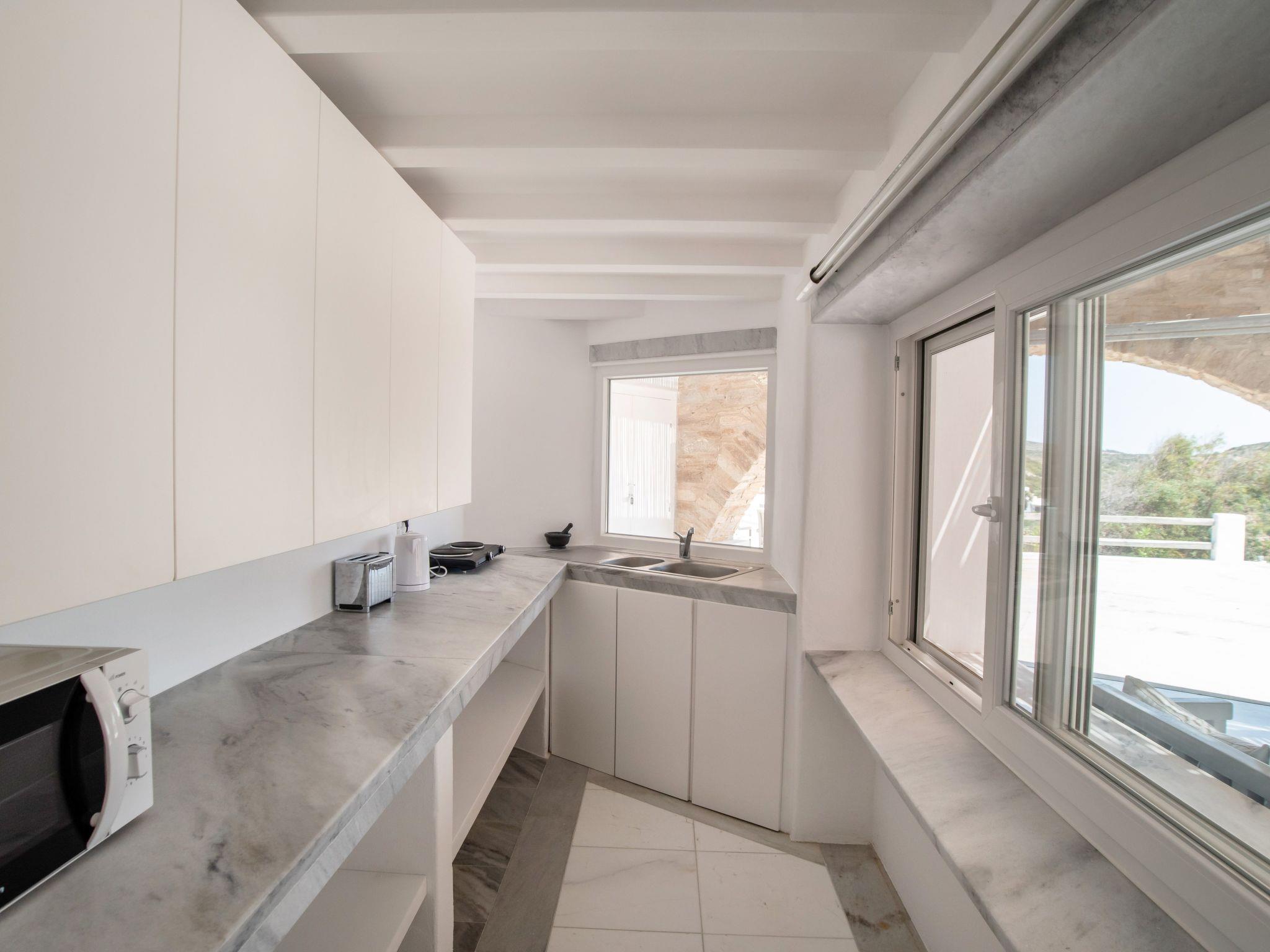 Das Haus besteht aus der Hauptvilla und dem Atelier, das früher das Atelier des Künstlers war und jetzt in ein helles, modernes, unabhängiges Apartment umgewandelt worden ist. Die Villa und das Atelier werden zusammen vermietet. Die zeitlose Kombination aus Marmor, Stein und honigfarbenem Holz schafft einen eleganten, aber dennoch gemütlichen Raum. Alles ist handgefertigt und wurde vom Künstler nach seinen eigenen hohen Maßstäben akribisch perfektioniert.