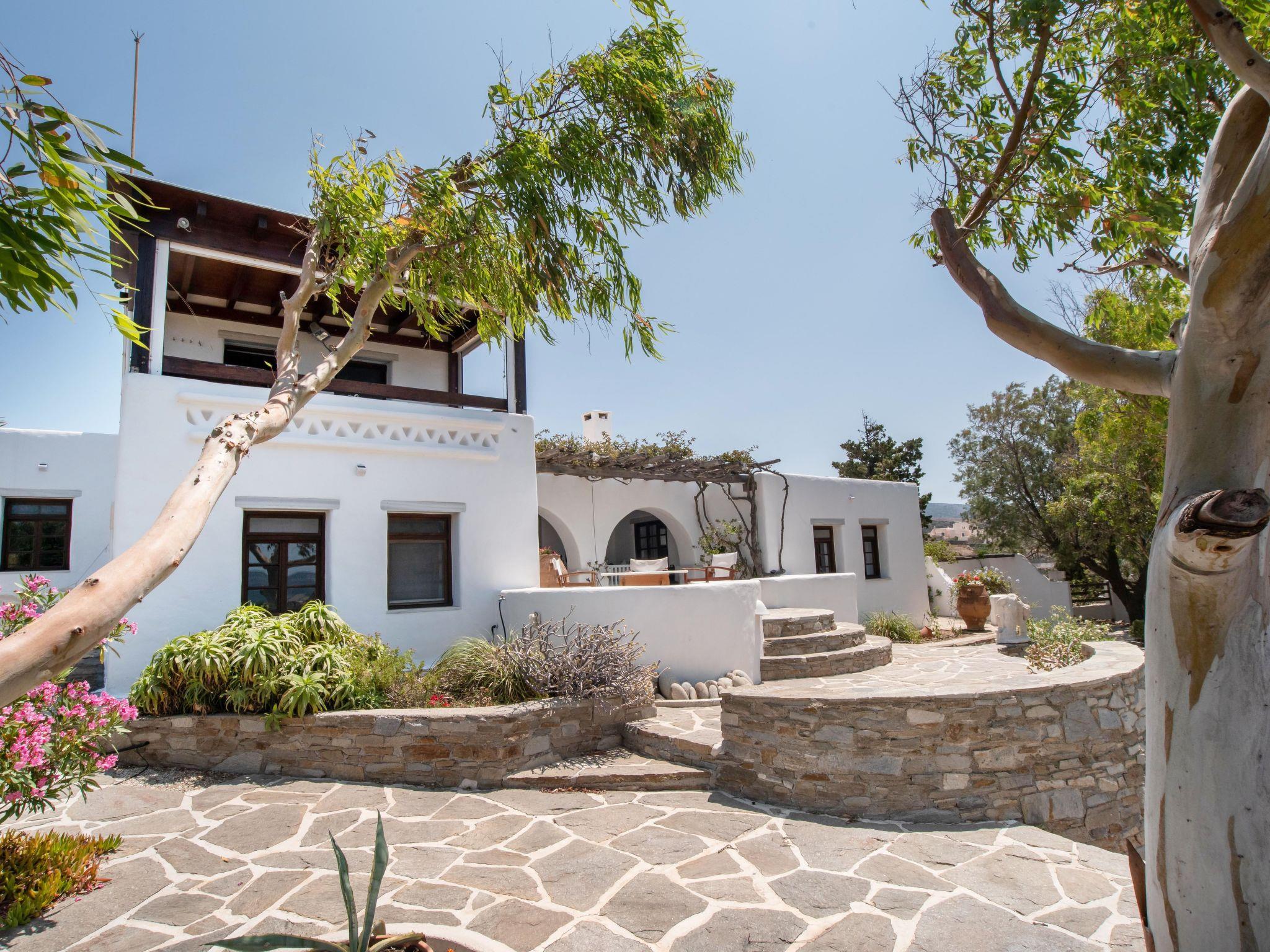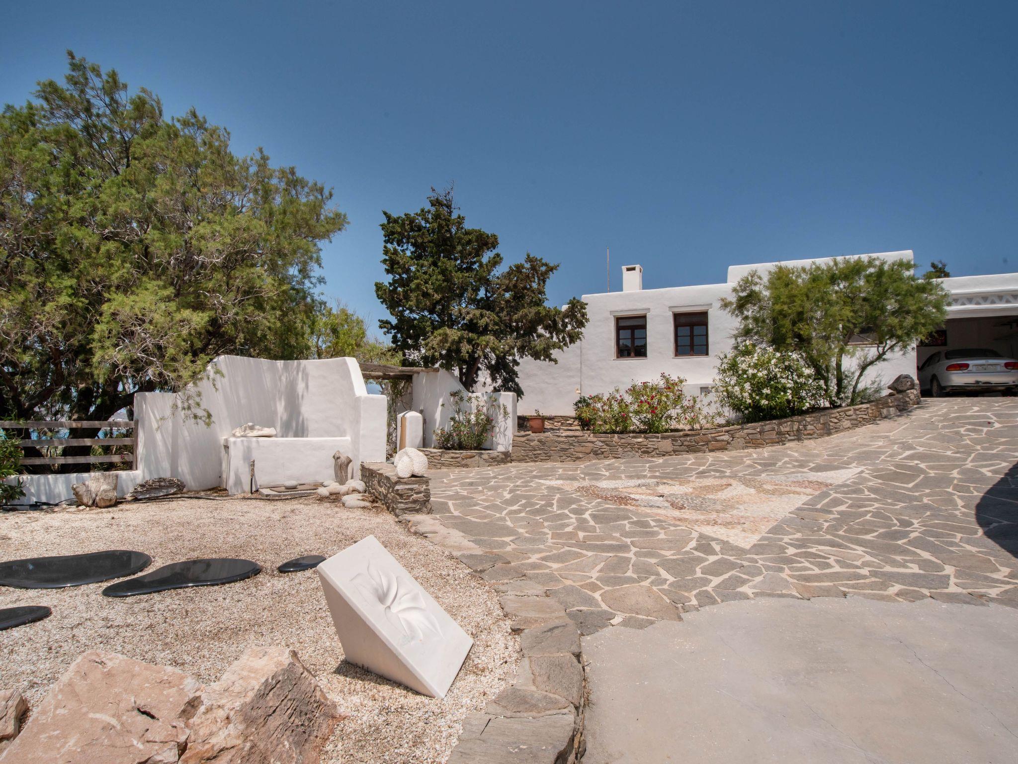 Die Sculptor's Villa & Studio liegt auf einer Hügelkuppe mit Panoramablick auf das Meer und die wunderschöne Nachbarinsel Antiparos. Umgeben von einem Hektar mediterraner Gärten bietet das Anwesen unverfälschte Privatsphäre. Die Villa ist nur acht Autominuten von Parikia, dem Hauptort und Hafen von Paros, entfernt und liegt nur 5 Autominuten vom Flughafen der Insel entfernt.