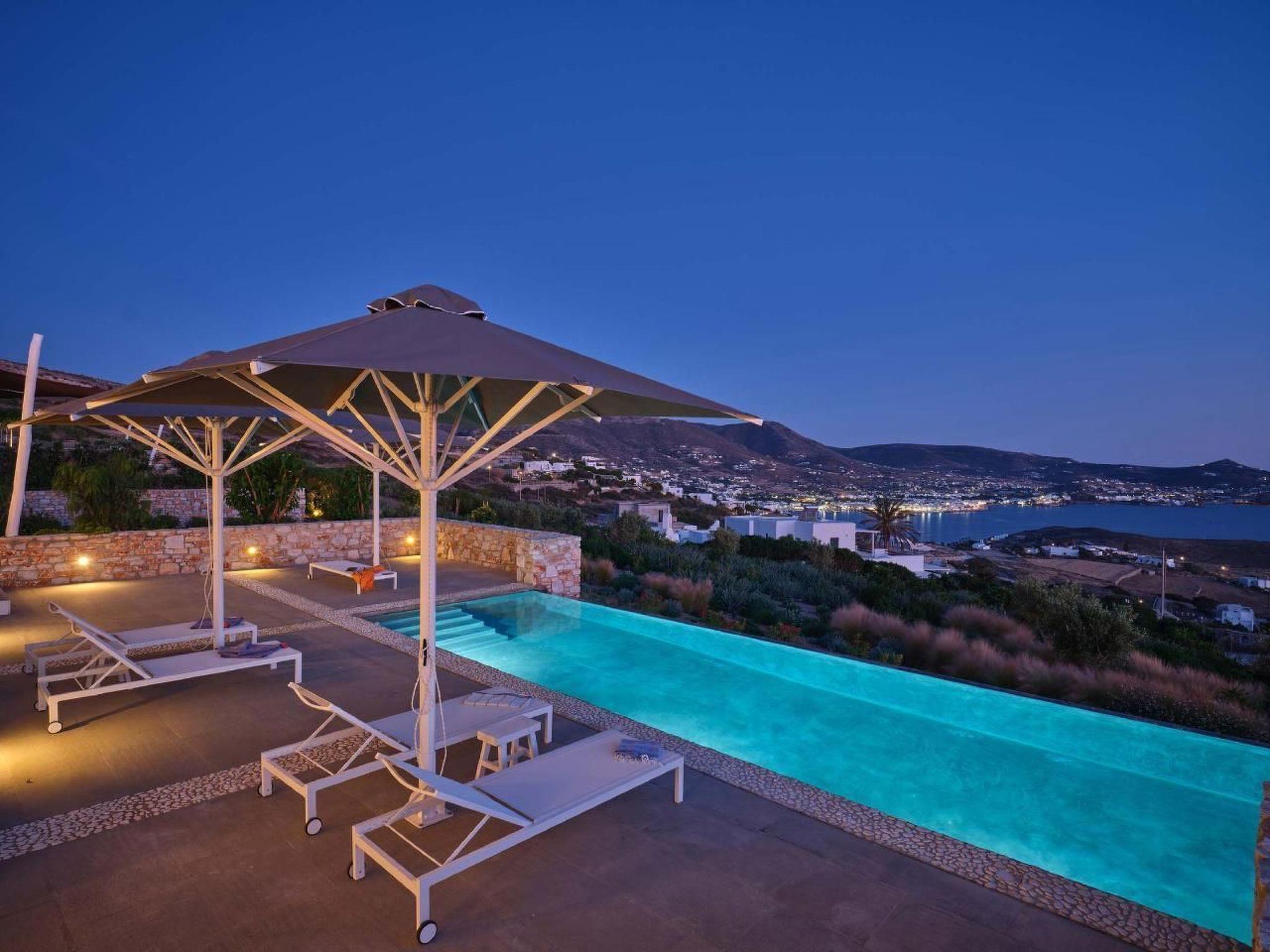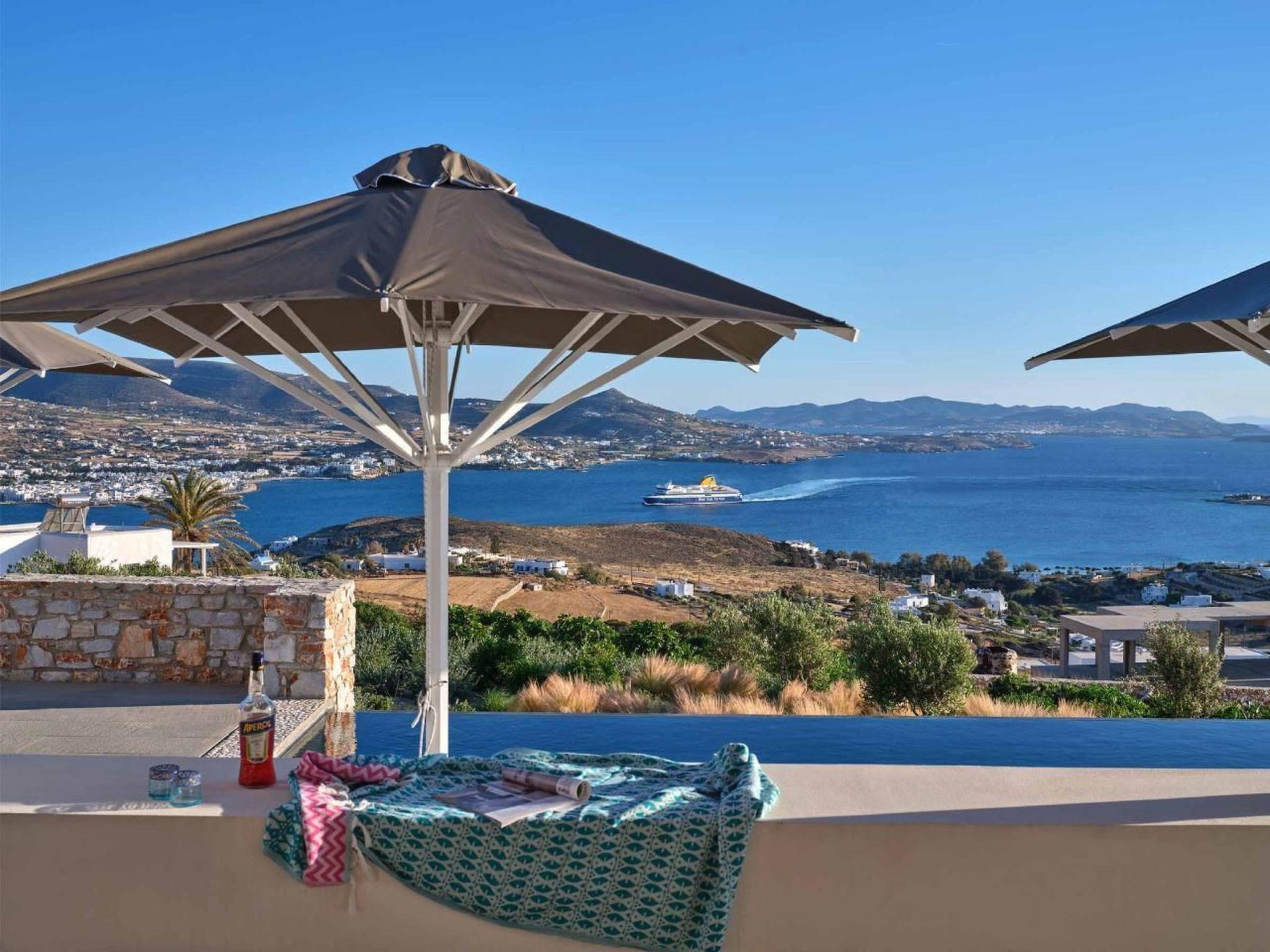 Diese beeindruckende Unterkunft verschafft Ihnen einen atemberaubenden Panoramablick über die Bucht von Parikia bis hin zum endlosen Blau der Ägäis – ein wahrhaft beruhigender Anblick, für Geis und Seele.