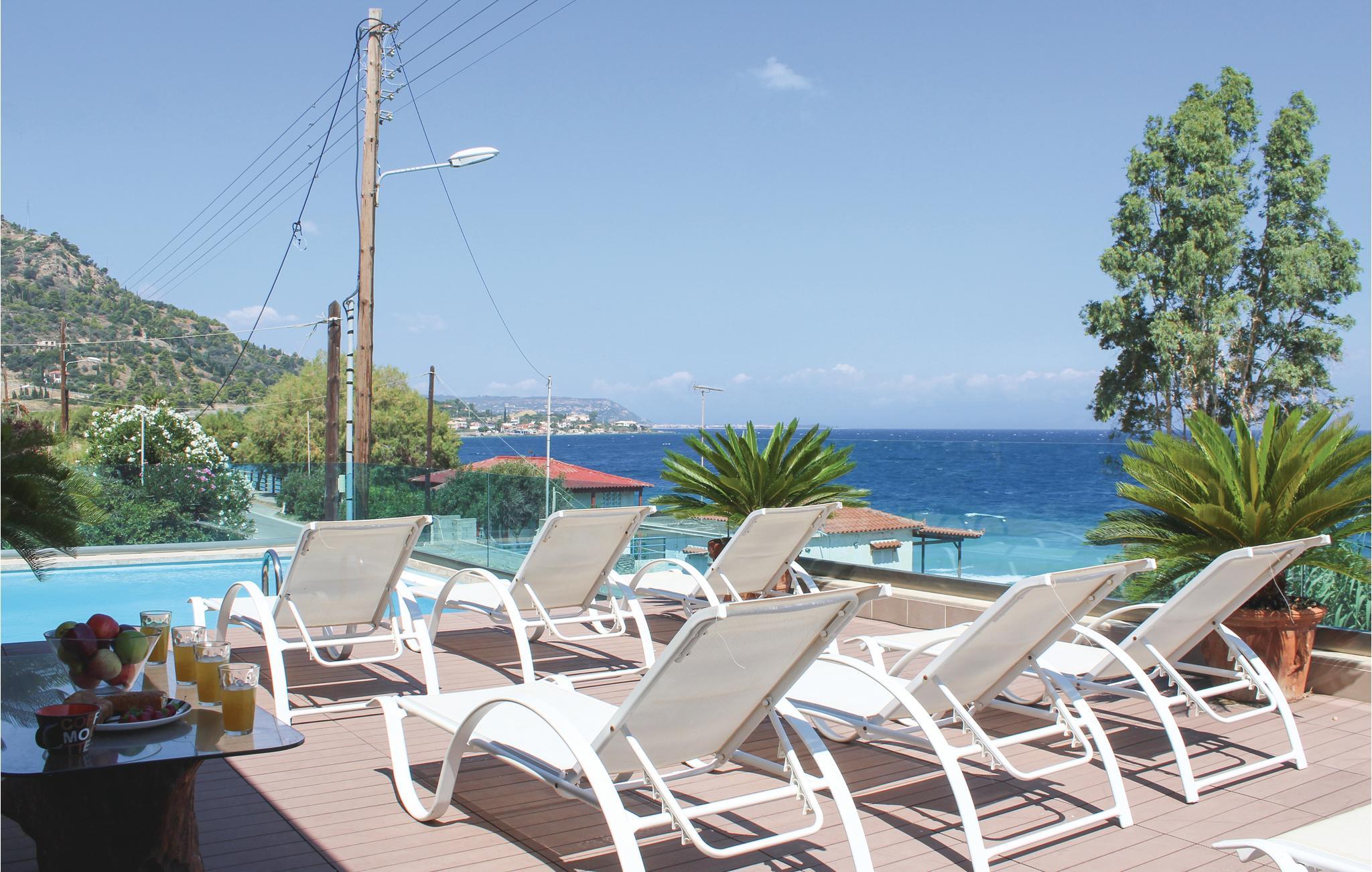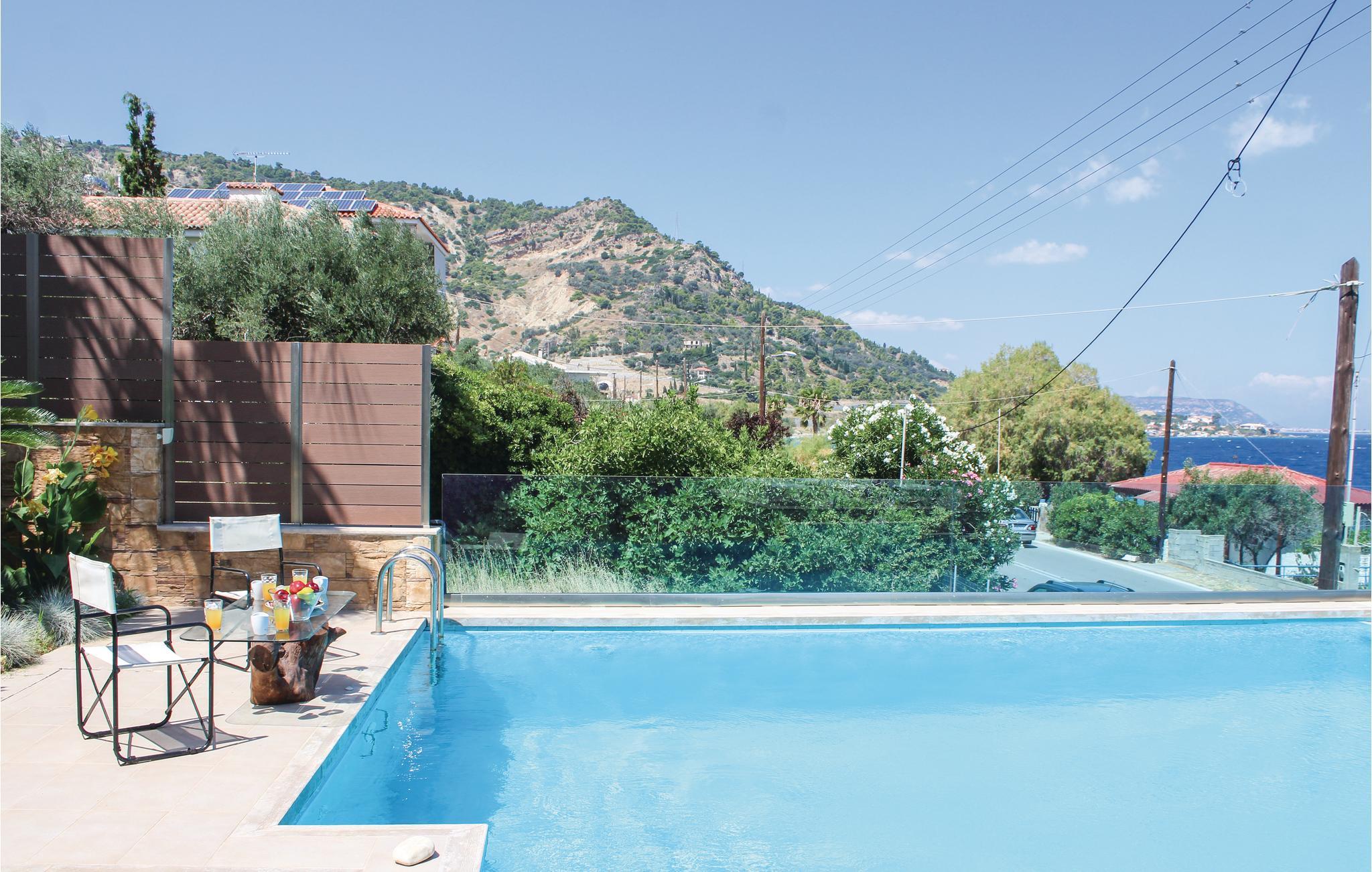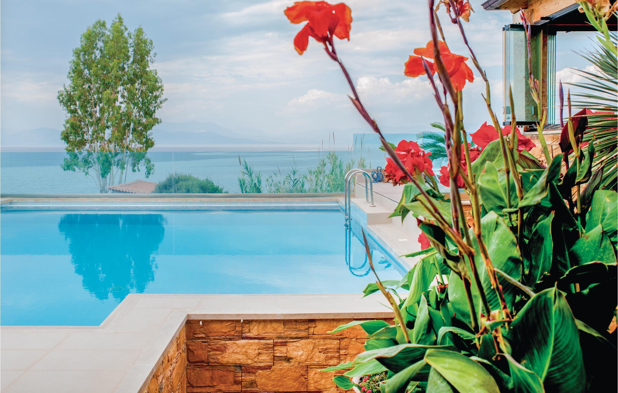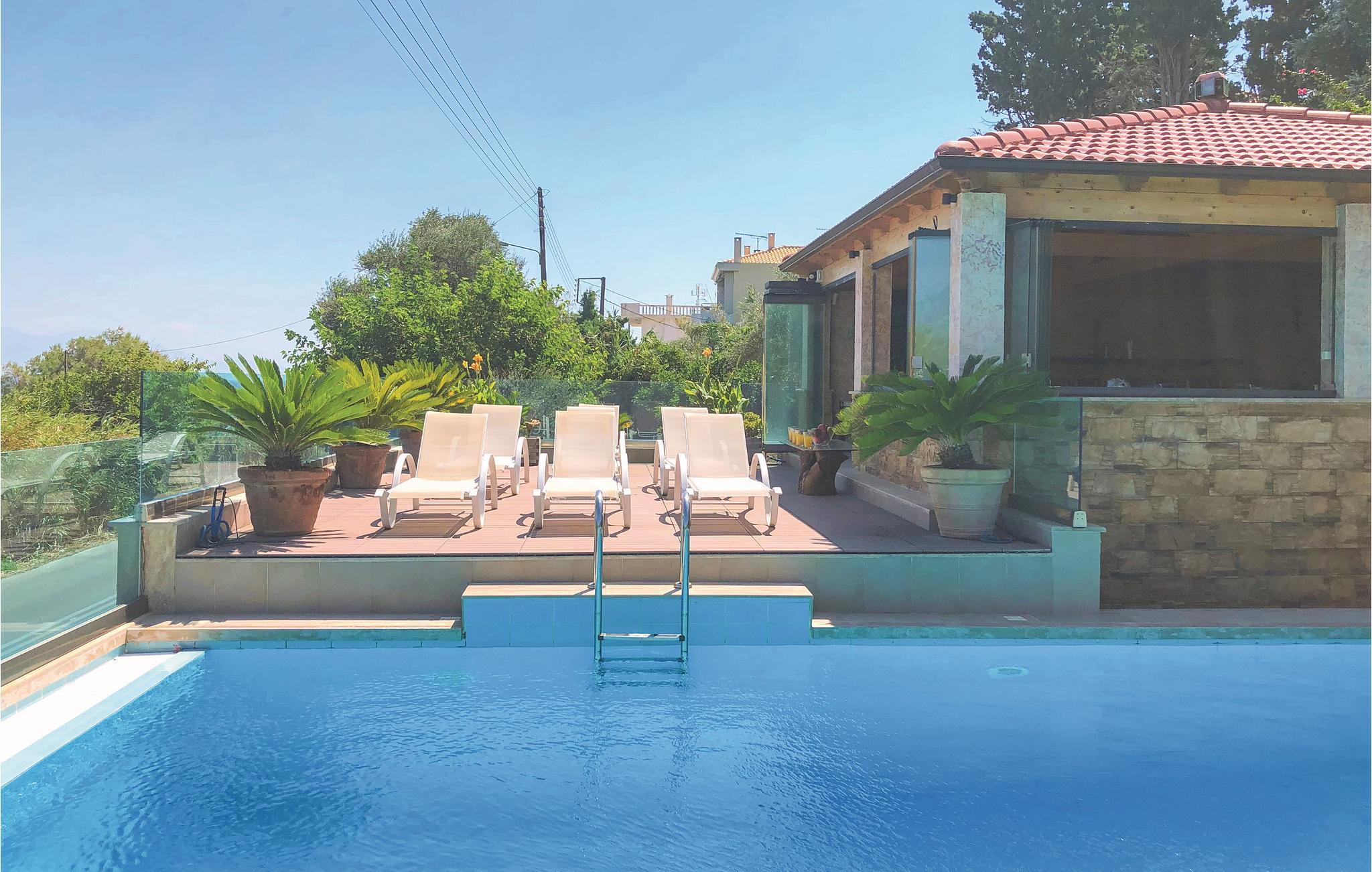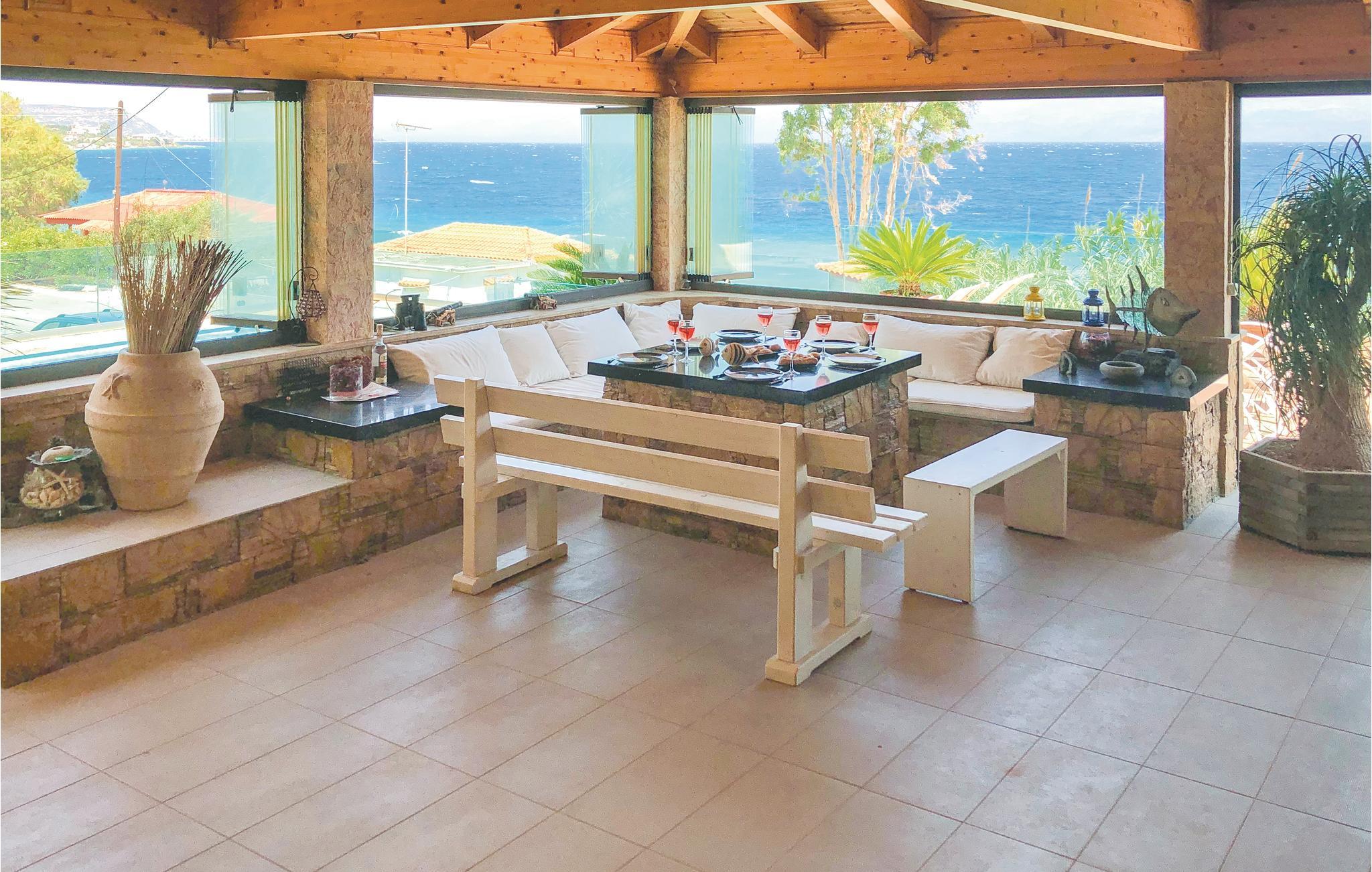 Das luxuriöse Ferienhaus liegt an der Küste in Petalou im Golf von Korinth, weniger als 140 km von Athen. Das Ferienhaus ist sorgfältig eingerichtet, mit einer Mischung aus modernen und klassischen Stilelementen, und bietet alle Annehmlichkeiten für einen unvergesslichen Urlaub in Griechenland. Das Haus bietet Ihnen 4 Schlafzimmer, von denen jedes ein eigenes Bad hat, zwei voll ausgestattete Küchen und zwei Wohnzimmer. Draußen erwartet Sie ein wunderschönes überdachtes Atrium mit Bar neben dem Pool mit Hydromassage, wo Sie gemeinsam essen und den Blick auf das Meer genießen können. Der Garten bezaubert mit Blumen, Palmen und Olivenbäumen, die eine exotische Atmosphäre schaffen. Erkunden Sie die Gegend und die umliegenden Strände und kosten Sie Fisch und lokale Spezialitäten in den zahlreichen Tavernen.