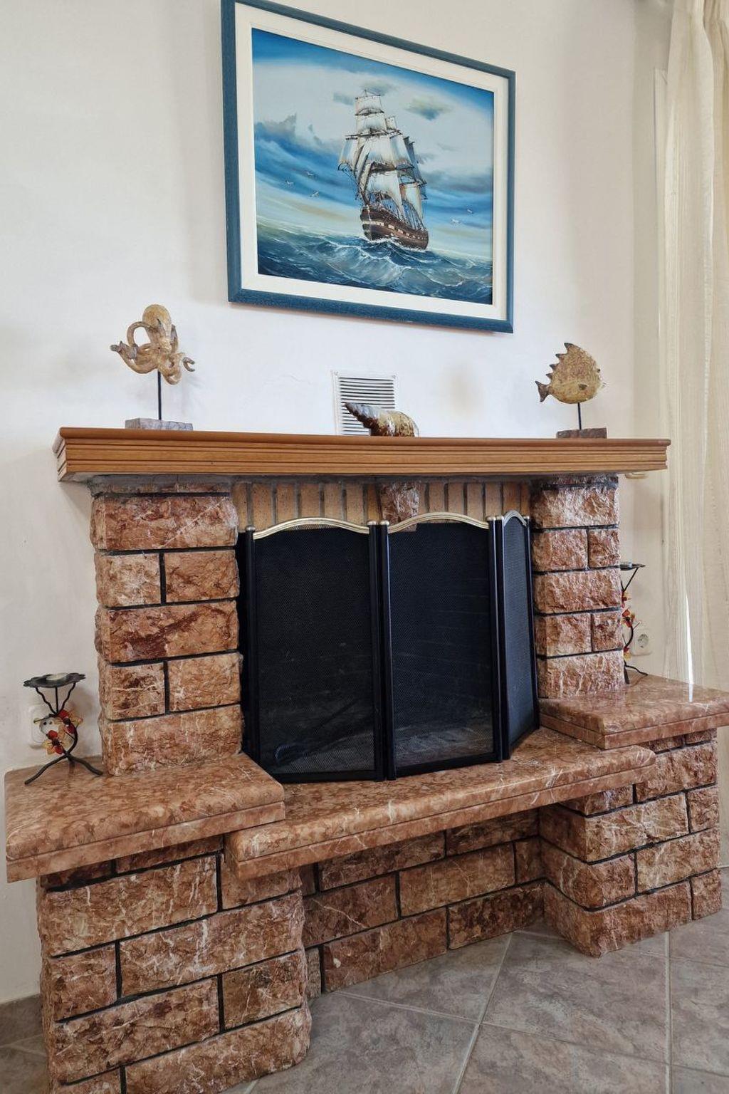 Die luxuriöse Villa verfügt über vier Schlafzimmer und kann bis zu acht Gäste beherbergen. Sie erstreckt sich über drei Ebenen und verfügt über eine Wohnfläche von 140 m². In der ersten Etage befindet sich ein großes Wohnzimmer mit einer kombinierten Küche und einem schönen Kamin. Die Küche ist komplett mit Elektrogeräten ausgestattet, während im selben Raum ein großes Esszimmer untergebracht ist. Die Gäste können am Tisch auf dem Balkon auf dieser Etage speisen, von wo aus man eine herrliche Aussicht hat. Es gibt auch ein Schlafzimmer mit einem kleinen Bad. Zwischen dem ersten und dem zweiten Stock befindet sich ein großes Badezimmer mit Badewanne. Im zweiten Stock gibt es zwei Schlafzimmer, eines mit einem Doppelbett, einem großen Bad und einer Veranda mit fantastischem Meerblick, das zweite mit zwei Einzelbetten. Ein kleines Wohnzimmer ist ebenfalls im großen Schlafzimmer untergebracht. Über der zweiten Etage befindet sich ein großer Dachboden mit einem Schlafzimmer und einem Wohnzimmer im selben Raum. Ein kleines Badezimmer ist ebenfalls vorhanden. Alle Etagen sind mit einer Holztreppe verbunden. Die Villa ist mit Heizung und Klimaanlage ausgestattet und verfügt über 24 Stunden warmes Wasser. Außerdem gibt es drei Fernsehgeräte, Wi-Fi-Internet, CD, Radio usw.