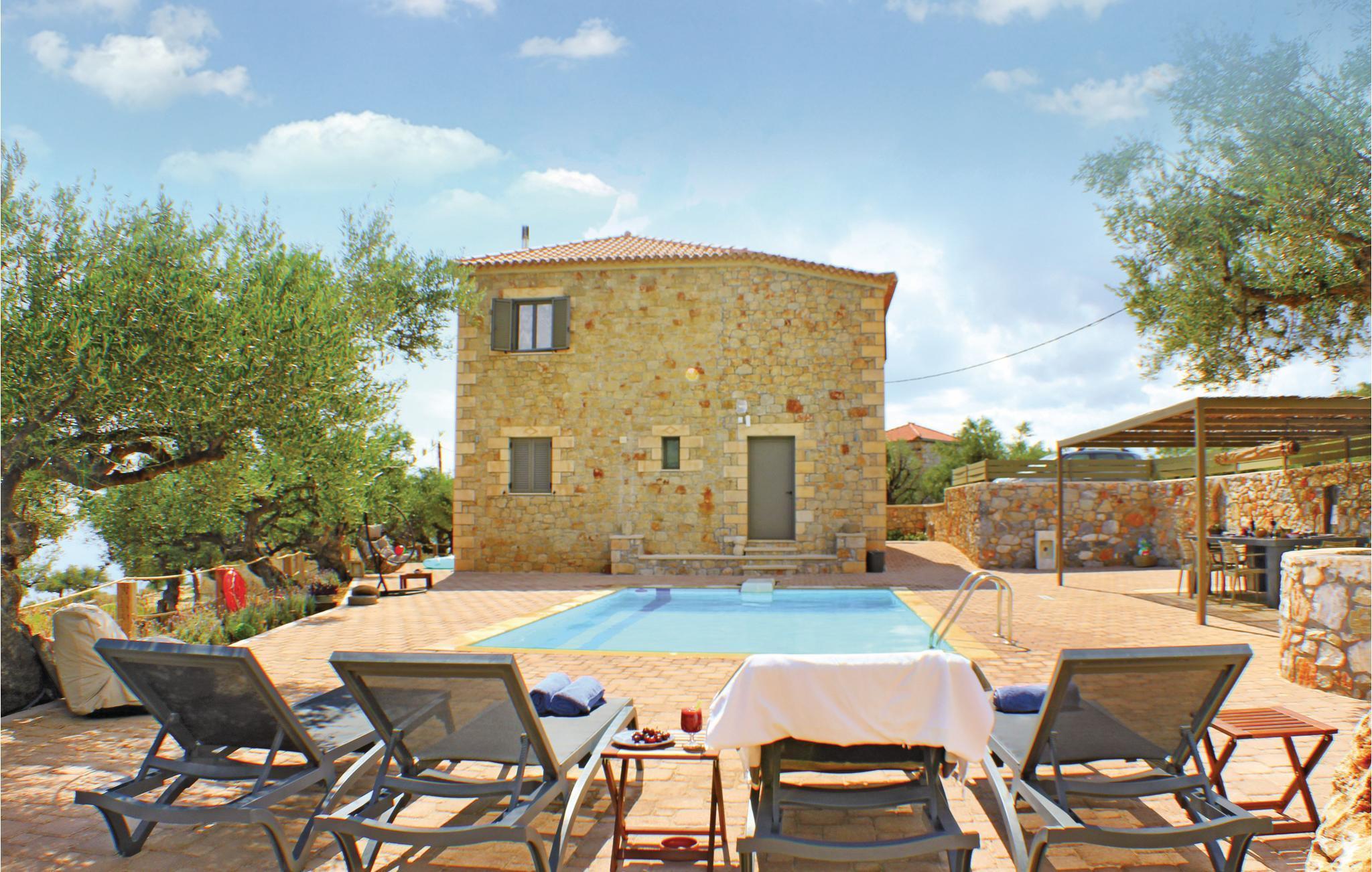 Diese fantastische Villa ist von Olivenbäumen umgeben und befindet sich im Dorf Proastio in Mani, nur 5 km von der berühmten Stadt Kardamyli entfernt.