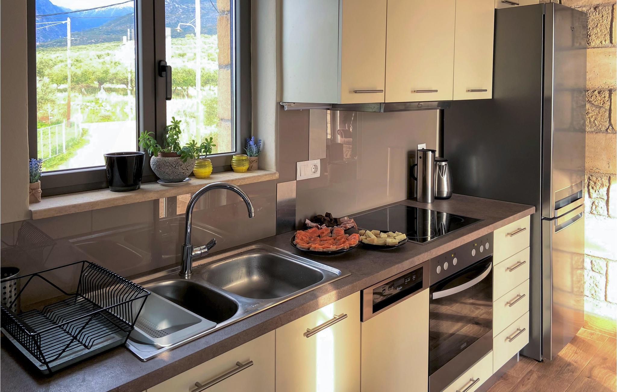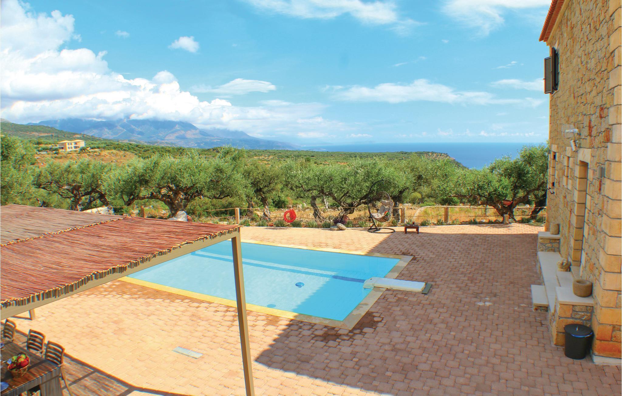 Die Aussicht vom Balkon im ersten Stock ist fantastisch, mit Blick auf den Messenischen Golf und den Berg Taygetos. Sie können Ihr Frühstück im überdachten Bereich genießen oder bei einem Glas Wein den Sonnenuntergang in einer angenehm ruhigen Atmosphäre beobachten. Der eingezäunte Poolbereich lädt zu endlosen Stunden voller Vergnügen und Entspannung ein. Es gibt Grillmöglichkeiten und einen großzügigen überdachten Essbereich mit schöner Aussicht auf die Umgebung. Alle Zimmer sind mit Klimaanlage ausgestattet.