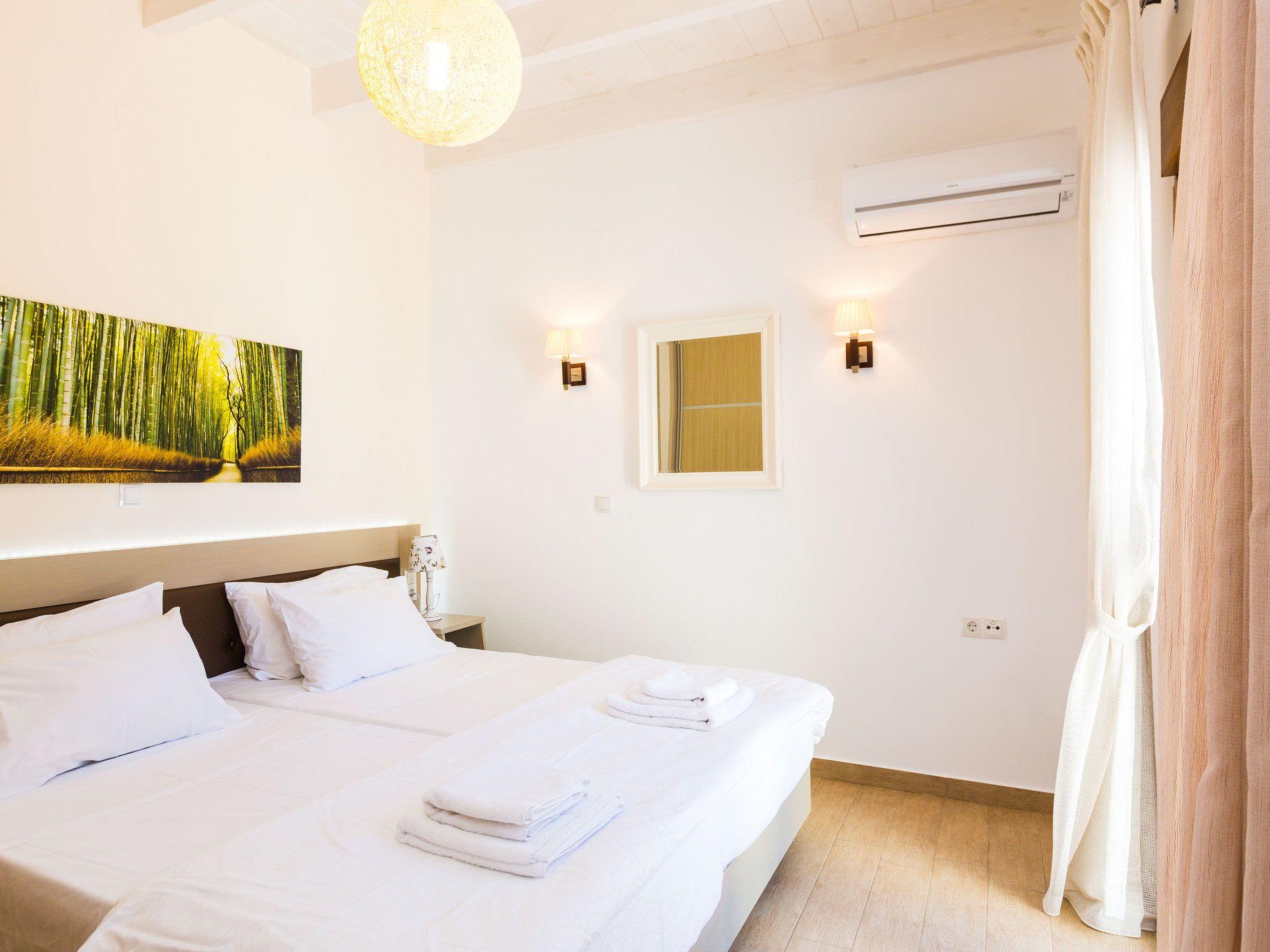 Nachdem Sie den gepflasterten Weg zur gesicherten Garage betreten und Ihr Auto abgestellt haben, steigen Sie die Treppe hinauf und finden sich im Außenbereich der Kampos Villa wieder, den man nur als Sommerfantasie bezeichnen kann! Zunächst einmal gibt es eine große Sonnenterrasse mit einem 25 m² großen, beheizten Swimmingpool (1,50 m tief) und einer überdachten Rasenfläche, die mit Sonnenliegen, Sonnenschirmen und einer Außendusche ausgestattet ist, wo Sie den ganzen Tag lang die Sonne und die frische Landluft genießen können! Die beiden Villen teilen sich einen schattigen Spielplatz, der sich direkt neben dem Grillplatz befindet, mit Kinderspielzeug und einer weichen Unterlage, auf der sich unsere kleinen Gäste gerne aufhalten, sowie einen zusätzlichen Entspannungsbereich mit Sonnenliegen und Sonnenschirmen. Der Pool kann von März bis Mai, von Oktober bis November und an Tagen mit einer Außentemperatur von weniger als 25 °C beheizt werden. Der Pool muss 24 Stunden vor der Ankunft auf 23 °C beheizt werden. Das Schwimmbad sollte für mindestens 3 Tage beheizt werden. Die Wassertemperatur kann je nach Außentemperatur bis zu 26 °C erreichen. Bei Regen kann der Pool nicht genutzt werden.