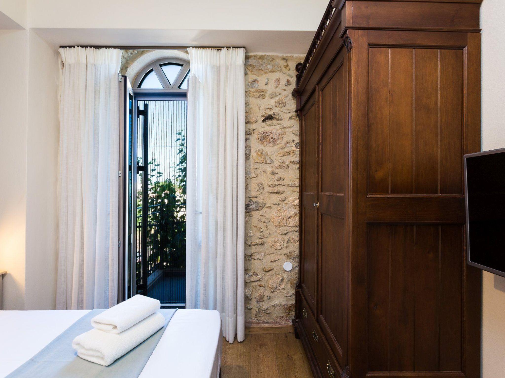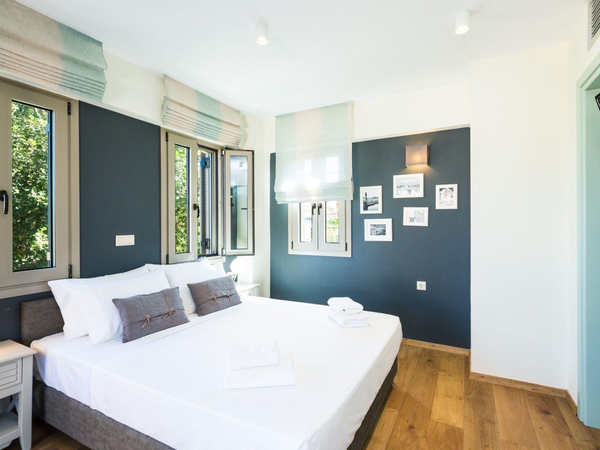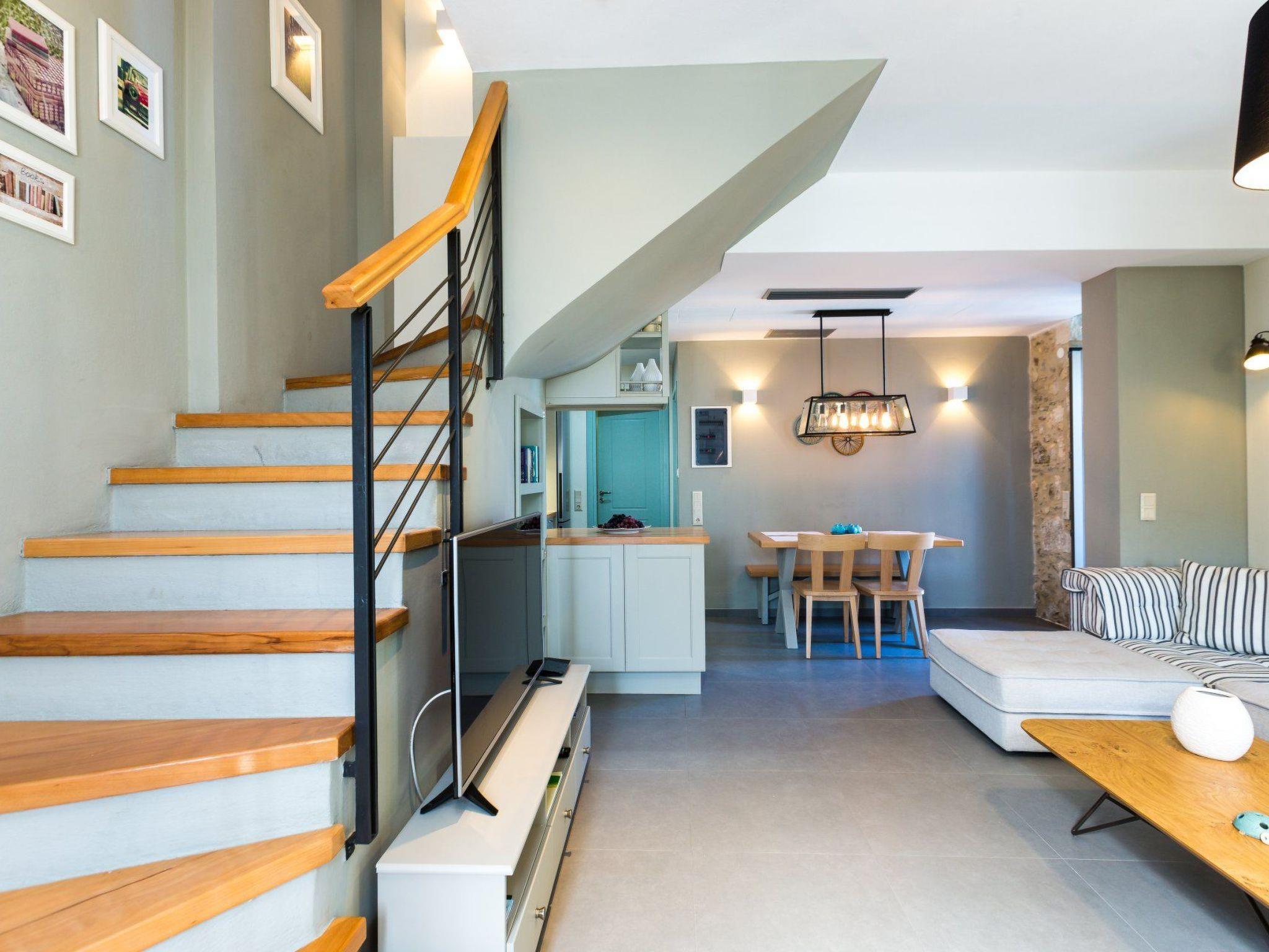 Im oberen Stockwerk befindet sich ein Schlafzimmer mit einem großen Doppelbett und ein weiteres Badezimmer mit Badewanne. Von der oberen Etage aus haben Sie Zugang zu einer schönen Terrasse mit herrlichem Meerblick. Die Terrasse ist mit einem großen Esstisch mit Stühlen ausgestattet und eine hölzerne Pergola bietet entspannende Momente unter dem kretischen Himmel.