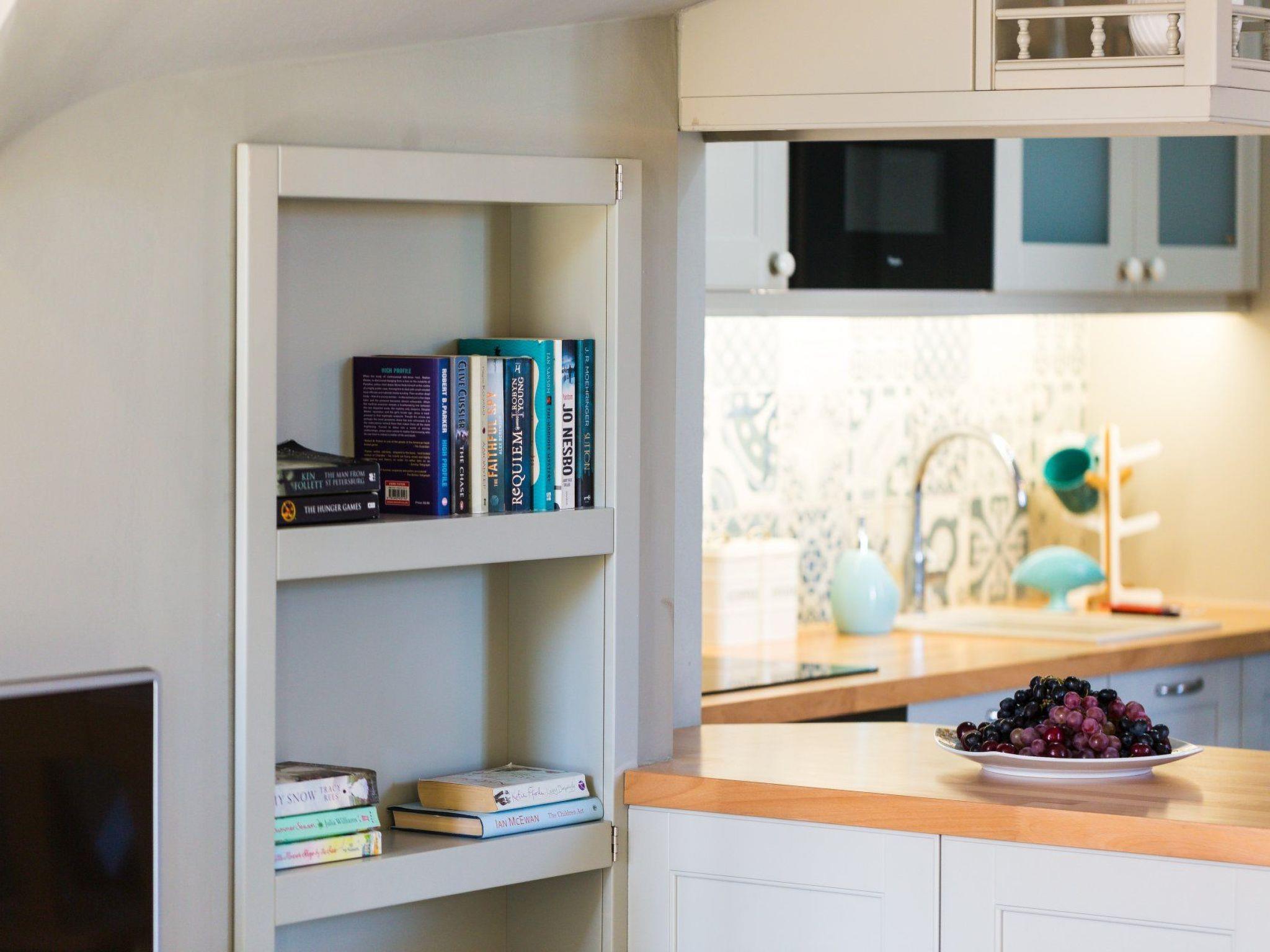 - Mikrowelle, Cerankochfeld, Toaster, Wasserkocher, Nespresso-Kaffeemaschine, Geschirrspüler, Bügeleisen, Bügelbrett, Kühlschrank, Gefrierschrank und Waschmaschine.