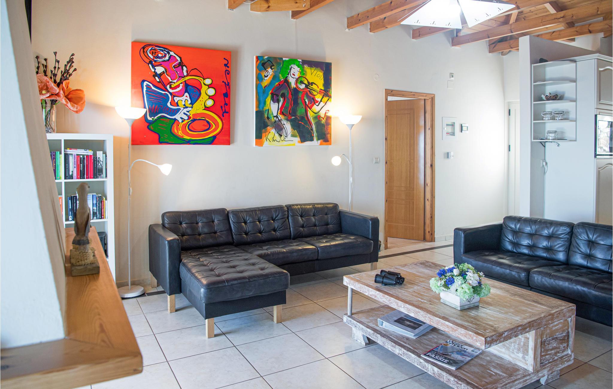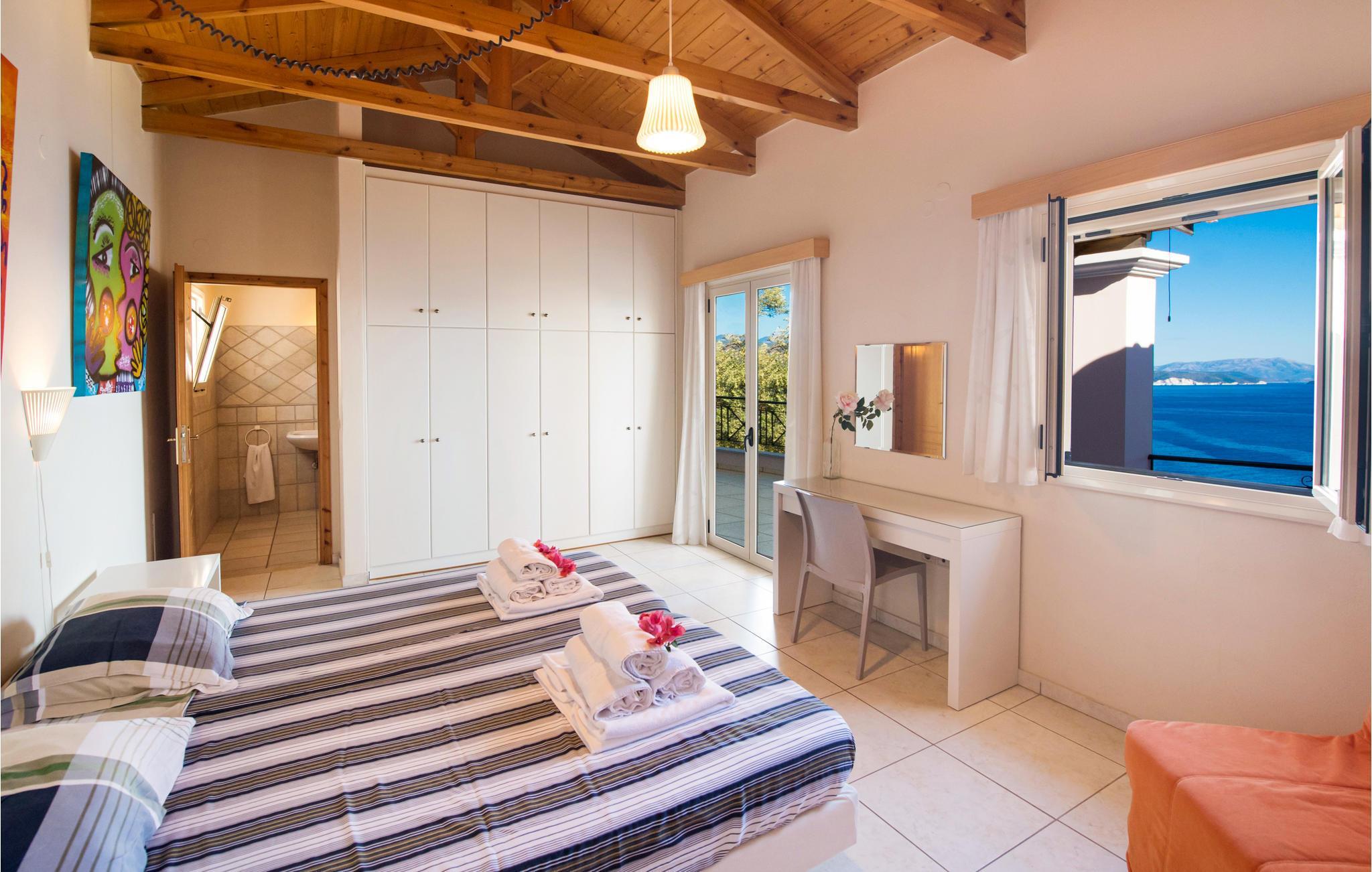 Die Innenräume bieten eine gut ausgestattete Küche, ein komfortables und modernes Wohnzimmer mit großem Balkon und vier Schlafzimmer, die alle ein eigenes Bad und einen Balkon mit phänomenalem Meerblick haben. Zwei der Schlafzimmer liegen im Erdgeschoss und dadurch, dass sie vom Haupthaus getrennt sind, bieten sie eine Extraportion Privatsphäre.