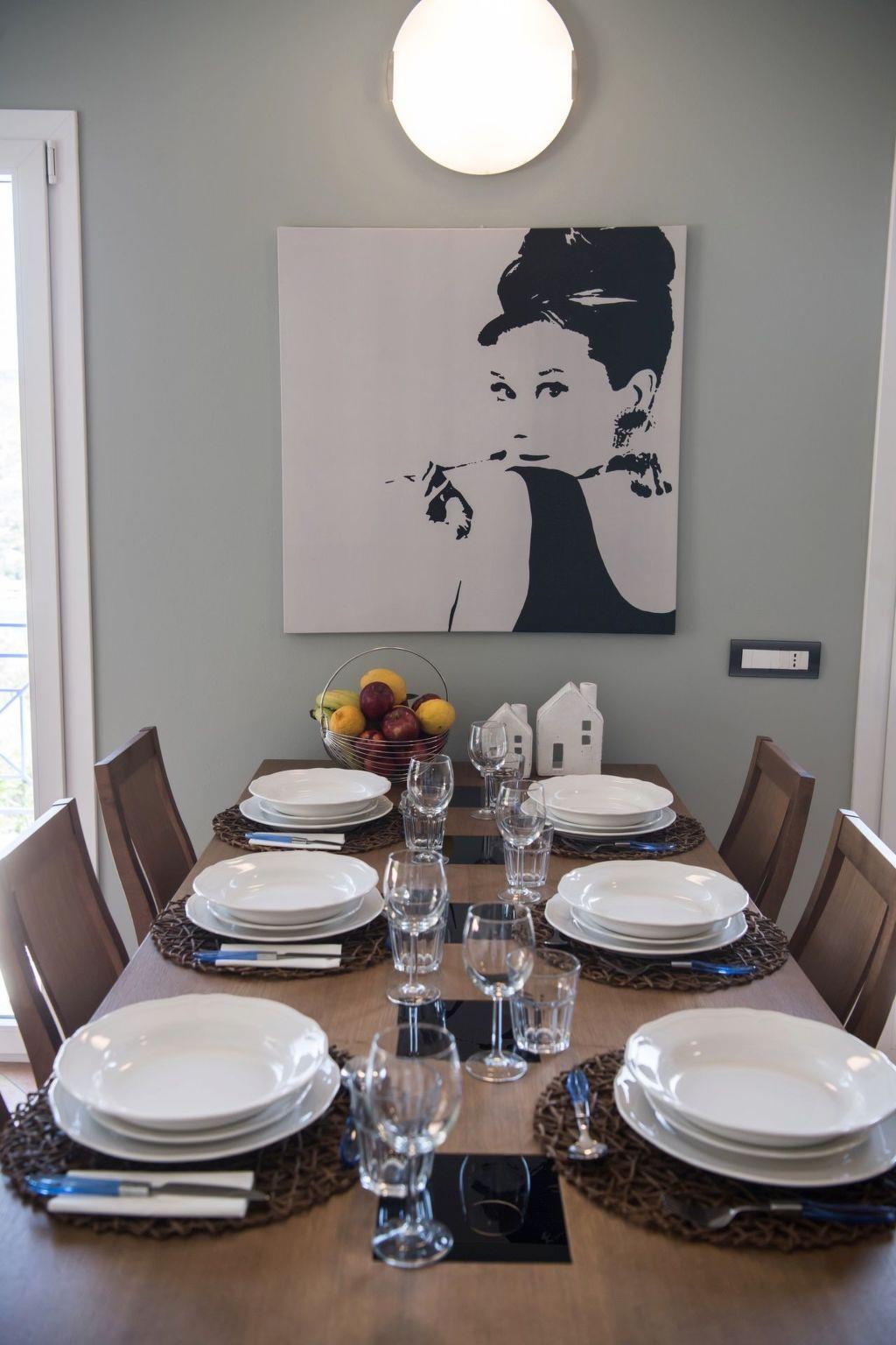 Die Villa besteht aus zwei Etagen von jeweils ca. 65 qm, im ersten Stock befindet sich der Wohnbereich mit einer großen ausgestatteten Küche, einem Esstisch für 6 Personen, einem Sofa und einem Flachbildfernseher mit Satellitenschüssel, draußen gibt es eine überdachte Terrasse mit Panoramablick auf die Bucht mit einer zweiten Küche mit Gasgrill, Herd, Spülbecken, einem Esstisch für 6 Personen und einer Sitzecke, einem großen Balkon mit Panoramablick. Im Erdgeschoss befinden sich 2 Doppelschlafzimmer mit 1.80 Schrankbett, Sessel und Nachttischen, ein Schlafzimmer mit französischem Bett, 2 Bäder mit Waschbecken, Bidet, WC, Dusche, ein Abstellraum. Der Wohnbereich und die drei Doppelschlafzimmer sind klimatisiert.