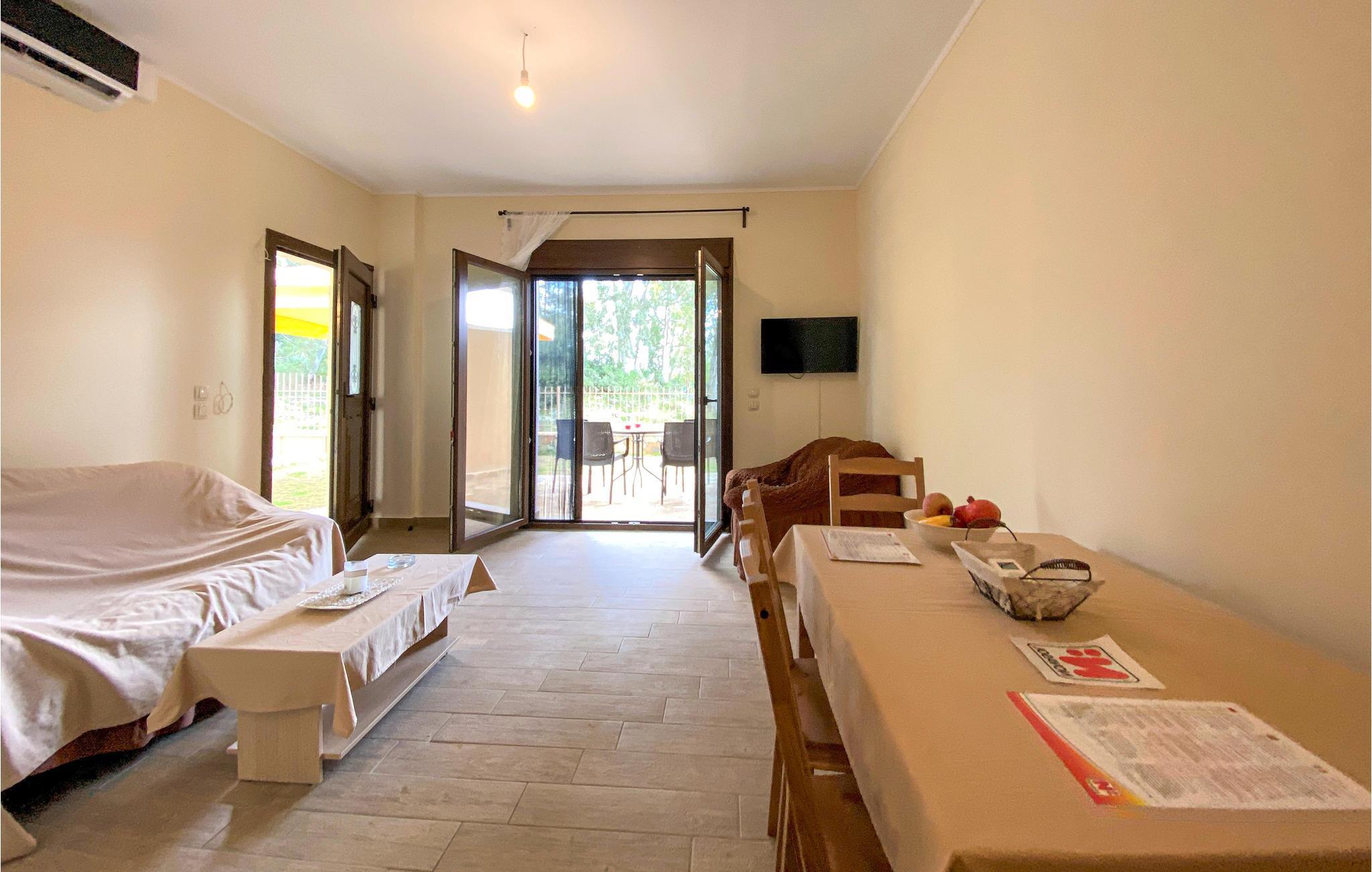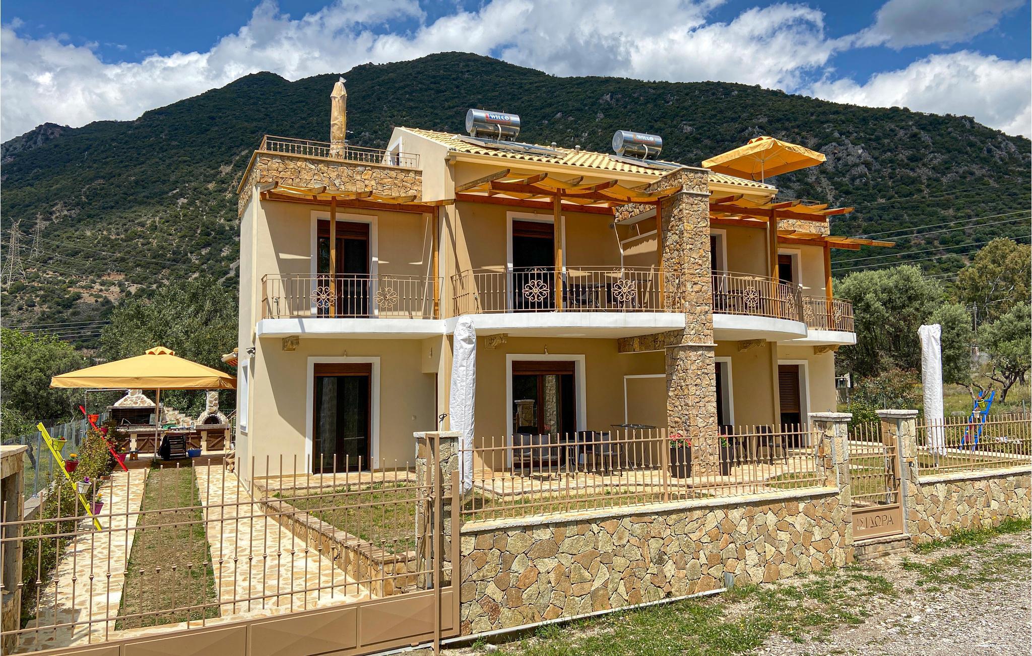 Unternehmen Sie einen Spaziergang mit Ihrem Hund, der hier auch willkommen ist und blicken auf die Gebirgswelt, die sich hinter dem Haus erstreckt. Zum Kiesstrand gelangen Sie schon nach wenigen 100 m. Hier angekommen können Sie unter einem Sonnenschirm und Strandliege entspannen und alle Fünfe gerade sein lassen. Entlang des Strandes finden Sie auch ein paar Cafés und Bars, wo Sie beispielsweise einen leckeren, griechischen Frappé genießen können.