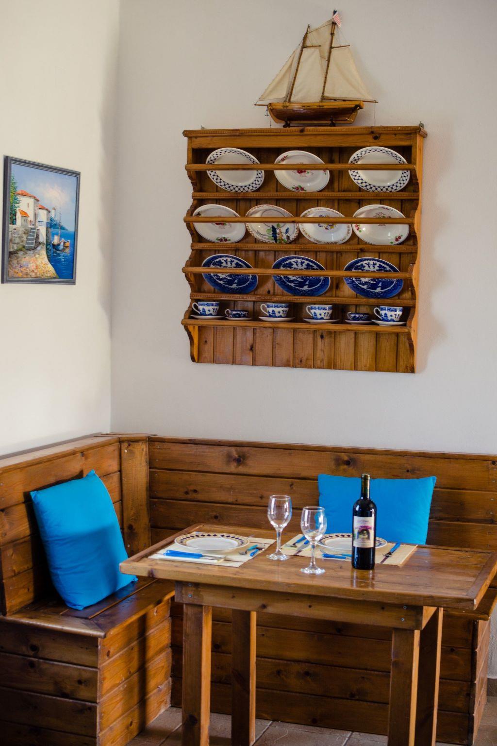 Im Außenbereich der Villa lädt eine große schattige Veranda mit Blick auf das Meer zum Essen im Freien oder zu abendlichen Drinks ein. Im Vorgarten steht unseren Gästen ein perfekt eingerichteter Grillplatz mit einem traditionellen Dorfofen zur Verfügung. Am Eingang des Grundstücks gibt es reichlich Platz zum Parken, und neben der Einfahrt gibt es Rasenflächen, auf denen man Volleyball oder andere Sportarten spielen, ein Nickerchen in der Hängematte machen oder auf den Liegen die Sonne genießen kann.