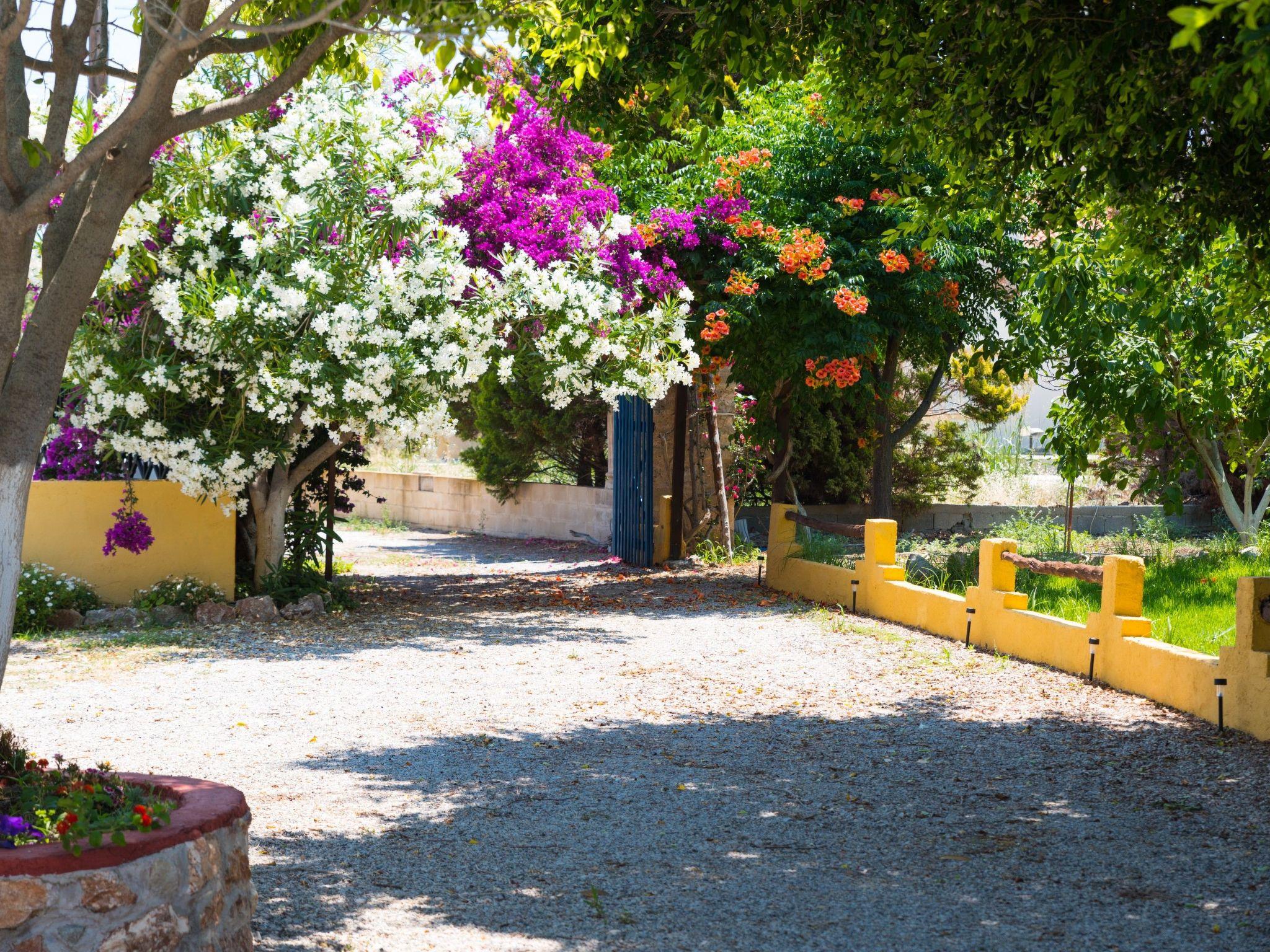Die vorteilhafte Lage der Villa Marqua an der Nordwestküste von Rhodos liegt in gleicher Entfernung zu den bekannten und sehenswerten Sehenswürdigkeiten wie der Neu- und Altstadt von Rhodos, Kallithea, Faliraki, Lindos und dem Tal der Schmetterlinge. Die antike Stadt Kamiros, eine der drei antiken Städte der Insel Rhodos, ist nur 5 km entfernt. Kamiros ist eine der ältesten Siedlungen, die von den Doriern auf drei Ebenen erbaut wurde. Die systematischen Ausgrabungen und Restaurierungsarbeiten begannen 1928 durch die Italienische Archäologische Schule und dauerten bis zum Ende des Zweiten Weltkriegs. Eine Haltestelle des öffentlichen Busses befindet sich an der Hauptstraße, etwa 800 Meter vom Grundstück entfernt, und die Fahrt in die Stadt Rhodos dauert nur 30 Minuten. Aktiveren Besuchern, insbesondere Familien und solchen, die die Insel erkunden möchten, wird empfohlen, ein Auto zu mieten, um einfacher und schneller voranzukommen. Das malerische kleine Dorf Fanes liegt nur 2 km entfernt. Auf private Initiative der Einwohner wurde das Dorf 2011 renoviert, indem 72 Häuser in vielen bunten Farben gestrichen wurden. Das Ergebnis war, dass sich das Dorf in ein lebendiges Kunstwerk verwandelt hat. Im Dorf gibt es einen Supermarkt, der hauptsächlich lokale Produkte verkauft, und eine Apotheke. An der Hauptstraße, ganz in der Nähe der Villa Marqua, gibt es eine Tankstelle. Am Strand von Fanes und entlang der Küste nördlich und südlich der Villa können die Besucher Tavernen entdecken, die frische Fisch- oder Fleischgerichte servieren, oder sie können sich bei einer Erfrischung in einer nahe gelegenen Gartenbar entspannen. Unseren Gästen in der Villa Marqua stehen zwei Mountainbikes zur Verfügung, mit denen sie auf den unbefestigten Wegen rund um die Felder der Villa fahren können. Wir geben ihnen gerne Hinweise auf Ausflugsziele, die sie erkunden können.