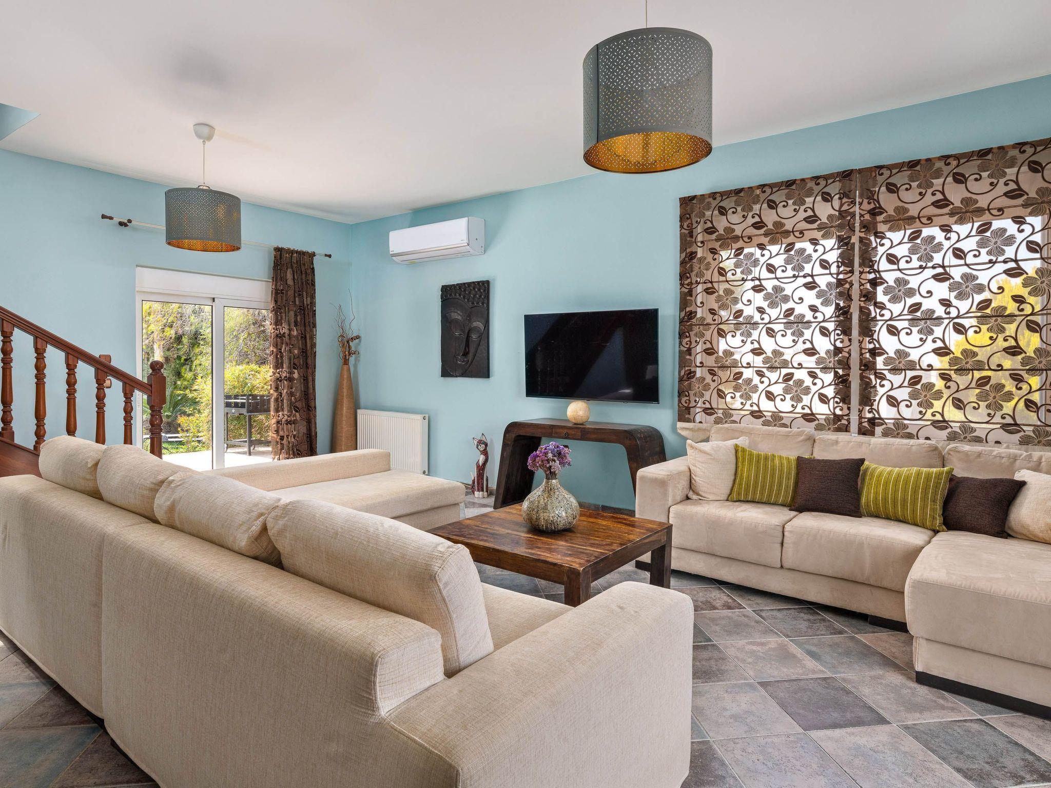 Zenia Villa ist ein traumhaftes Anwesen in Damatria Village, weniger als 15 Autominuten vom Flughafen entfernt. Sie bietet einen exquisiten privaten Swimmingpool und einen exotischen Garten mit einem Topf. Der nächstgelegene schöne Strand ist nur 10 Autominuten entfernt. Sie bietet bequem Platz für bis zu 7 Gäste und verspricht Privatsphäre und einen unvergesslichen Aufenthalt. Zenia Villa hat eine unglaubliche Innenausstattung mit bunten Details. Sie bietet 3 vollklimatisierte Schlafzimmer mit Doppelbetten und Balkonen. Außerdem gibt es 2 Bäder. Eines davon ist mit einer Dusche ausgestattet, das andere mit einer Badewanne mit Jacuzzi-Funktion für Ihre ultimative Entspannung. Das Anwesen verfügt über eine voll ausgestattete Küche für jede Mahlzeit Vorbereitung. Diese schöne Villa verfügt über ein geräumiges, offenes Wohnzimmer in Erdtönen mit bequemen Sitzecken, ausgestattet mit einem Flachbildfernseher mit Netflix und Satellitenkanälen. Es gibt einen kostenlosen Wi-Fi-Zugang im gesamten Haus. Im Außenbereich gibt es einen privaten Swimmingpool, der von Sonnenliegen und einer Hängematte umgeben ist und eine exotische Atmosphäre bietet, die Ihnen ein unbeschwertes Gefühl vermittelt. Es gibt einen malerischen Garten mit einem Teich. Sie können jederzeit eine Mahlzeit auf dem Grillplatz zubereiten und ein Treffen mit Ihren Lieben genießen, besonders empfehlenswert in den Abendstunden.