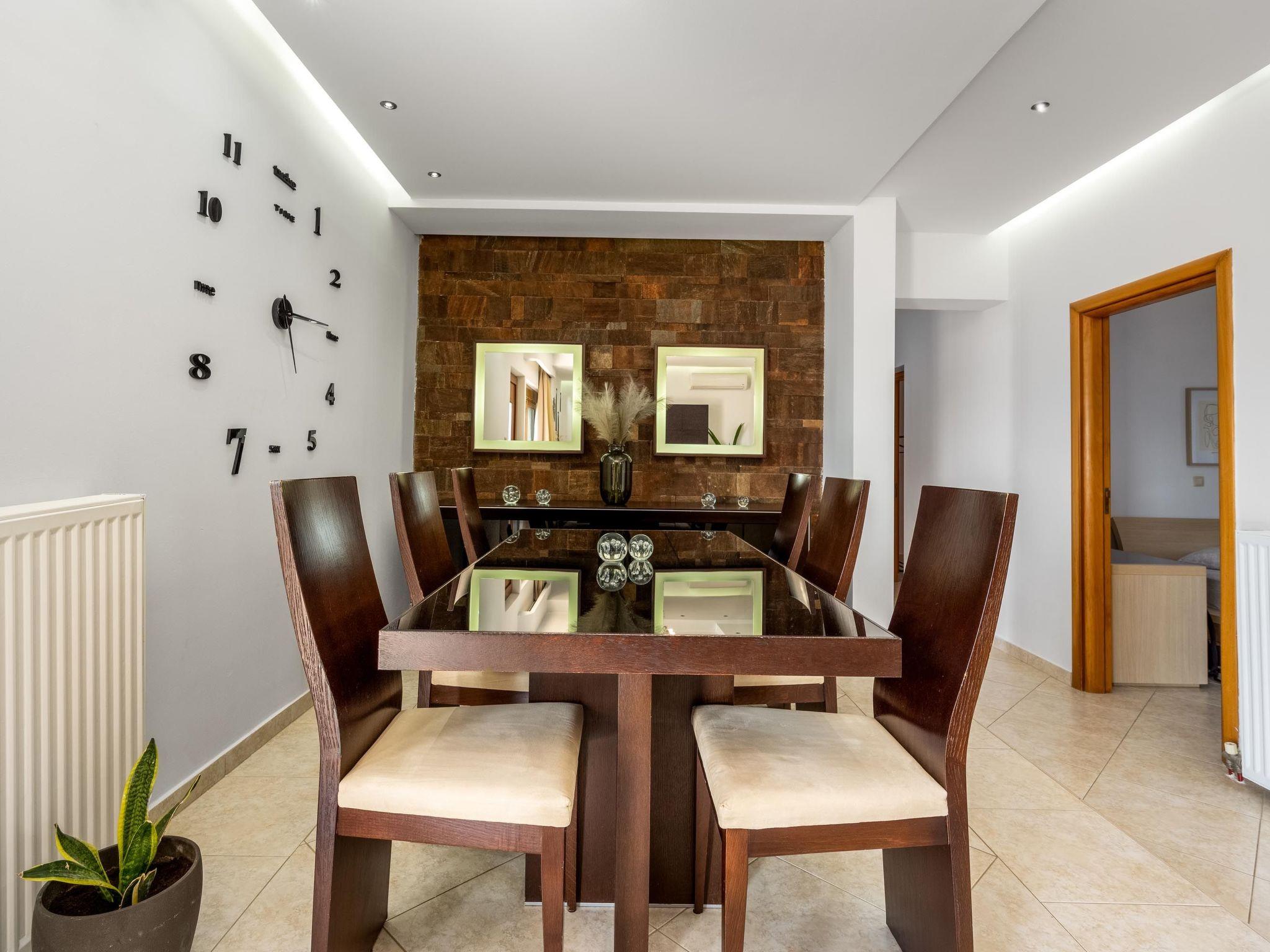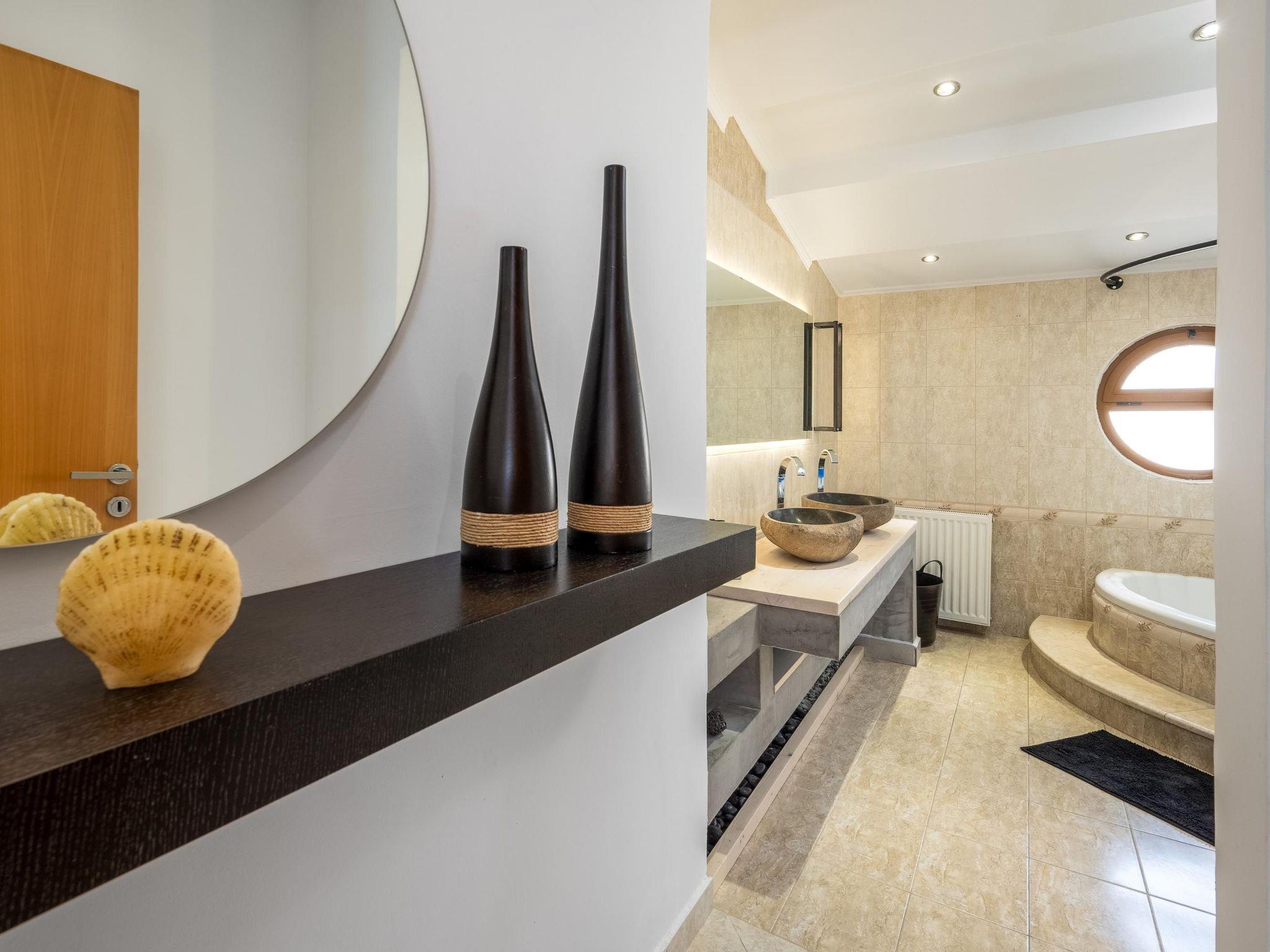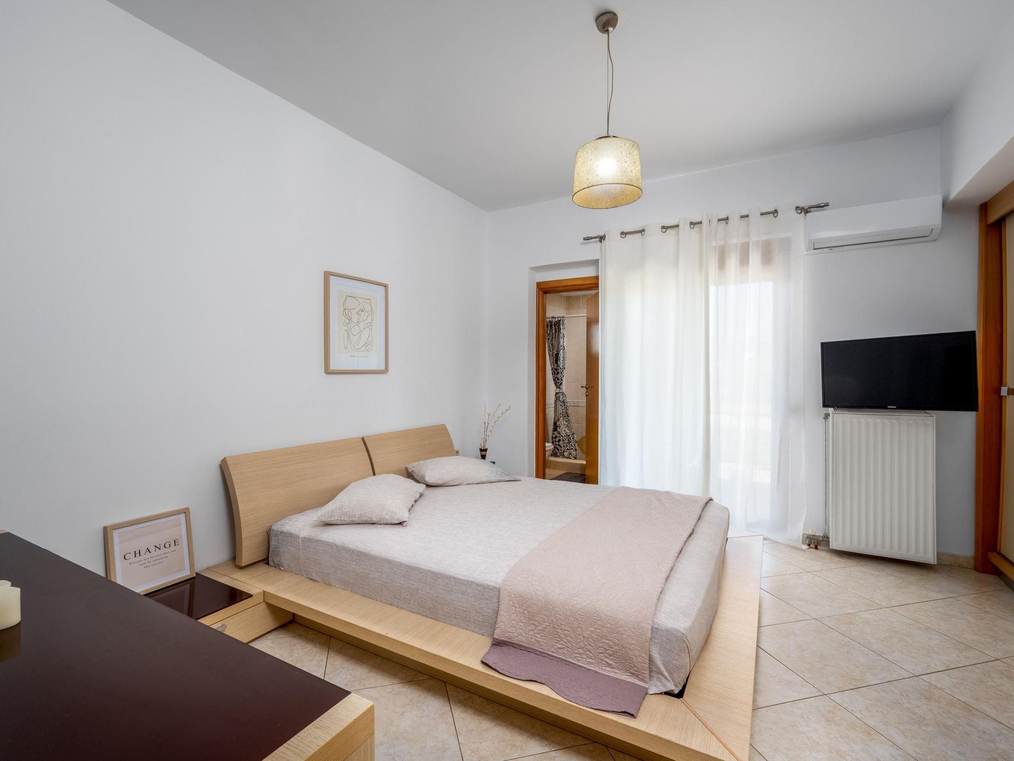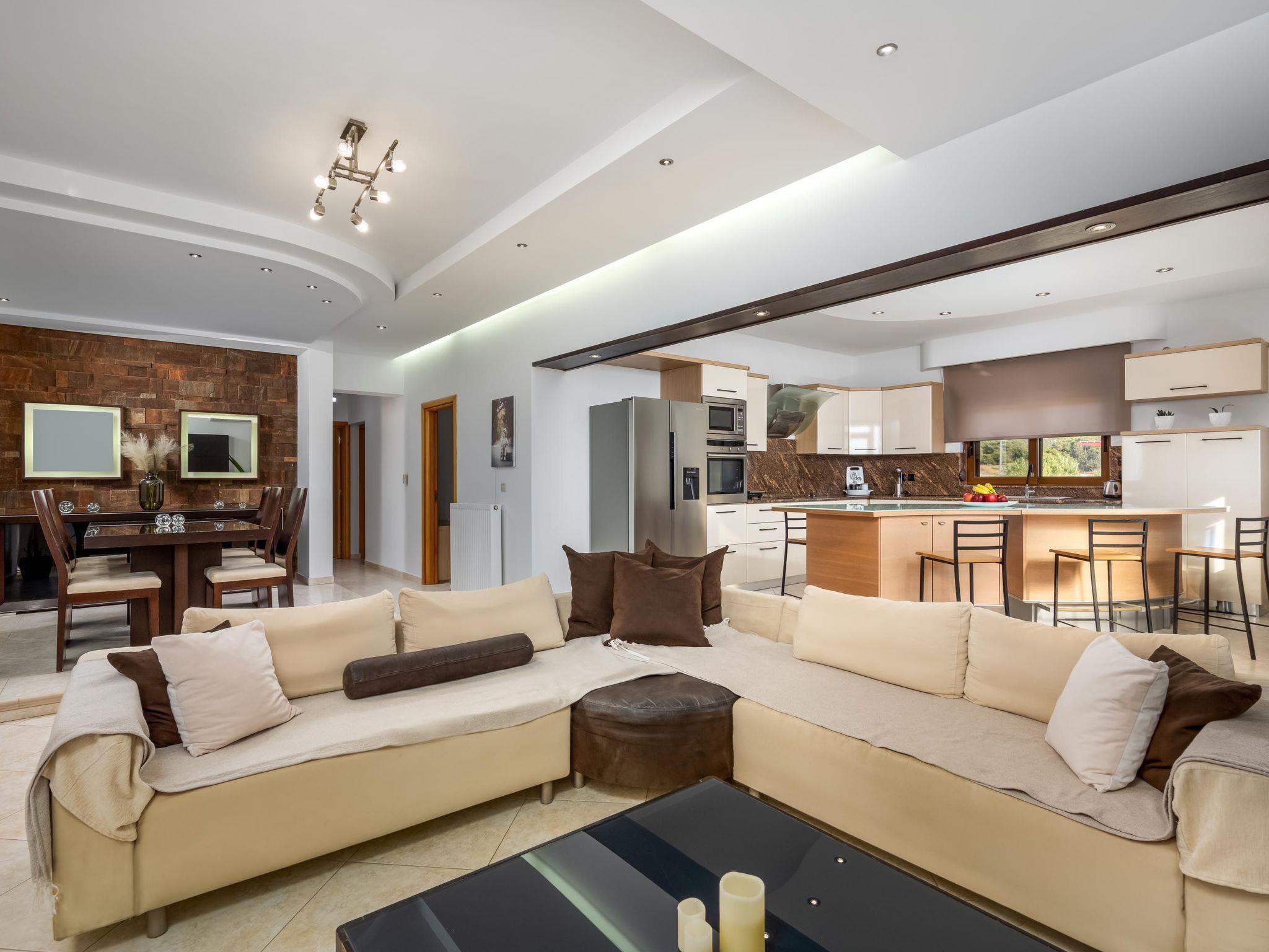 Es gibt 3 klimatisierte Schlafzimmer, zwei mit Doppelbetten und eines mit zwei Einzelbetten. Das Haus verfügt über eine geräumige, modern ausgestattete Küche und einen gemütlichen Essbereich. Das Wohnzimmer hat Zugang zu einer möblierten Terrasse mit Panoramablick auf die Umgebung und bietet einen einzigartigen Rahmen zum Entspannen. Es gibt einen Bildschirm-TV und einen kostenlosen Wi-Fi-Zugang im gesamten Haus. Im Außenbereich finden Sie einen privaten Swimmingpool mit Sonnenliegen, wo Sie sich unter der ägäischen Sonne bräunen können. Die Umgebung ist sehr einladend und gemütlich. Außerdem gibt es einen Grillplatz und einen Essbereich, um eine Mahlzeit und ein Treffen mit Freunden oder der Familie zu genießen. Zu guter Letzt empfehlen wir Ihnen, ein Auto für den Transfer vom und zum Grundstück zu nehmen.