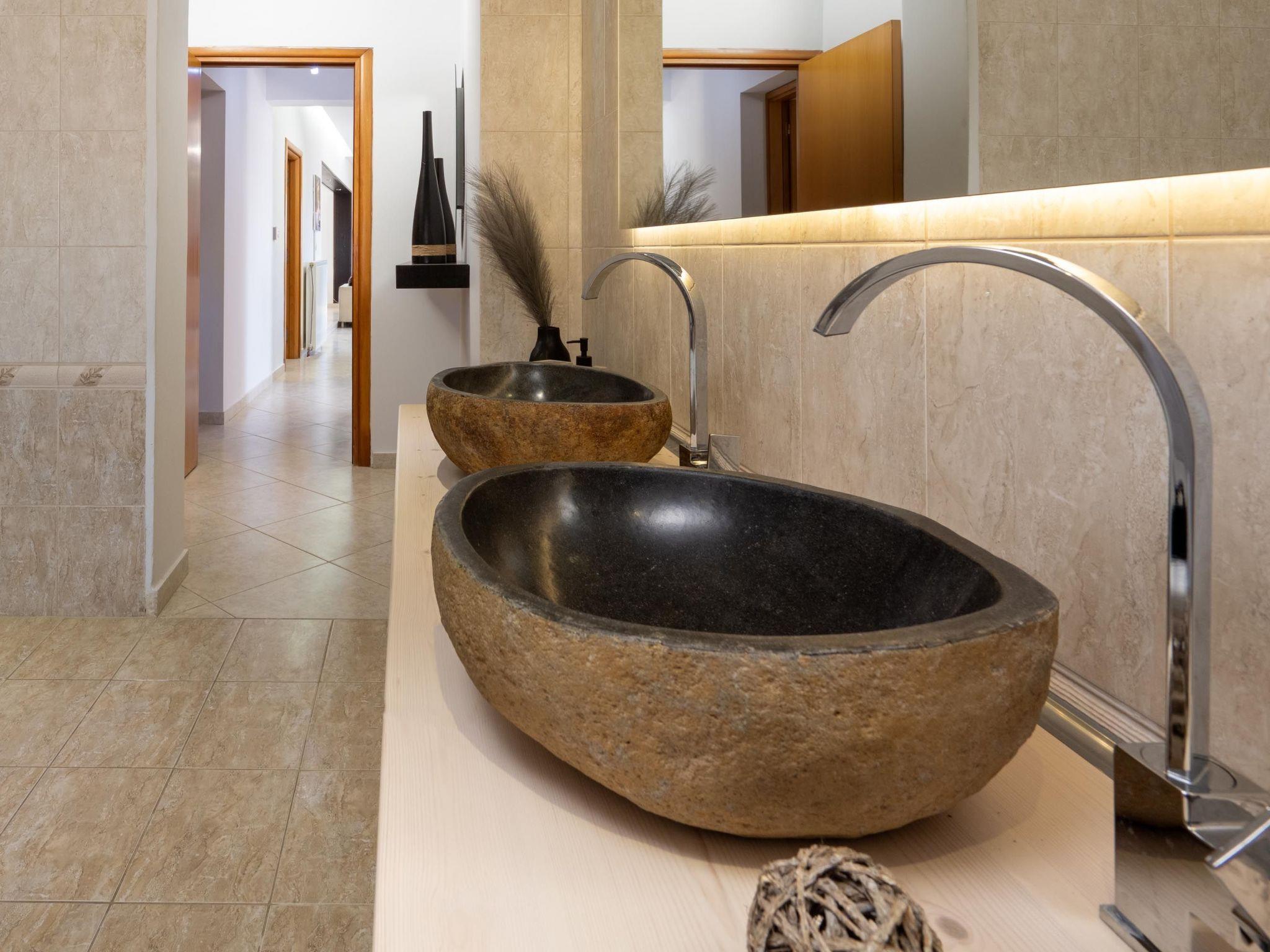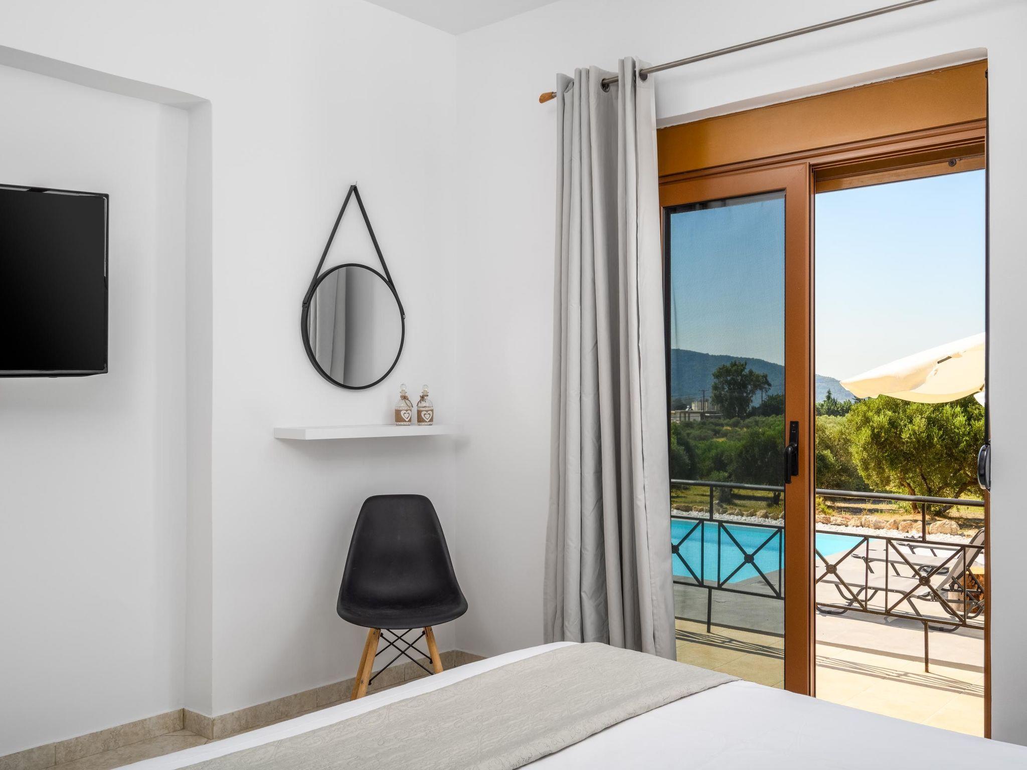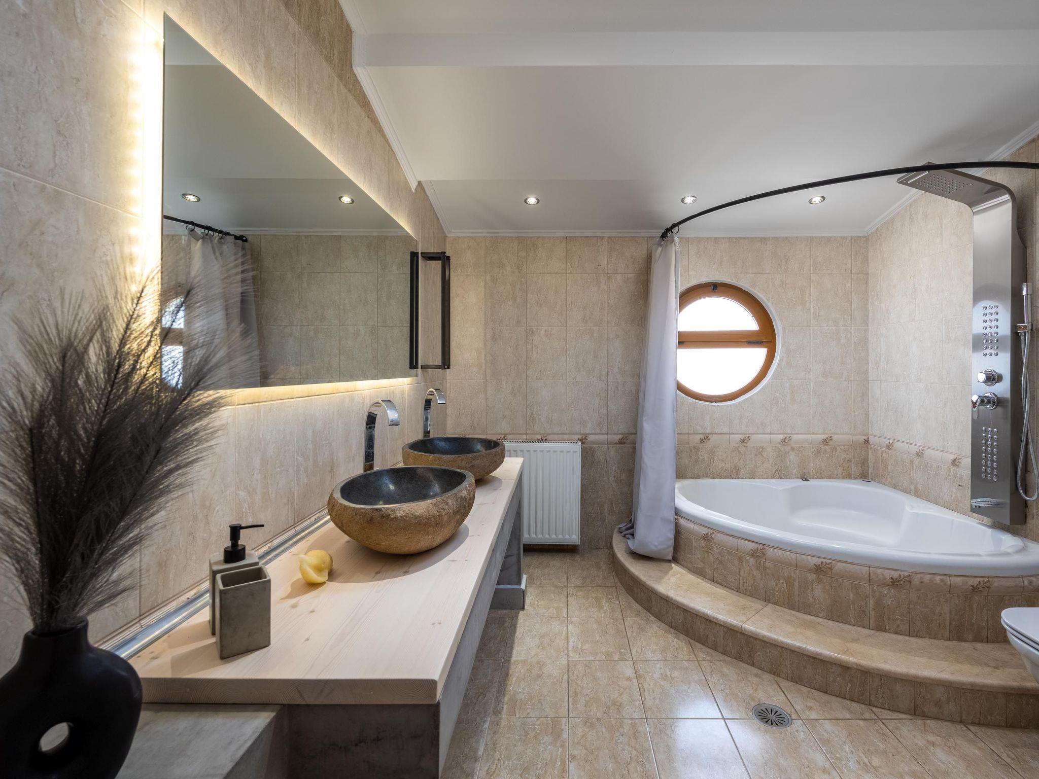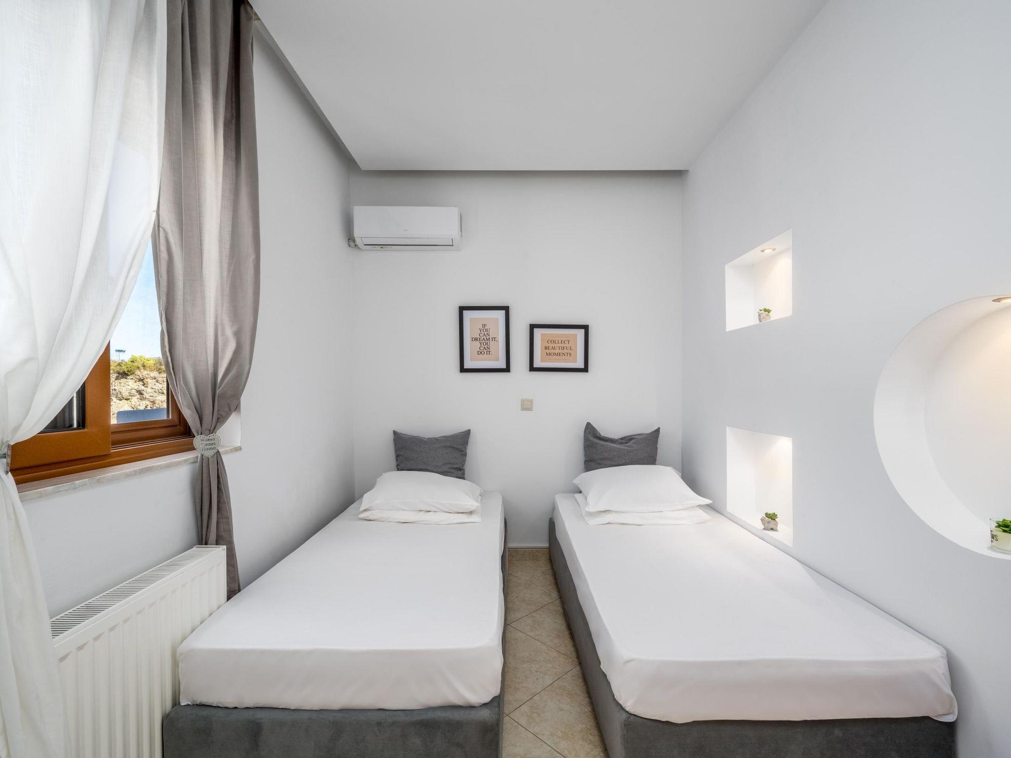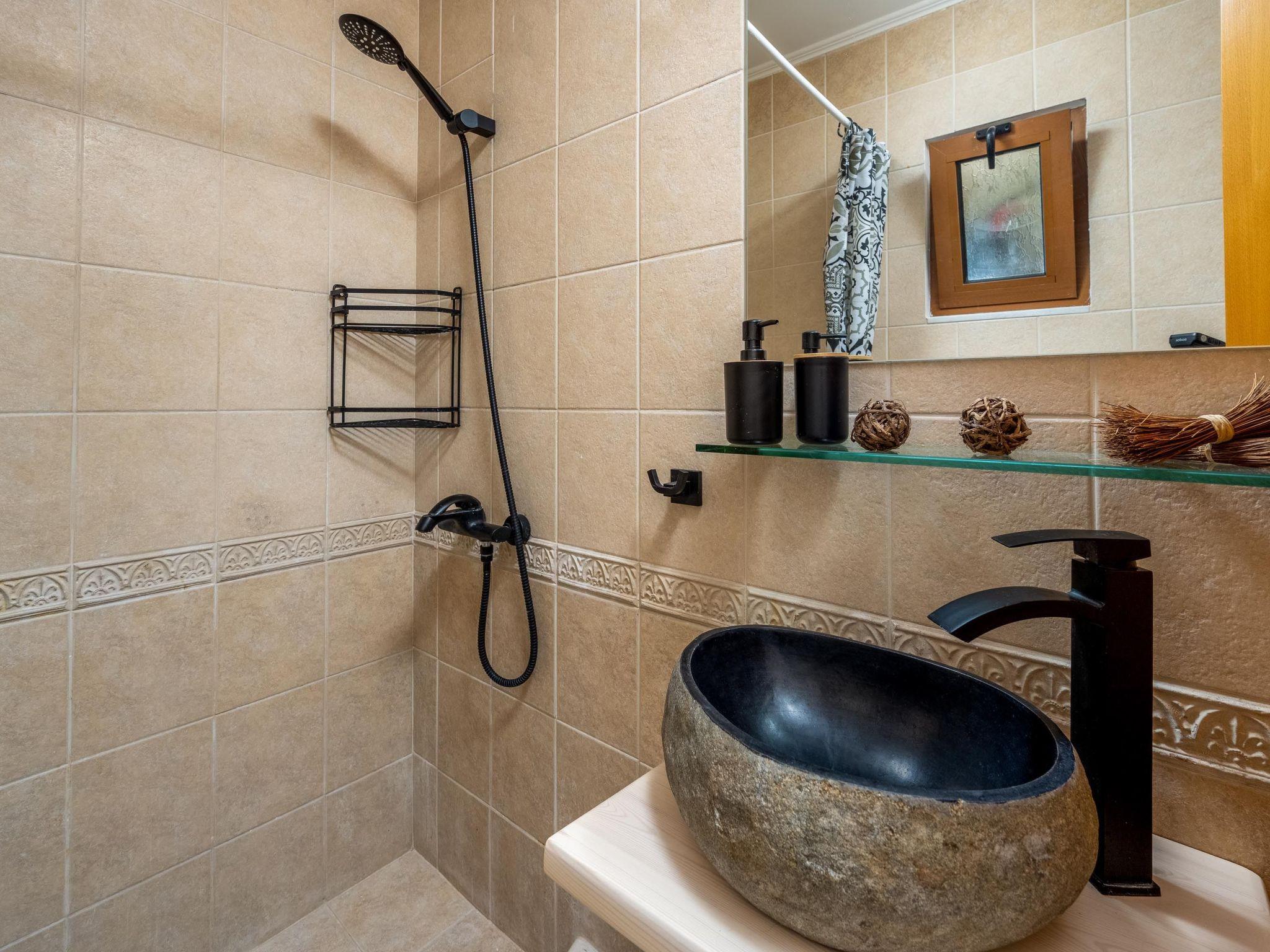 Es gibt 3 klimatisierte Schlafzimmer, zwei mit Doppelbetten und eines mit zwei Einzelbetten. Das Haus verfügt über eine geräumige, modern ausgestattete Küche und einen gemütlichen Essbereich. Das Wohnzimmer hat Zugang zu einer möblierten Terrasse mit Panoramablick auf die Umgebung und bietet einen einzigartigen Rahmen zum Entspannen. Es gibt einen Bildschirm-TV und einen kostenlosen Wi-Fi-Zugang im gesamten Haus. Im Außenbereich finden Sie einen privaten Swimmingpool mit Sonnenliegen, wo Sie sich unter der ägäischen Sonne bräunen können. Die Umgebung ist sehr einladend und gemütlich. Außerdem gibt es einen Grillplatz und einen Essbereich, um eine Mahlzeit und ein Treffen mit Freunden oder der Familie zu genießen. Zu guter Letzt empfehlen wir Ihnen, ein Auto für den Transfer vom und zum Grundstück zu nehmen.