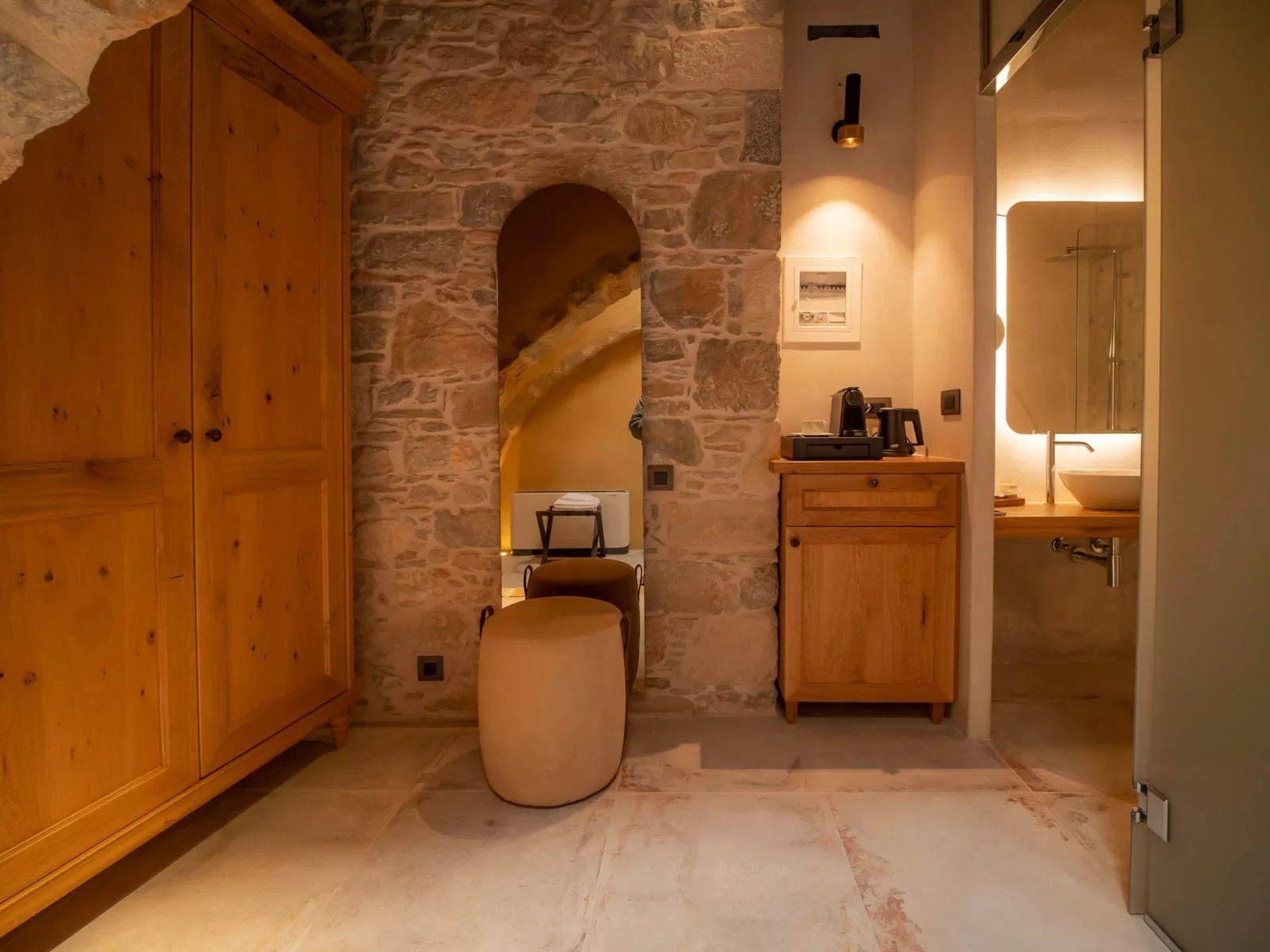 Von der Wohnung aus hat man Zugang zu einer schönen Terrasse, auf der man in aller Ruhe seinen Morgenkaffee genießen oder sich abends entspannen kann. Nicht zu vergessen ist die Dachterrasse, die zur gemeinsamen Nutzung vorgesehen ist und auf der sich die Gäste unter dem warmen kretischen Himmel treffen und ihre Erfahrungen austauschen können. Diese Außenbereiche sind ideal, um die ruhige Atmosphäre von Agia Paraskevi zu genießen und bieten eine perfekte Mischung aus Privatsphäre und Gemeinschaft.