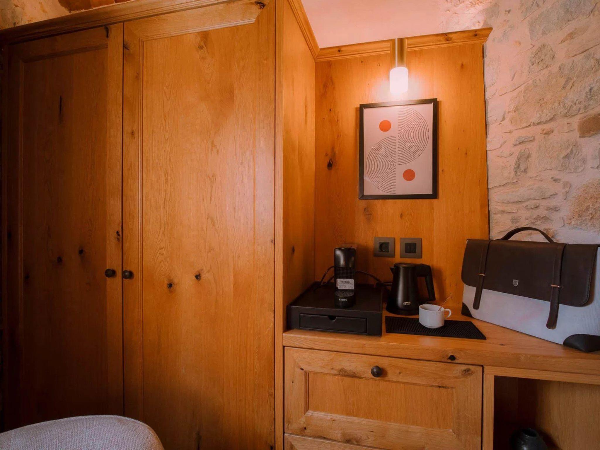 Die Wohnung ist von einer ruhigen Umgebung umgeben, die zum Entspannen und Eintauchen in die heitere Atmosphäre von Agia Paraskevi einlädt. Auch wenn der Außenbereich nur angedeutet ist, kann man das Wesen der nordgriechischen Ruhe spüren, was ein erfrischendes Erlebnis im Freien während Ihres Aufenthalts verspricht.