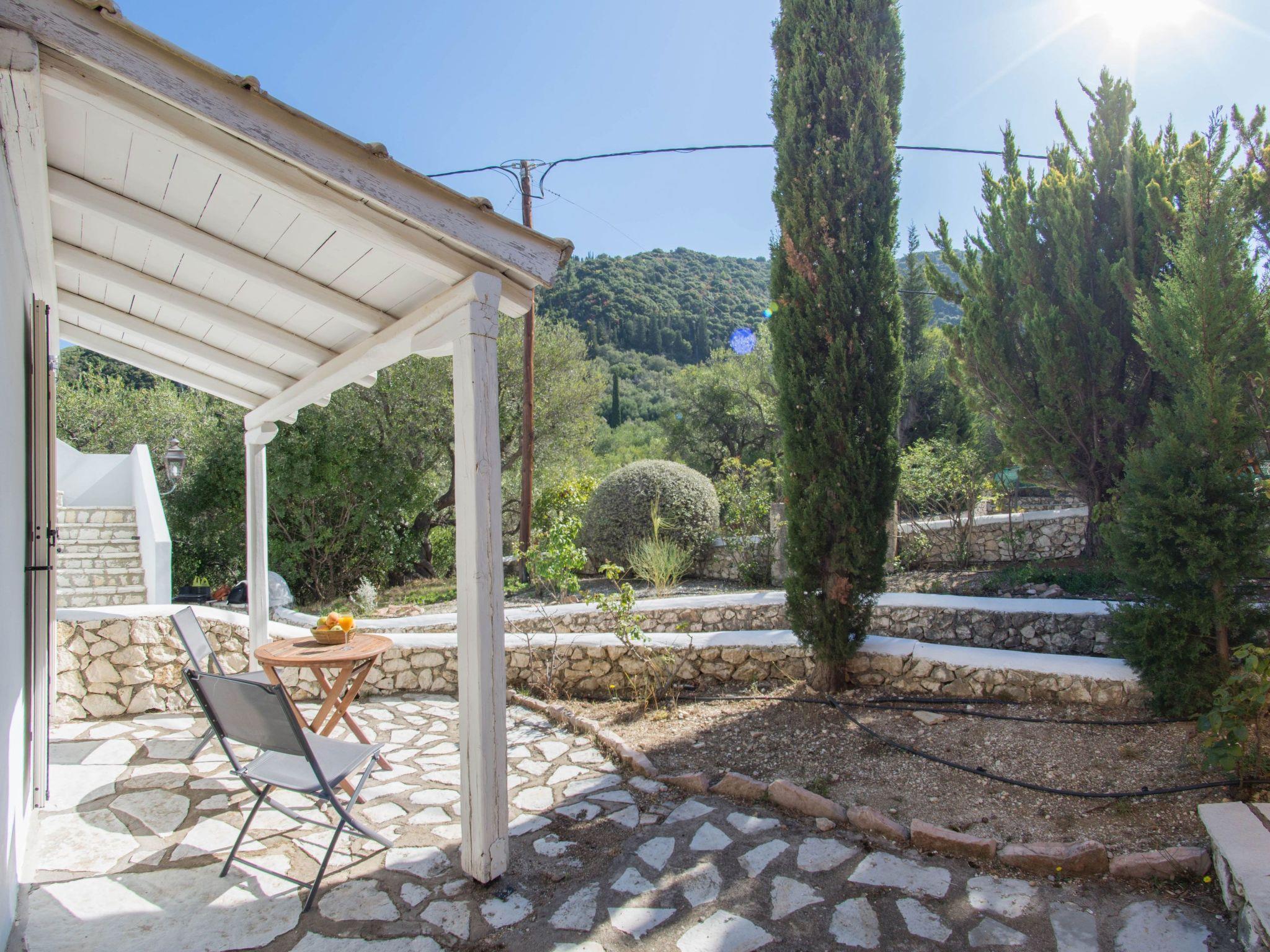 Außerhalb: Eine steile Auffahrt führt vom Dorf Agios Nikitas hinauf zu den Appartements. Auf verschiedenen Ebenen gelegen, umgeben Natursteinmauern, Olivenbäume, Sträucher und Kletterpflanzen jede Wohnung, um Privatsphäre zu schaffen. Die Wohnungen teilen sich den gleichen Pool mit 2 Villen (12m x 6m, 0,8 -2,00 Tiefe).