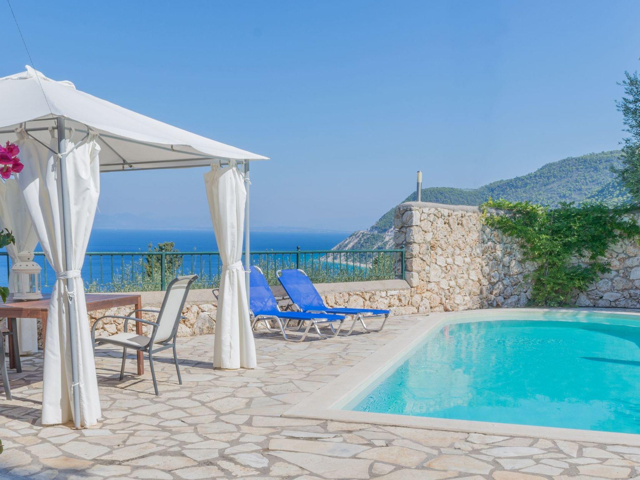 Villa mit privatem Pool und majestätischem Meerblick Eine asphaltierte Straße führt vom Dorf Agios Nikitas hinauf zur Villa Spiaggia Dorata. Gelegen an einem ruhigen Berghang zwischen Oliven- und Zypressenbäumen, Sträuchern, Thymian, Salbei und Kletterpflanzen, die Privatsphäre schaffen. Von der Terrasse aus haben Sie einen Panoramablick auf das Meer und einen majestätischen Blick auf den Sonnenuntergang!