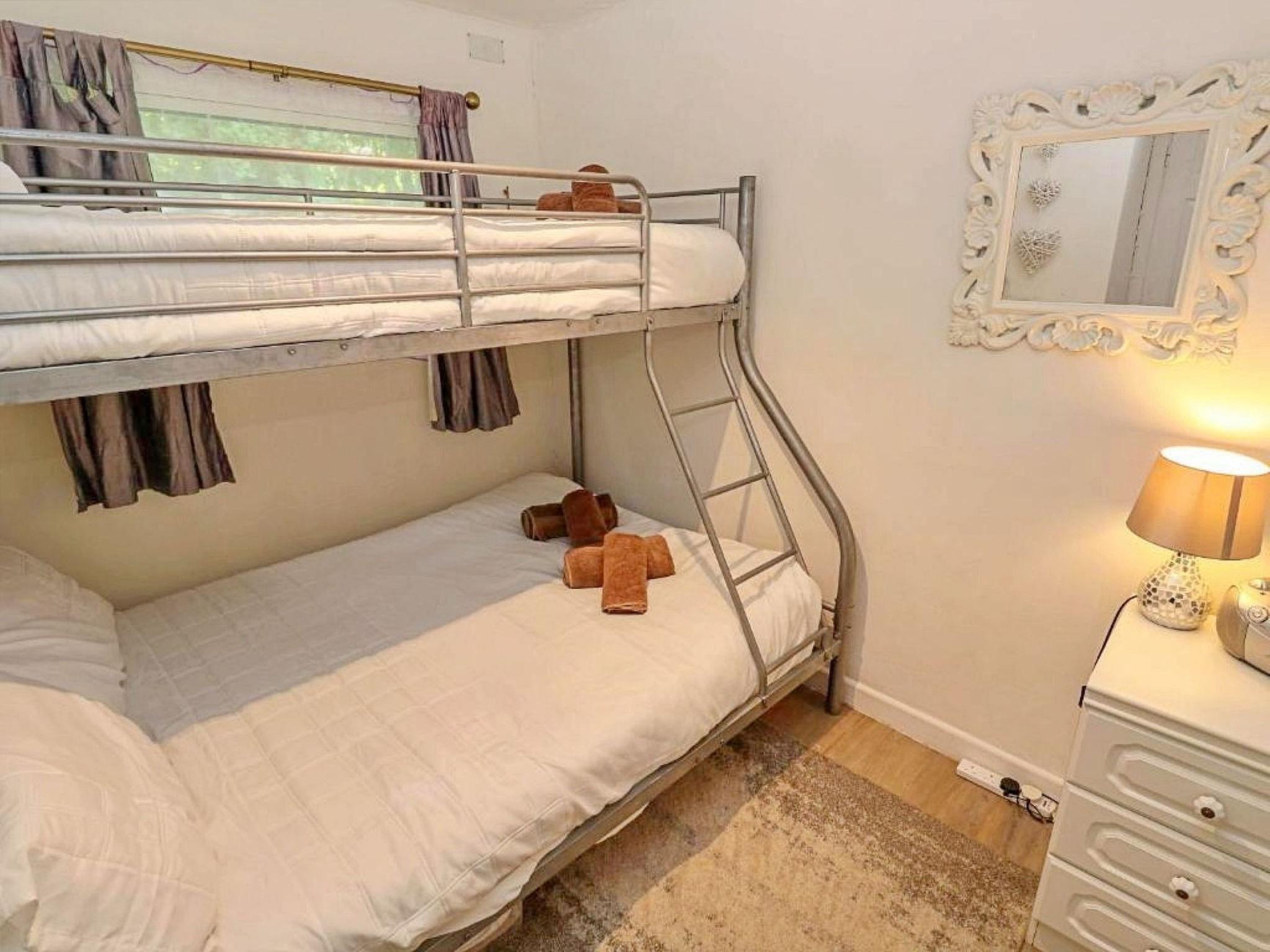 "Lanteglos Villa", 3-Zimmer-Chalet 80 m2. Objekt geeignet für 4 Erwachsene. Wohnzimmer. 1 Zimmer mit 1 Doppelbett. 1 Zimmer mit 1 x 2 Etagenbetten. Küche (Backofen, Toaster, Wasserkocher, Mikrowelle, Tiefkühler). Bad/WC, Dusche/WC, sep. WC. Zur Verfügung: Waschmaschine. Internet (WLAN, gratis). Bitte beachten: Nichtraucher-Unterkunft. Rauchmelder.