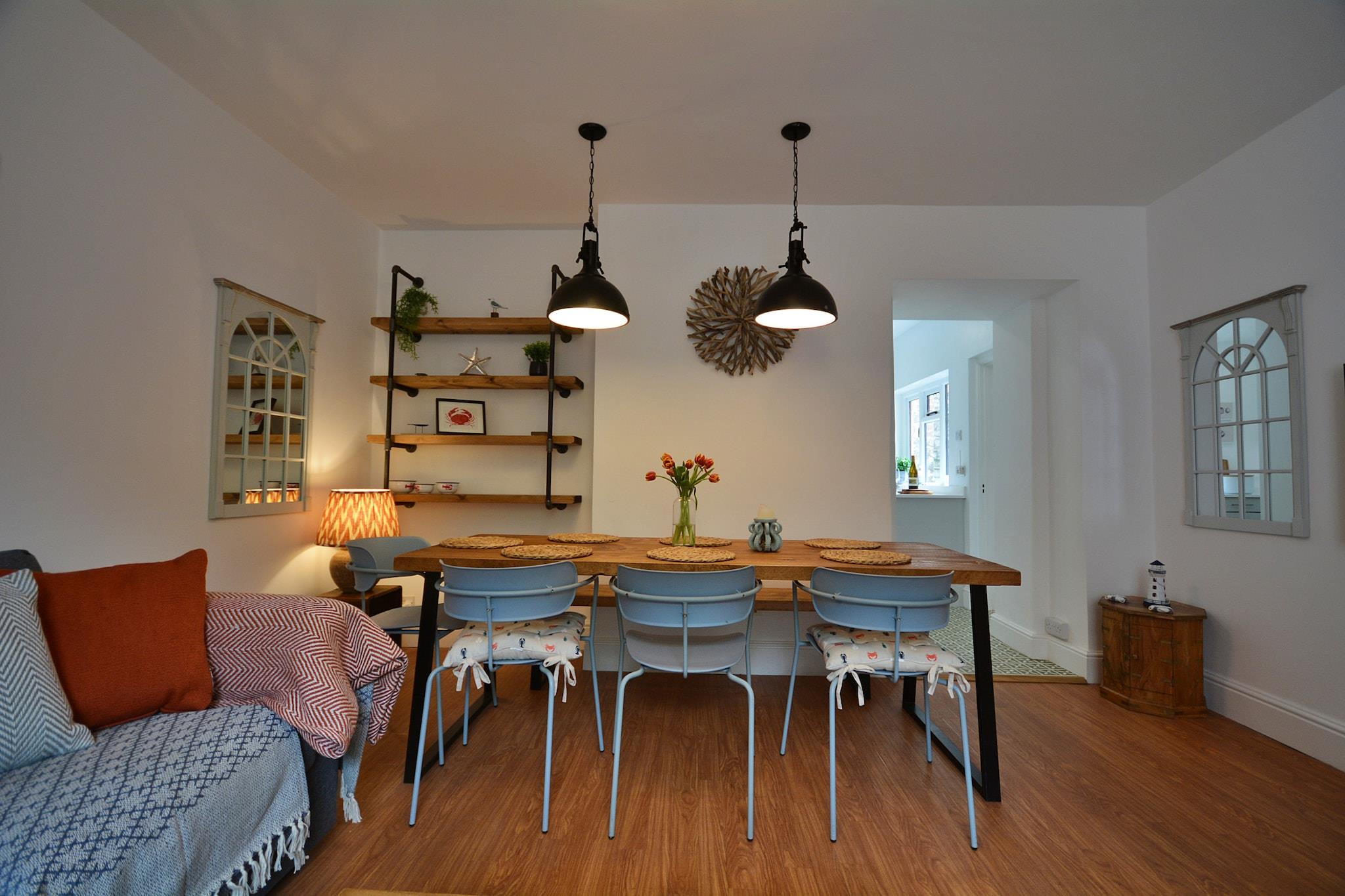 Dieses schöne georgianische Haus liegt im Herzen von Cawsand, nur einen kurzen Spaziergang von den Sandstränden und dem pulsierenden Dorfleben entfernt. Der ummauerte Garten bietet eine sonnige Oase zum Essen im Freien und zum Entspannen nach einem Tag am Meer. Im Inneren verbindet das Anwesen historischen Charme mit modernem Luxus und verfügt über vier geräumige Schlafzimmer – zwei Super-King-Size-Betten (eins mit Reißverschluss und Verbindungstür), ein King-Size-Bett, ein Doppelzimmer und ein Zweibettzimmer – perfekt für die Unterbringung von bis zu 8 Gästen. Das Erdgeschoss eignet sich ideal zum Bewirten und verfügt über einen hellen, einladenden Wohn-/Essbereich und eine kürzlich renovierte Küche, die mit allem Nötigen ausgestattet ist, darunter ein integrierter Herd, ein Backofen, ein Kühlschrank mit Gefrierfach, ein Geschirrspüler und eine Waschmaschine. Ein praktisches WC im Erdgeschoss und Zugang zum Innenhof und Garten machen es zu einem praktischen und stilvollen Ort für Familien und Freunde. Im Obergeschoss finden Sie drei Schlafzimmer, darunter ein luxuriöses Super-Kingsize-Bett mit eigenem Bad, ein weiteres Super-Kingsize-Bett (auf Anfrage in zwei Einzelbetten umwandelbar) und ein Doppelzimmer. Das Familienbadezimmer verfügt über eine Badewanne, eine Kopfbrause, ein Waschbecken, einen beheizten Handtuchhalter und ein WC und bietet Komfort und Bequemlichkeit für alle Gäste. Der Doppelschlafraum bietet einen unterhaltsamen Rückzugsort für Kinder oder Jugendliche. Die durchdachte Aufteilung und die charmanten Stilelemente des Anwesens schaffen eine gemütliche und zugleich elegante Atmosphäre, die die Essenz des Lebens am Meer einfängt. Dieses Cottage liegt perfekt an der Armada Road und ist nur wenige Gehminuten von den Stränden, Geschäften, Cafés und Pubs von Cawsand entfernt. Der Dorfparkplatz befindet sich in der Nähe, so dass Sie die atemberaubende Küste bequem erkunden und lokale Köstlichkeiten genießen können. Das Anwesen ist haustierfreundlich und heißt gegen eine geringe Gebühr gut erzogene Hunde willkommen, sodass Ihre vierbeinigen Freunde am Spaß am Meer teilnehmen können. Mit WLAN, frischer Bettwäsche und einem schönen Garten zum Leben im Freien bietet dieser Rückzugsort an der Küste den perfekten Ausgangspunkt für einen unvergesslichen Urlaub mit der Familie oder mit Freunden am Meer.